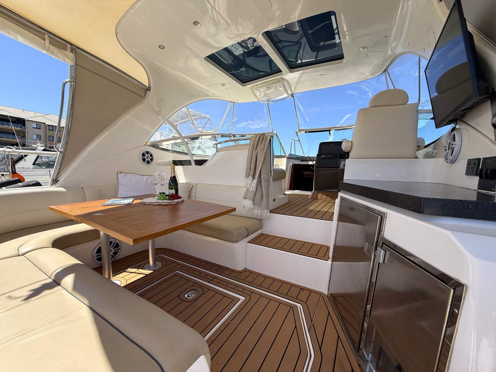 Experience luxury and performance with this Cruisers Yachts 460 Express, a huge-volume express cruiser designed for ultimate comfort on the water. Powered by twin shaft-driven 480hp Volvo Penta diesel engines, housed in a spacious engine bay with an electronic hatch, this cruiser delivers power and reliability. Whether you're cruising, entertaining, or relaxing, this vessel offers unmatched space, premium features, and a well-thought-out design. Key Features:o Twin 480hp Volvo Penta Diesel Engines - Shaft-driven with Port: 1381 hrs Stb: 1381 hrso Spacious Engine Bay with Electronic Hatch - Easy maintenance accesso Onan Marine Genset - Reliable onboard powero Ducted Reverse Cycle Air Conditioning - Stay comfortable in any climateo Large Swim Platform - Plenty of room for a tender, with removable stainless-steel railingInterior:o Tidy, Well-Presented Cabin - High headroom throughout for a spacious feelo Fully Equipped Galley - Full-size fridge/freezer, electric stove, microwave, storage & coffee machineo Large Dining Area - Comfortable space for meals and gatheringso Forward Guest Cabin - Features both a single and double bertho Bathroom with Dual Entries - Convenient access for guests o Private Master Stateroom - Island double berth with separated toilet and showero 4x Digital TVs & Fusion Stereo System - Entertainment throughout vesselo Ample Storage - Smart storage solutions for extended tripsHighlights:o Aquabase watermaker - perfect for those extended trips awayo Expansive Cockpit with Luxurious Upholstery - Multiple areas for entertainingo SeaDek Flooring Throughout - Stylish and comfortable o Cockpit Bar Fridge & Vitrifrigo Ice Maker - Keep drinks cold while enjoying the watero Well-Laid-Out Helm - Raymarine MFD, GPS, autopilot & comfortable captain's seato Seating to Port of Helm - Ideal for guests while cruisingo Walkthrough Windshield to Giant Foredeck - Featuring a Sun pad for sunbathingWell-Maintained & Ready for New Adventures! This Cruisers Yachts 460 Express has been well-loved and immaculately maintained. With its spacious layout, high-end features, and excellent presentation, it's the ideal choice for anyone seeking luxury on the water!To schedule a viewing, please call (08) 95114911Devoted to Boating Since 1961 - The Saggers Family LegacyThe Saggers family, with three generations of marine expertise, has been devoted to boating since 1961. As exclusive dealers for some of the world's top boat manufacturers, Saggers Marine offers unparalleled service and experience in luxury and prestige boat sales. Explore Our On-Water Display Visit Western Australia's only permanent on-water display at the world-class Dolphin Quay, Mandurah Ocean Marina, just 45 minutes south of Perth CBD. Step onboard a wide array of boats for sale and experience a level of service like never before. Contact our dedicated team today. Choose Your Broker Before Your Boat Saggers Marine provides expert assistance with finance, insurance, and transport across Australia. If you're looking for a specific boat, let us know your requirements--our extensive network often sources boats not publicly advertised. Considering selling? Our designated sales jetties offer massive exposure, drawing thousands of visitors daily. Disclaimer:o This description is for advertising and marketing purposes only. o Prospective purchasers should conduct their own due diligence and engage qualified third-party inspectors if required. o Saggers Marine has made every effort to ensure accuracy but provides this information without any express or implied warranty.