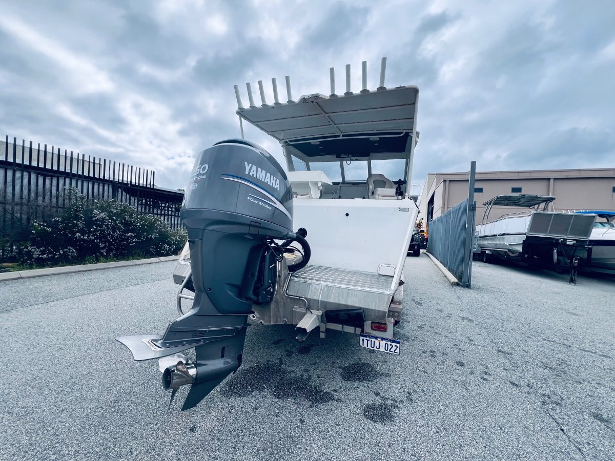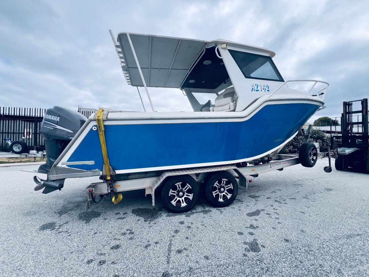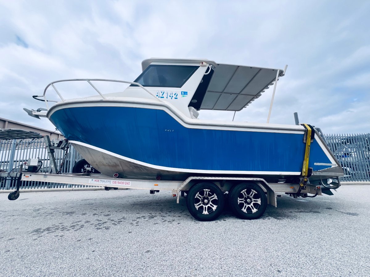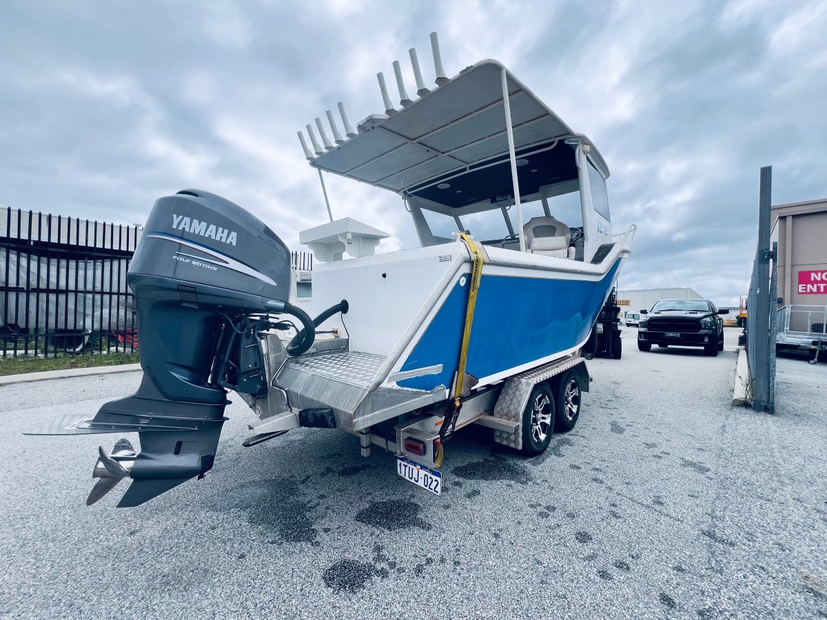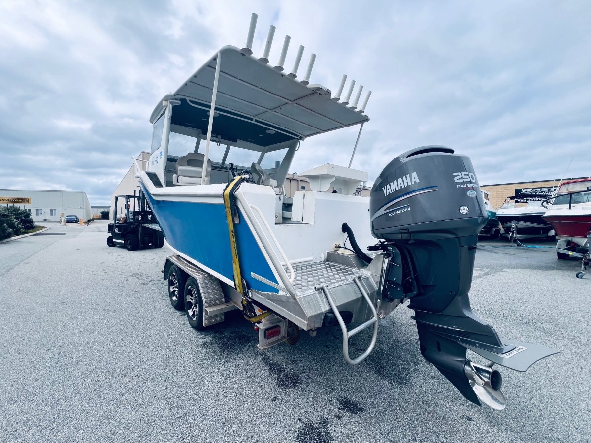 CUSTOM BUILT 7.5 METRE ALUMINIUM !!!POWERED BY A YAMAHA 250 HP 4 STROKE OUTBOARD ENGINE !!!ALSO INCLUDING BIG ENCLOSED HARD TOP WITH AWNING, LOWRANCE HD-S9 GEN 2 COMBO, VOLVO PENTA TRIM TABS, FUSION STEREO WITH SPEAKERS IN THE ROOF, FORWARD LOCKABLE CABIN, ROD HOLDERS, DIVE ACCESS WITH LADDER, LIVE WELL AND MORE !! SITTING ON A TOP OF THE RANGE 2019 ACE ALUMINIUM TRAILER WITH ELECTRIC OVER HYDRAULIC BRAKES IN EXCELLENT CONDITION!FINANCE AVAILABLE NOW !!!