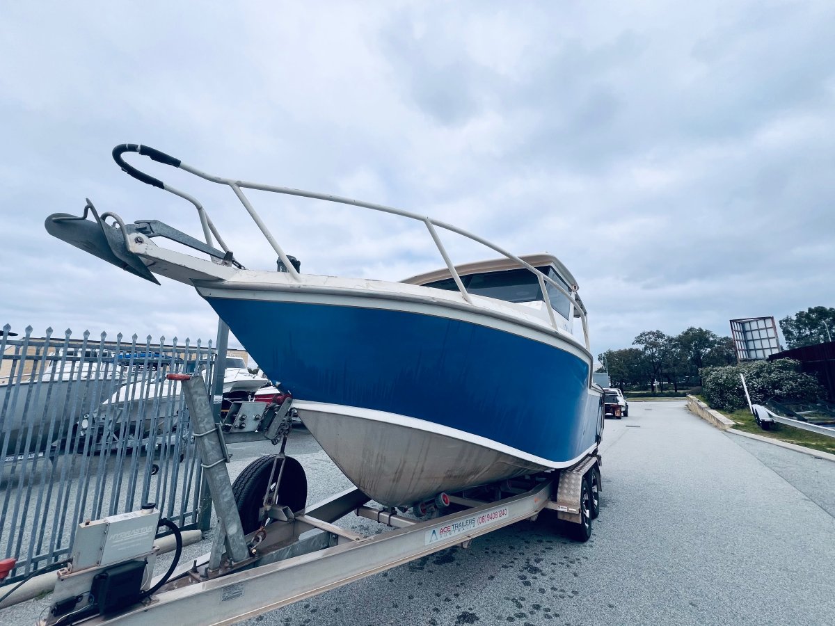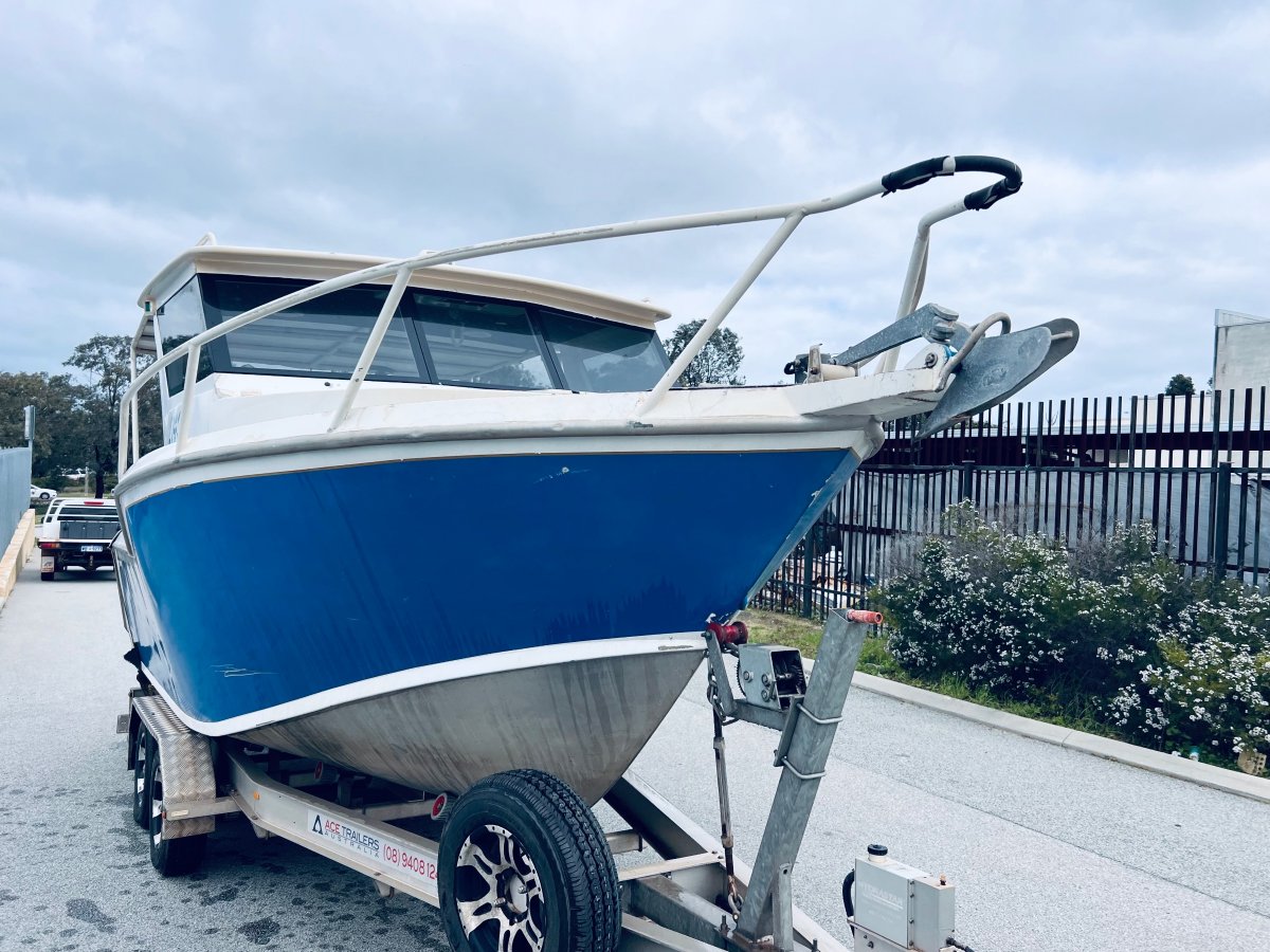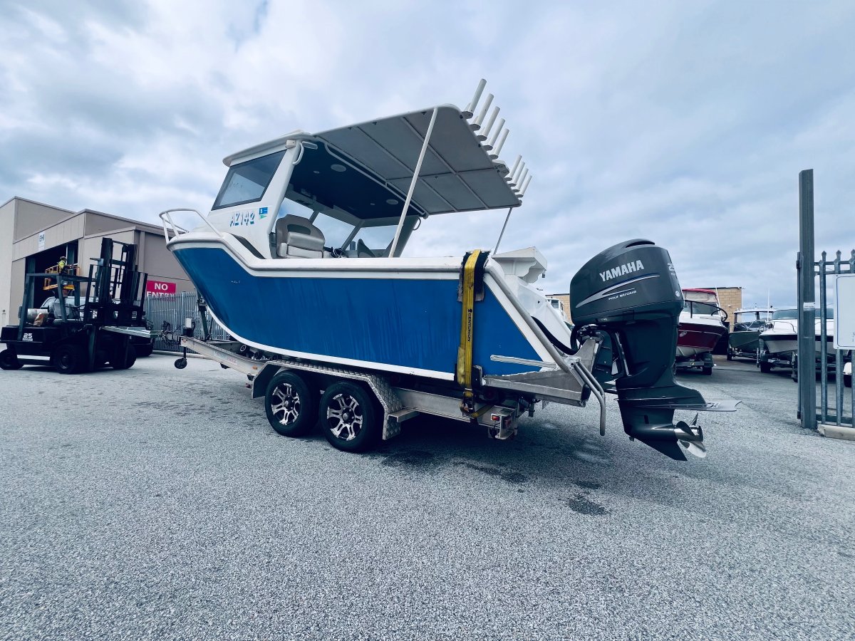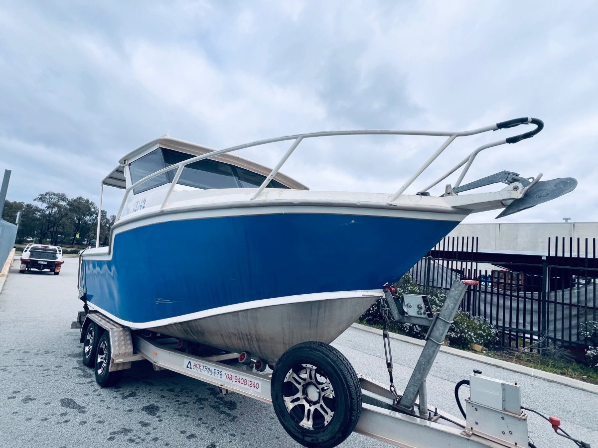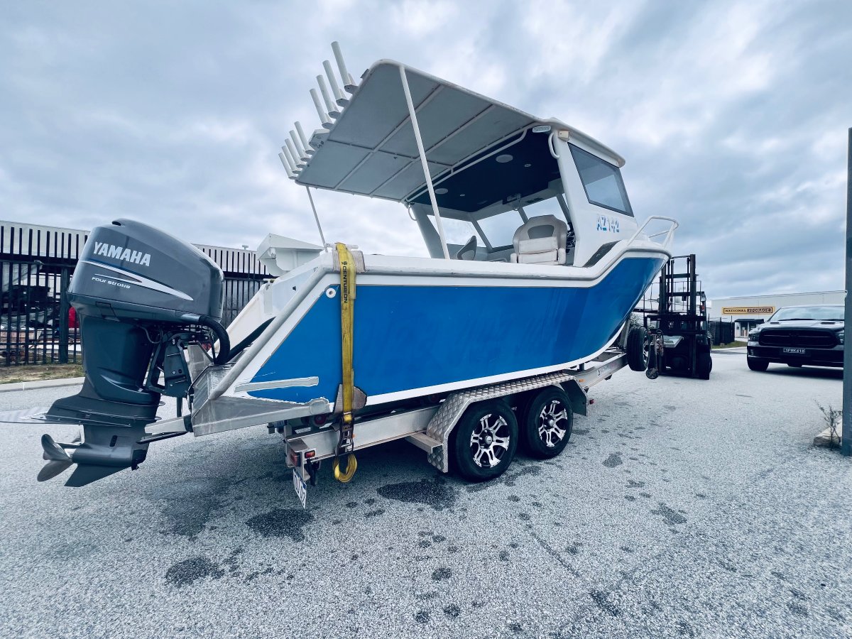CUSTOM BUILT 7.5 METRE ALUMINIUM !!!POWERED BY A YAMAHA 250 HP 4 STROKE OUTBOARD ENGINE !!!ALSO INCLUDING BIG ENCLOSED HARD TOP WITH AWNING, LOWRANCE HD-S9 GEN 2 COMBO, VOLVO PENTA TRIM TABS, FUSION STEREO WITH SPEAKERS IN THE ROOF, FORWARD LOCKABLE CABIN, ROD HOLDERS, DIVE ACCESS WITH LADDER, LIVE WELL AND MORE !! SITTING ON A TOP OF THE RANGE 2019 ACE ALUMINIUM TRAILER WITH ELECTRIC OVER HYDRAULIC BRAKES IN EXCELLENT CONDITION!FINANCE AVAILABLE NOW !!!