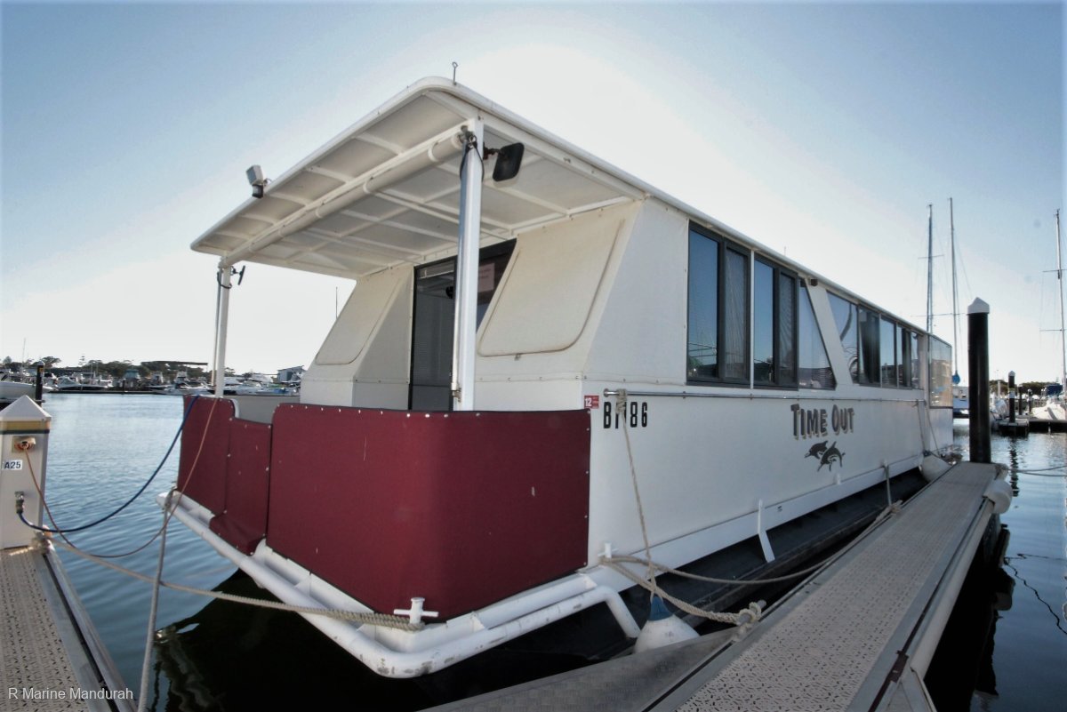 House boats are having a revival like we have not seen here in Mandurah in years. R Marine Mandurah is pleased to bring the latest boat available in Mandurah to the market. Can't travel over seas, can't travel over East but you can spend time on your own house boat enjoying the beautiful waterways Mandurah has to offer, rent it out through Air BnB or live aboard when you are back from the mines !A simple layout for a simple and enjoyable boating experience. Time Out is a great way to relax on the water. Come and join the House Boaters here in the Mandurah region, they are always having the time of their lives !* Honda 50 hp four stroke engines serviced in Jan 2020* Accommodation for between 4 and 6 in comfortable beds. * A house hold sized shower and toilet facility* A modern kitchen with gas appliances* Solar power all year round* Gas / 12v / 240 v fridge* Split cycle Air con when on shore power* A large aft deck with fully enclosed clears* Sliding windows the full length of the boat* Full length internal blinds* Quality canopies and covers* 500 lt water tank* 500 lt Sullage tankA well presented modern house boat. Shipping can be arranged Australia wide. Call the office on 08 9583 5355, Paul on 0427949293 or Trevor on 0456 949 293 We are here to help and will be happy to arrange a time to view TIME OUT.. If you considering selling a similar boat we cater to owners from Busselton to Mindarie and everywhere in between. List your boat with R Marine Mandurah and maximise your boats exposure. With a lifetime invested in the WA Marine Industry at all levels and thousands of boats sold Paul Denboer, Trevor Parkins and the team at R Marine Mandurah WILL sell your boat and are proud to offer a NO SALE NO FEE structure to all our valued clients. Why entrust your precious boat to just anyone !R Marine Mandurah, Experience the difference for yourself, see why our clients are speaking so highly of the R Marine Mandurah Team.