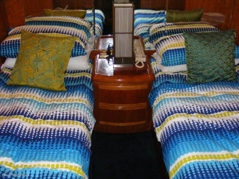 Huge Volume Flybridge, capable of entertaining a large crowd or making coastal trips in complete comfort � Twin MTU engines with low hours � Bow and Stern thrusters � Three big cabins � Galley up configuration � Large enclosed rear deck � Big volume Flybridge � seats 12+ � Tender and Outboard � Oversized marlinboard The Dyna 58 is a big boat. From the spacious rear platform and semi covered cockpit leading through to the saloon and living space. The clever layout allows for different areas of the boat to utilised for smaller groups and not feel lost. However when a bigger crowd is present, these areas by all being adjacent to each other will naturally link become one large hub for yourself and guests to enjoy the day. Moulded stairs lead to the Flybridge, which is again larger than many other boats of this size. The helm is deliberately forward for excellent vantage and a full wet bar with seating for six around the table will keep the whole family happy. Below decks, the three cabins all have en-suite facilities. The two guest cabins are at midships with full headroom and a TV in each. Forward is the owners suite, offering a degree of privacy from other guests but still close enough to keep an eye on the children. Mechanically, the twin MTU�s allow for a cruising speed of 22 knots and a top speed of 30 knots. With a fuel capacity of 3000L the boat has impressive range. At 18 knots, fuel consumption is 160L/hr. An upgraded Raymarine system and the dual thrusters will ensure the boat is under full control from start to finish. Available to view in Sydney harbour, 7 days a week. Full details available upon request.EngineTwin MTUEngineHours1,200GensetOnan, 16 KvaFuelCapacity3,000LWaterCapacity1,000LWeight30,000kgShowerYesToilet3 plus Holding TankDinghyBrig center console tender (2013)OutboardHonda 20Hp 4-strokeCoversNew flybridge clears (2013)AccomodationCABINS: Below decks, the three cabins all have en-suite facilities. The two guest cabins are at midships with full headroom and a TV in each. Forward is the owners suite, offering a degree of privacy from other guests but still close enough to keep an eye on the children.<br>TOTAL BERTHS: 6<br>HEADROOM: 6'6"+<br>SHOWER: YesGalleyLAYOUT: Upper level to port, U-shaped with adjacent dinette<br>STORAGE: Excellent<br>STOVE TYPE: Miele two plate hob<br>MICROWAVE: YesRefrigerationFRIDGE: 2<br>FREEZER: Internal to fridgeGroundTackleANCHOR WINCH: Yes<br>REMOTE: Yes<br>ANCHOR: Bruce 50kg<br>CHAIN: YesSafetyGearBILGE PUMPS: Yes<br>EPIRB: Yes<br>LIFEJACKETS: Yes<br>SPOTLIGHT: YesElectricsSHORE POWER: 240v<br>ElectronicsGPS: Raymarine E Series<br>PLOTTER: Raymarine E Series<br>RADAR: Raymarine<br>AUTO PILOT: Raymarine<br>RADIOS: VHF