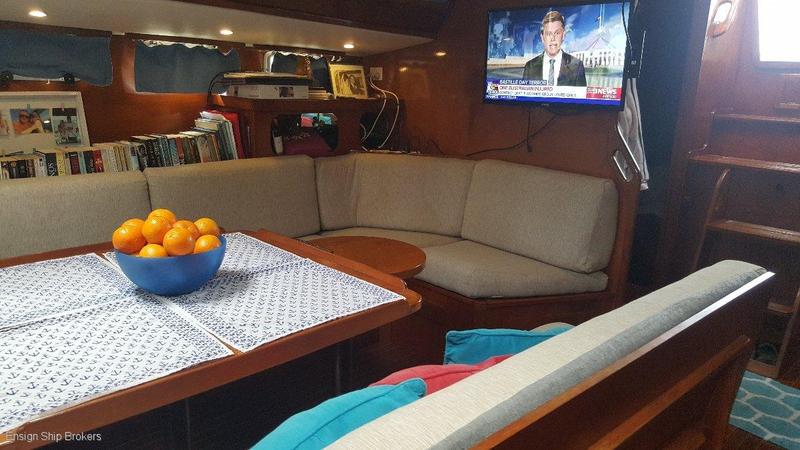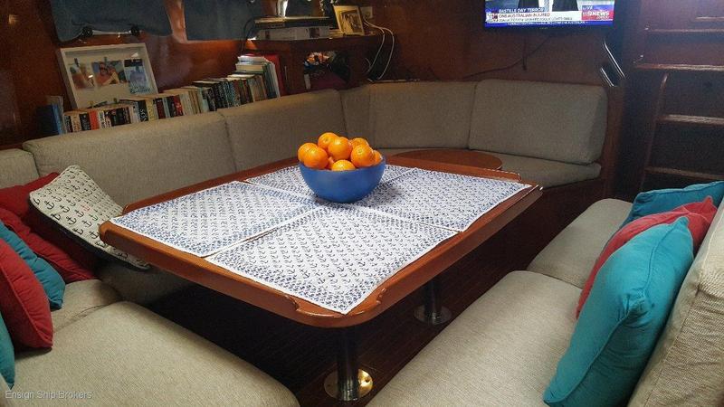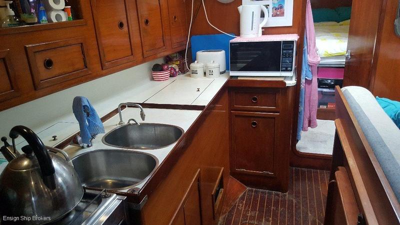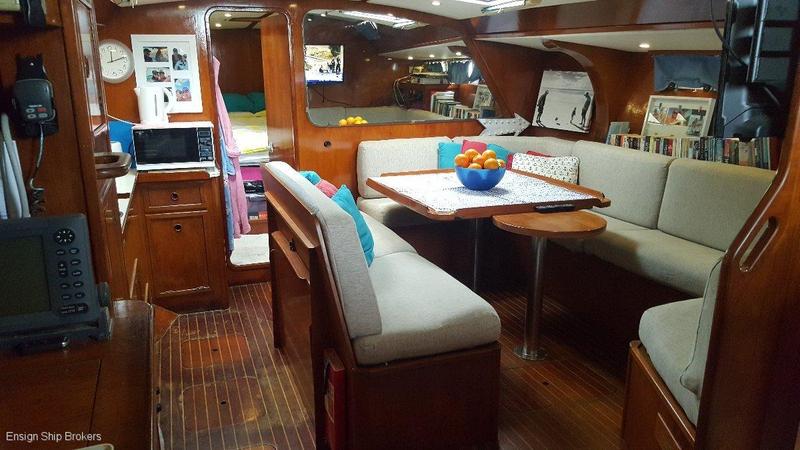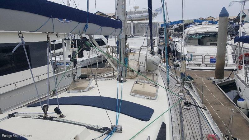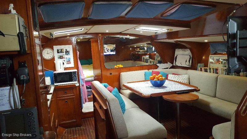 Big Bluewater boat, buyers bargain, this yacht has a great layout with forward master Suite with full size head. Two aft cabins with double bed and cabinets. Very spacious salon with U shaped sofa with near new soft furnishings and dining table for 8 people. Complete bathroom at starboard side and long galley at port. It has also got fully battened in-boom furling main sail which make it a breeze for short handed sailing with boom brake to slow the boom movement down in rolly conditions. Has the reliable 80 horsepower Perkins engine. - Very solid bluewater cruiser - Easy shorthanded sailing - Heat exchanger 2017 - Top end overhaul 2017 - New fuel pump 2017 - Rollerfurl headsail 2007 - In-boom furl main 2007 - 3 Cabin layout - Fixed wing keel - Keel stepped mast - Solar panels