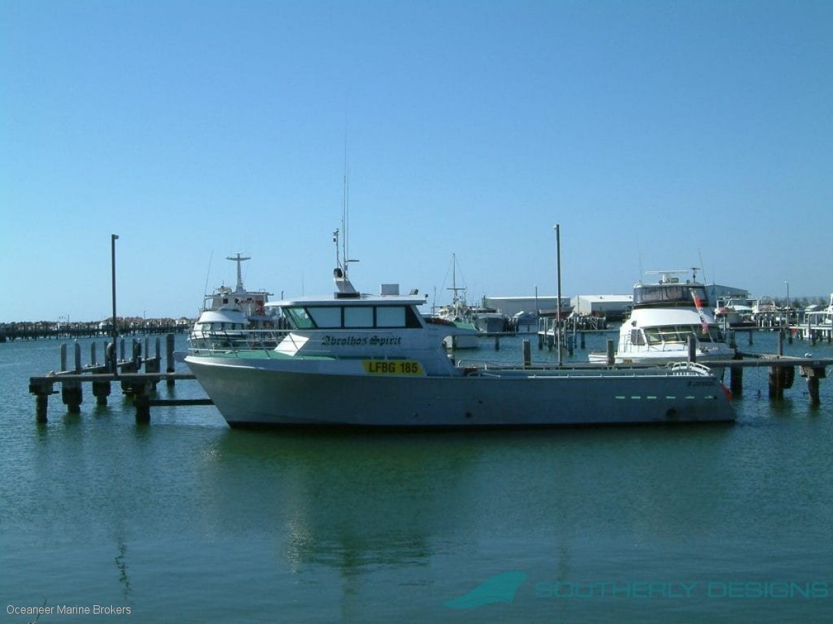 Southerly Designs, Geraldton Boat Builders 2001 launched fishing vessel. Currently located in South Australia in AMSA 3C Survey. This vessel was originally built to AMSA 3B survey standards. Powered with a very healthy Doosan V12 diesel with only 9000 hours from new and accompanied with new Isuzu genset in 2015. Southerly/GBB vessels are renown for strong seakeeping ability in which this vessel built with raised wheelhouse is no exception. Please call Oceaneer Marine Brokers for more details on (08) 9243 6373 or email sales@oceaneermarine. Com. Au.