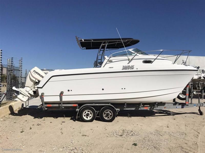 Simply Stunning 2007 Glacier Bay 2270 Island Runner on an excellent condition Mackay Trailer with brakes and lights fully checked and in good working condition. Powered by twin Evinrude 115HP Etec showing 470Hrs. This whole boat presents extremely well and would suit the fussiest of buyers. Owner has kept the boat polished every year and it shows. Features toilet, Large double bed accommodation, fantastic electronics, Digital Evinrude gauges, Great stainless steel targa with heaps of shade. These boats are phenomenal on the water and don't need much HP to push along as their hulls and entry are so fine. We have handled a couple of these boats recently and every seatrial was a pleasure. On display at Challenge Marine - Perth's Leading Used Boat Destination - 30 Berriman Drive, Wangara 6065Need your boat sold? Call us today to find out how cost effective and hassle free it can be. We are more than happy to provide price appraisals obligation free. At Challenge Marine we get results! We don't just collect listings, We sell Boats! While every effort is made to provide accurate information about our listings we accept no responsibility regarding its accuracy and purchasers should always undertake an independent mechanical / hull inspection by qualified personnel.