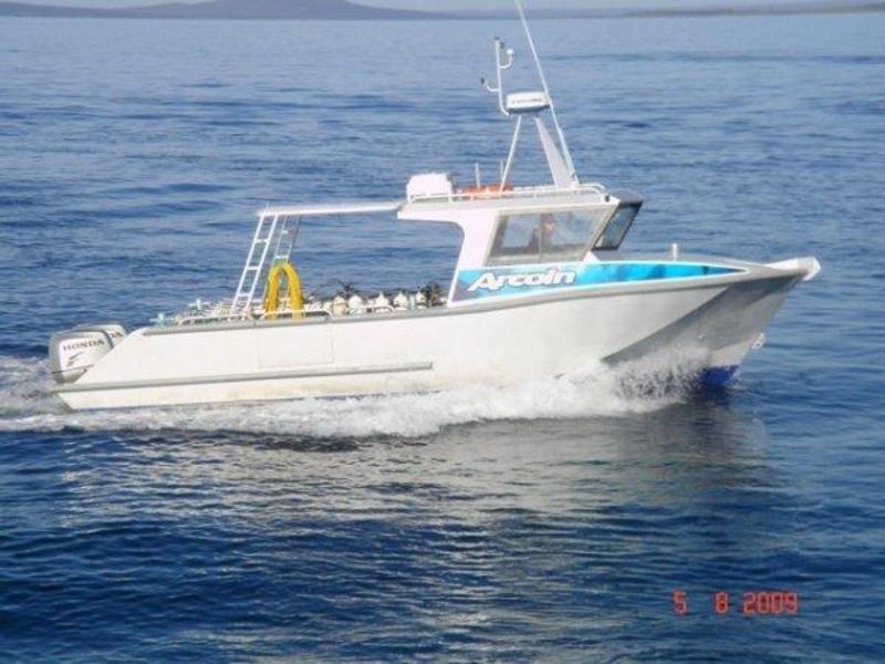This is a very versatile 9.3m x 3.4m x 0.55m AIR RIDER meaning it can be applied to a whole variety of roles. We modified the wheelhouse design from the 7.9m Air Rider and moulding it (a larger version) onto our well proven 9.3m Sea Rescue AIR RIDER. The result is this excellent new Air Rider work boat. Two 300 HP four stroke Suzuki produces a top speed of 38kts and a cruise speed of 20 kts. This vessel can be used as a coastal patrol, rescue, fishing, diving and crew transfer!