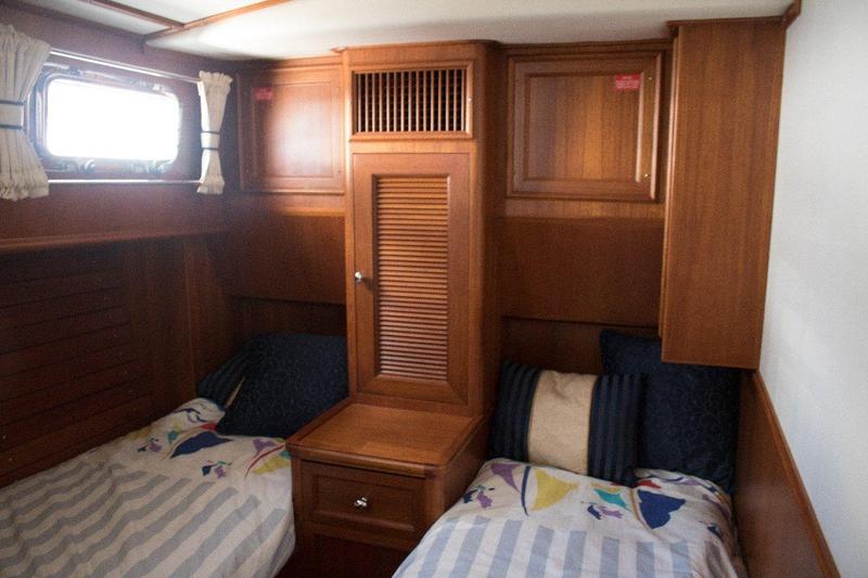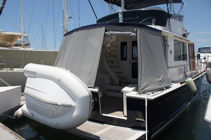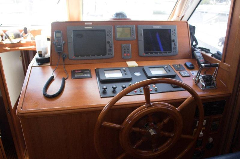 Grand Banks 47 Eastbay Fly Bridge Cruiser. If you have always dreamed of owning a Grand Banks Fly Bridge Cruiser then here is the boat that should finally tick all your boxes! This rare and sought after 2006 Grand Banks 47 Eastbay Fly Bridge is now on the market. This vessel has a 3 cabin (queen stateroom, a double and twin beds), twin head layout and comfortably sleeps 6 with a large comfortable saloon, well appointed galley with Miele appliances and a fold out dining table. The large shaded cockpit area fitted with an electric BBQ, ice maker, a fridge and ample seating, it is an ideal place to spend those summer days. A proven performer in the Grand Banks family she is fitted out with twin 705hp Caterpillar diesels and 4 bladed props to provide solid reliable performance. The engine room has easy access through the hydraulically operated cockpit steps and there is plenty of room to check engines and to carry out maintenance. This vessel is in very well appointed with: - Raymarine Electronics including radar - Air conditioning in all cabins and the saloon - Icemaker - Watermaker - Bow thruster - Trim tabs - 11 kVA Generator - Spare props Make some time to come and have a look at this boat, it will time well spent. Call the team at Ensign Ship Brokers now, as this vessel will not be on the market long.