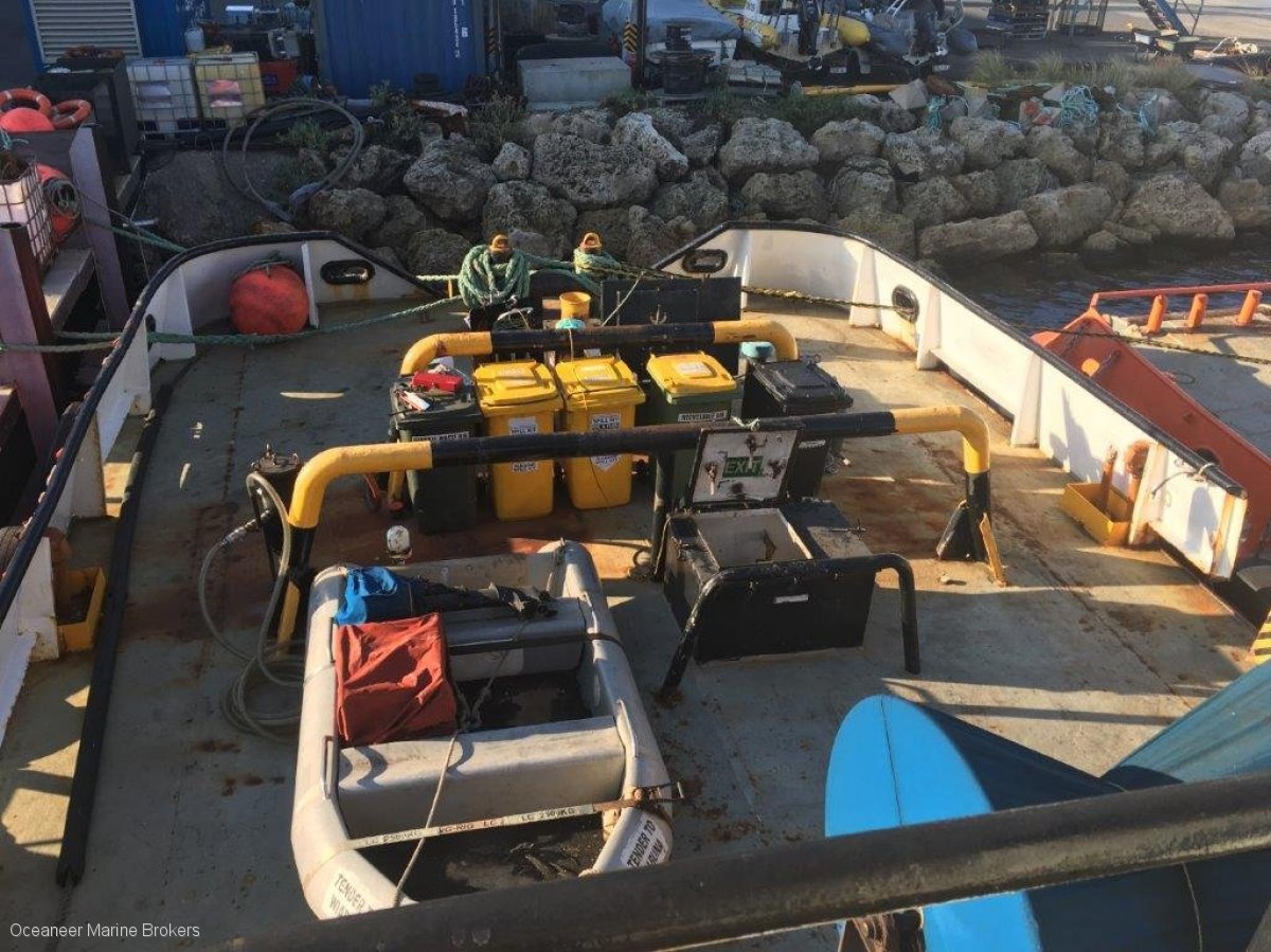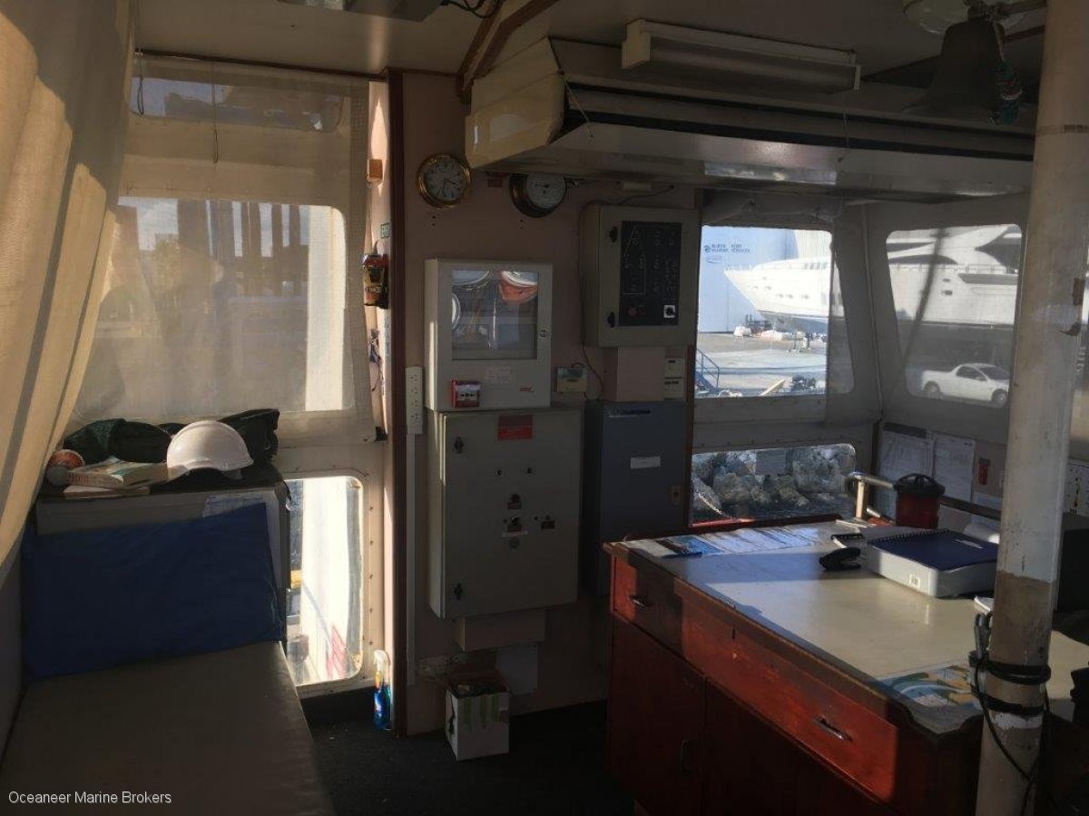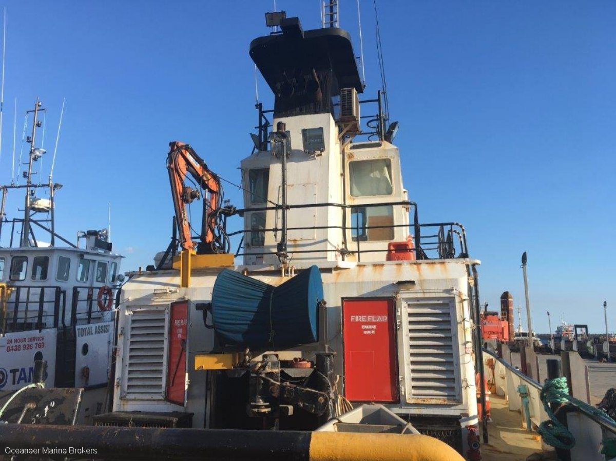Carrington Slipways Tug Vessel. Launched in 1987 this tug vessel is in operational order and valid AMSA Survey. 25T tugging winch, 26T bollard pull, HIAB crane. 23000L Fuel, 6200L Water, 14000L Foam, 2500L Sullage, 5000L Dispersant. JRC sounder and radar, Raymarine plotter. Extensive accommodation quarters including galley, washing machine, 2 x complete bathrooms, mess area. Presents great value for money. Contact Oceaneer Marine Brokers for full inventory and details. (08)92436373 or email sales@oceaneermarine. Com. Au