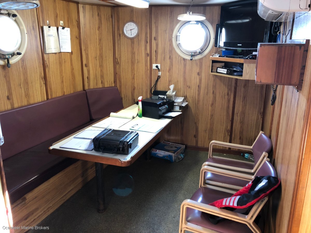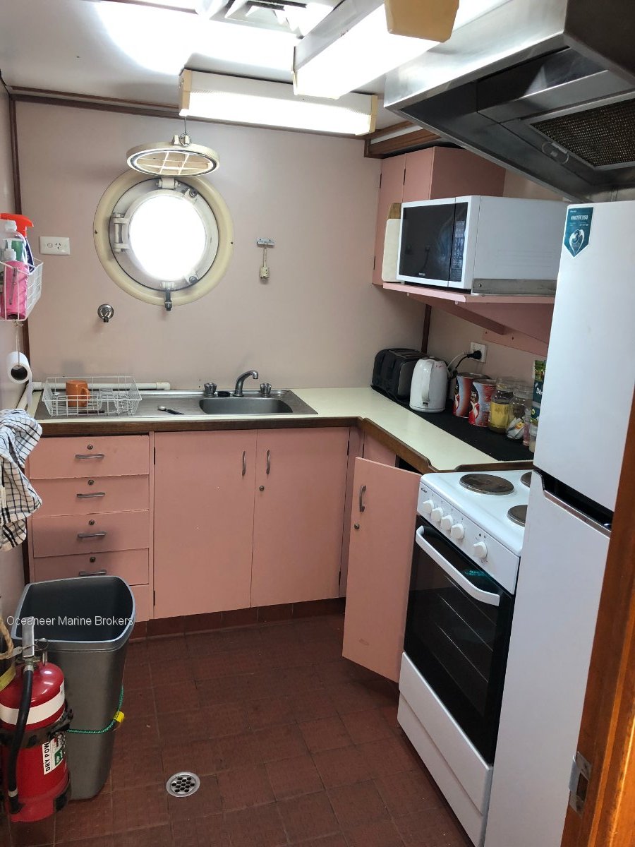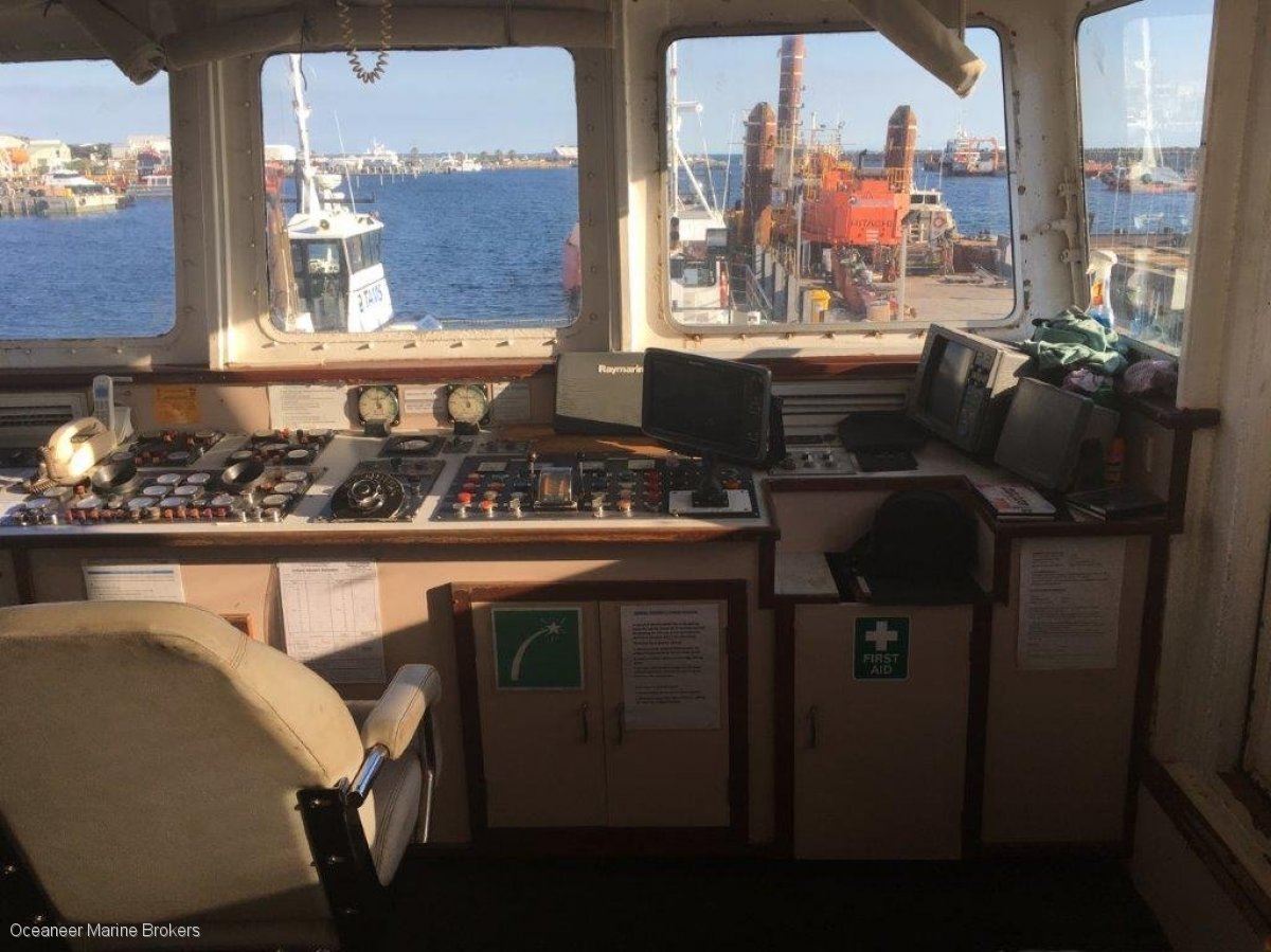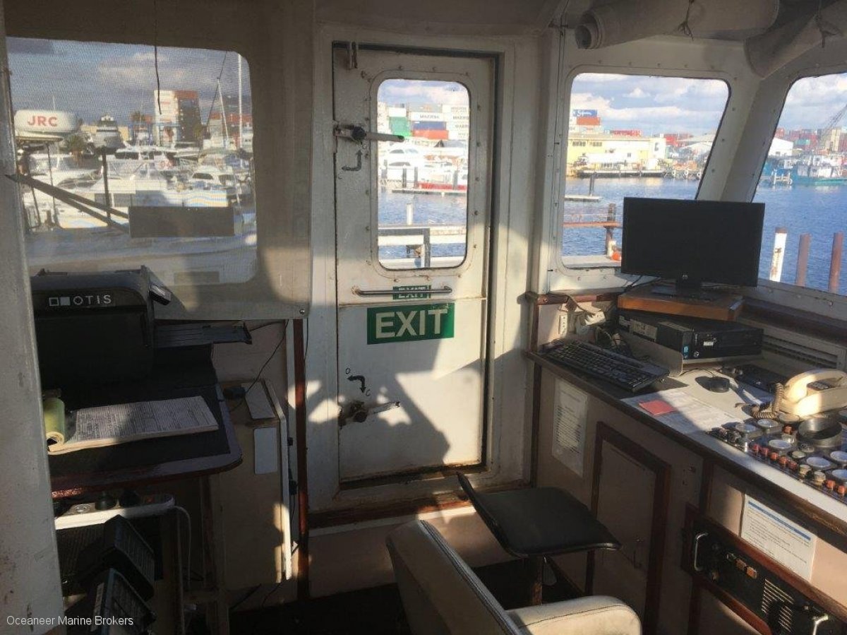 Carrington Slipways Tug Vessel. Launched in 1987 this tug vessel is in operational order and valid AMSA Survey. 25T tugging winch, 26T bollard pull, HIAB crane. 23000L Fuel, 6200L Water, 14000L Foam, 2500L Sullage, 5000L Dispersant. JRC sounder and radar, Raymarine plotter. Extensive accommodation quarters including galley, washing machine, 2 x complete bathrooms, mess area. Presents great value for money. Contact Oceaneer Marine Brokers for full inventory and details. (08)92436373 or email sales@oceaneermarine. Com. Au