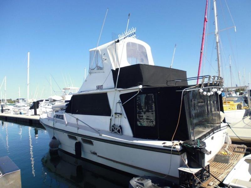 Harriscraft has a Iveco 550 Motor Diesel which is very economical with only 1200 hours on the single motor, and 1200 litre fuel tanks. Had $5000.00 worth of re-wiring done also new batteries and battery charger just 6 months ago. Plus the boat has just been registered for another 12 months and motor had a full service. (receipts available). There is a bow thruster for ease of parking and trim tabs also. The boat has dual helm and a flybridge with full covers. All electrical gear is in the flybridge. The boat has hot and cold running water, 2 x electric hotplates, 2 x bar fridges, microwave oven, T. V and D. V. D player. There is a large new queen size bed and also the lounge has all been re-covered, making the boat a 6 berth. There is a decent size bathroom with shower, vanity and toilet. It also has a cradle for a tender boat on the flybridge and a stainless steel B. B. Q on the rear of the boat. Comes with all safety gear. Hard Stand on the 12th December 2013 and re anti-fouled and new anoids. Good pen available here in the Mandurah Marina.