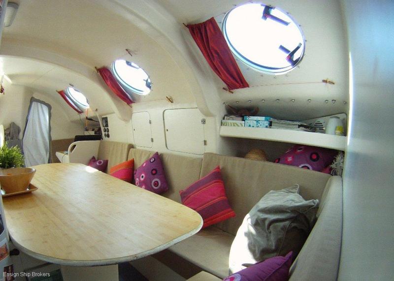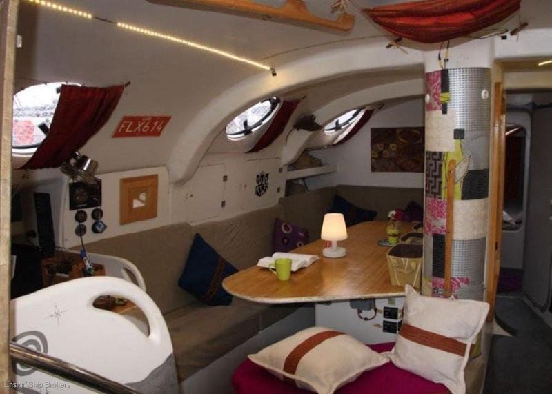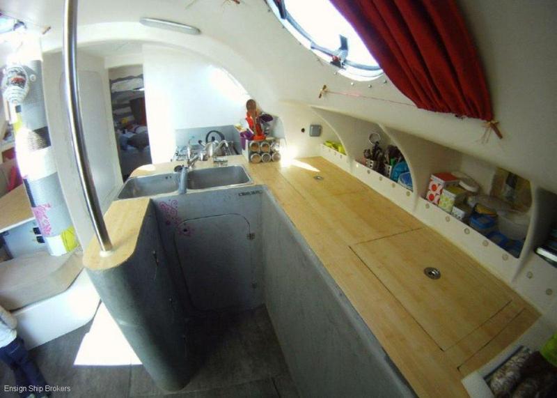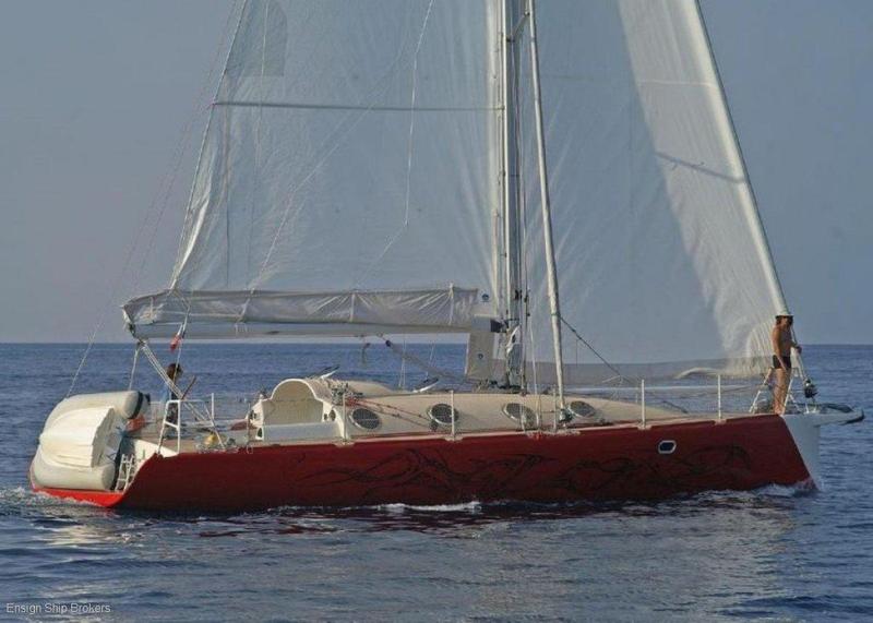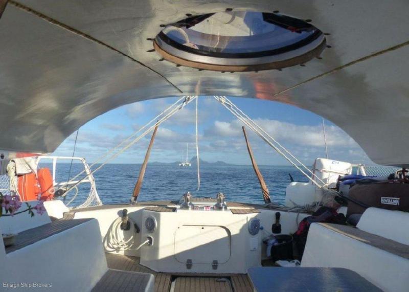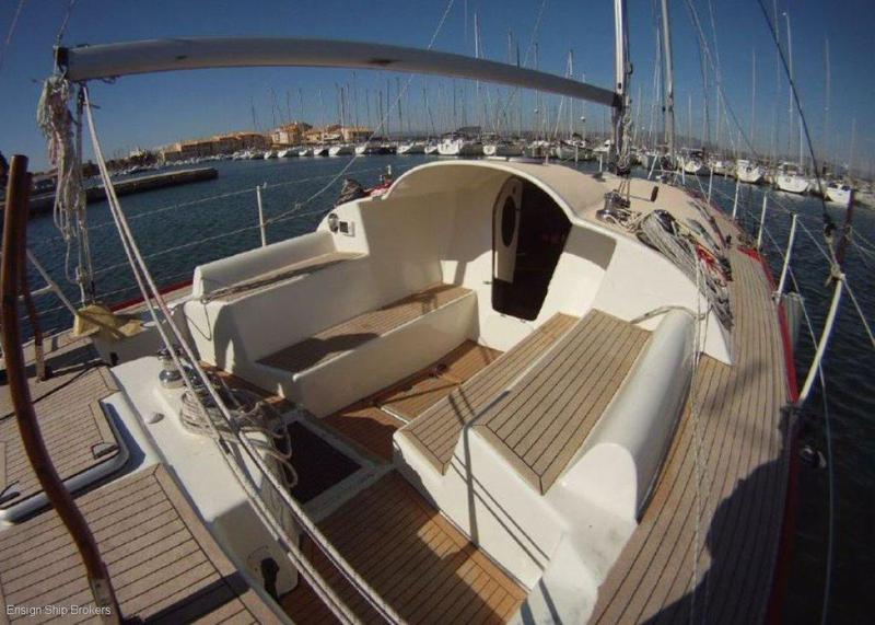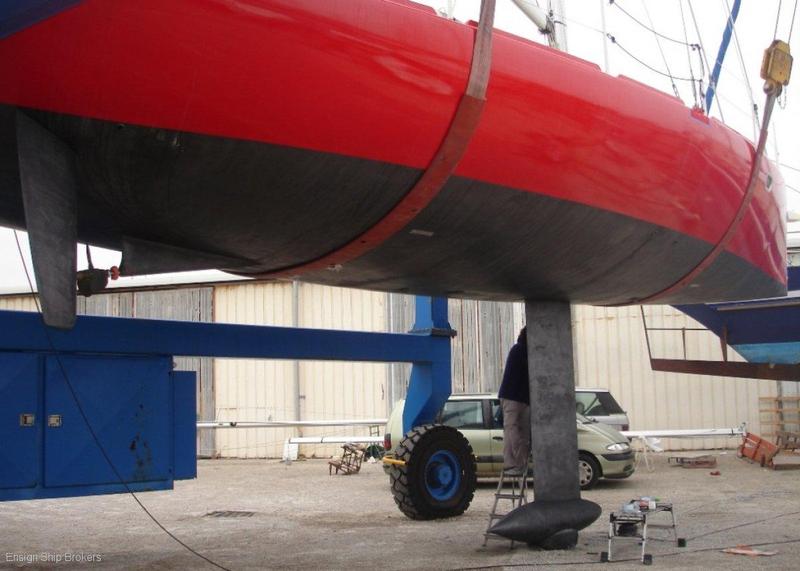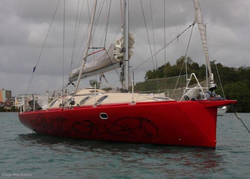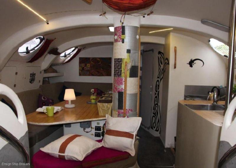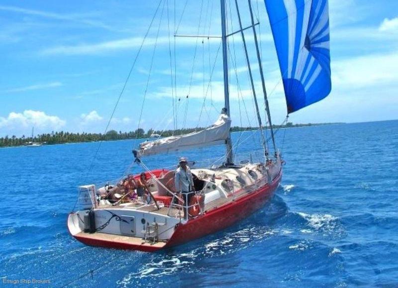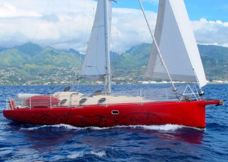 A modern day lift keel world cruising boat. 46' Cutter rigged lift keel yacht (set up for short hand cruising). This French registered yacht is currently in New Zealand, fully equipped and ready to continue fast safe cruising. This fast cutter rig design is easy to handle and stable in all sailing conditions. Below decks the 4.5m beam is evident with the space for day to day life. A �J� shape galley with lots of bench space is to starboard and the port side saloon is nice and comfortable for crew or family. The bow has a double berth and more double berths sit in each rear quarter. � Rigged for short hand sailing � Lift keel delivers draft between 1.6 and 3.1m � Exceptional light wind sailing performance � Hull speed matching wind speed. � State of the art electronics for navigation, communication & vessel management � Refrigeration and freezer capacity for extended life aboard � 1200 Ah of house battery power with 4kW generator � Water maker � 350 litre fuel capacity This boat breaks the mould of the cruising boat with tan sails in the sunset. Its modern design stems from todays around the world racing boats and lends itself to many sailing options. Contact an Ensign office to know more. *Taxes may be applicable dependent on the vessels future movements.