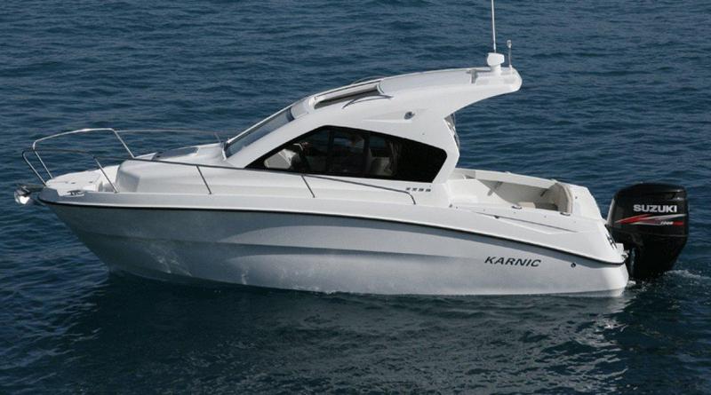 Searano Marine are proud to announce the KARNIC range of boats to Australia direct from Europe. With their distinctive look and quality finish thay are sure to capture the boating public. KARNIC have been building boats in Cyprus since 1992 and are exporting to 20 countries. N000 2265 blank boat, Sterndrive Closed cockpit $41,210 HULL ONLY*N0V1 2265 with Volvo 4.3 Gxi EVC EC SX 225 HP $ 67,030N0V2 2265 with Volvo 4.3 Gxi EVC EC DP-S 225 HP $ 69,640N0V5 2265 with Volvo D3 140 EVC EC Diesel SX 140 HP $ 74,720N0V7 2265 with Volvo D3 170 EVC EC Diesel SX 170 HP $ 78,490N0V9 2265 with Volvo D3 200 EVC EC Diesel DP-S 200 HP $ 86,200*PRICES MAY VARY DUE TO THE EXCHANGE RATE. Add Trailer cost Dunbier Tandem 2.4T Hyd electric braked $10,500Construction Safety:* CE Certification * 10-year structural warranty �* Foam flotation �* Non-skid cockpit surface* Non-skid recessed walkaround �* Deep cockpit side walls* All fibreglass foam injected stringer system �* Self bailing cockpit �oe Heavy duty marine vinyl and carpets * Colour coded marine electrical wiring * Fused electrical components * Marine grade electrical switches * High durability UV resistant gelcoat * Welded stainless hardwareHull and Deck: * Cleat, stainless steel 'thru' bolted �* Bow and stern eyes * Bow pulpit with anchor davit �* Beverange holders * Safety glass windscreens �* Sliding cabin door with security lock �* Cockpit illumination �* Navigation lights �* Marine horn �* Bilge pump, manual/automatic �* Fuel fill and vent, stainless steel * Deck rails, welded stainless steel * Cockpit grab rails, stainless steel * Cabin side grab rails, stainless steel * Cockpit table, removable �* Rod holders, stainless steel * Hull and deck graphics * Transom shower �* Windshield wiperSeating �* Aft jump seats, removable (2) �* Motorbox seat cushionStorage* Anchor locker, self drainning �* Storage wells under side seats with drains (2)* Stern storage/battery lockers (2) * Stern motorbox storage well with drain �* Stern port and starboard storage wells with drainsHelm and Console:* Karnic sport stainless-vinyl steering wheel �* Marine stereo CD player AM/FM �* Marine speakers (2) �* Electrical switches �* Compass �* Beverange holders �* Footrest, fibreglassCabin:* V-berth accommodation * V-berth filler cushion (s) �* V-berth bench storage * Ventilation hatch �oe Cabin illumination �* Helm seat �* Twin companion seat, extendale * Cabin grab rail, stainless steel �* Sunroof, sliding �* Sink with faucet �* Stove, single burner * Stove covering bench, extendable * Gallery cupboards and storage * Removable table with storage* Marine speakersOptions List Carpet, closed cockpit floor $360Aft cockpit canvas enclosure $1243Electric refrigerator, 42L $2024Chemical toilet $341Marine toilet $726Gas stove under helm seat $616Fire extinguisher $90Rodholders, set of two $154L-shape open cockpit seat layout $319U-shape open cockpit seat layout $638Hydraulic steering $1463Dockside power package (battery charger included) $2684Anchor windlass (Anchor and chain NOT included) $2871