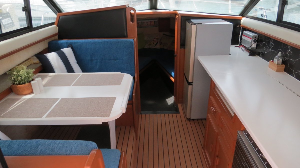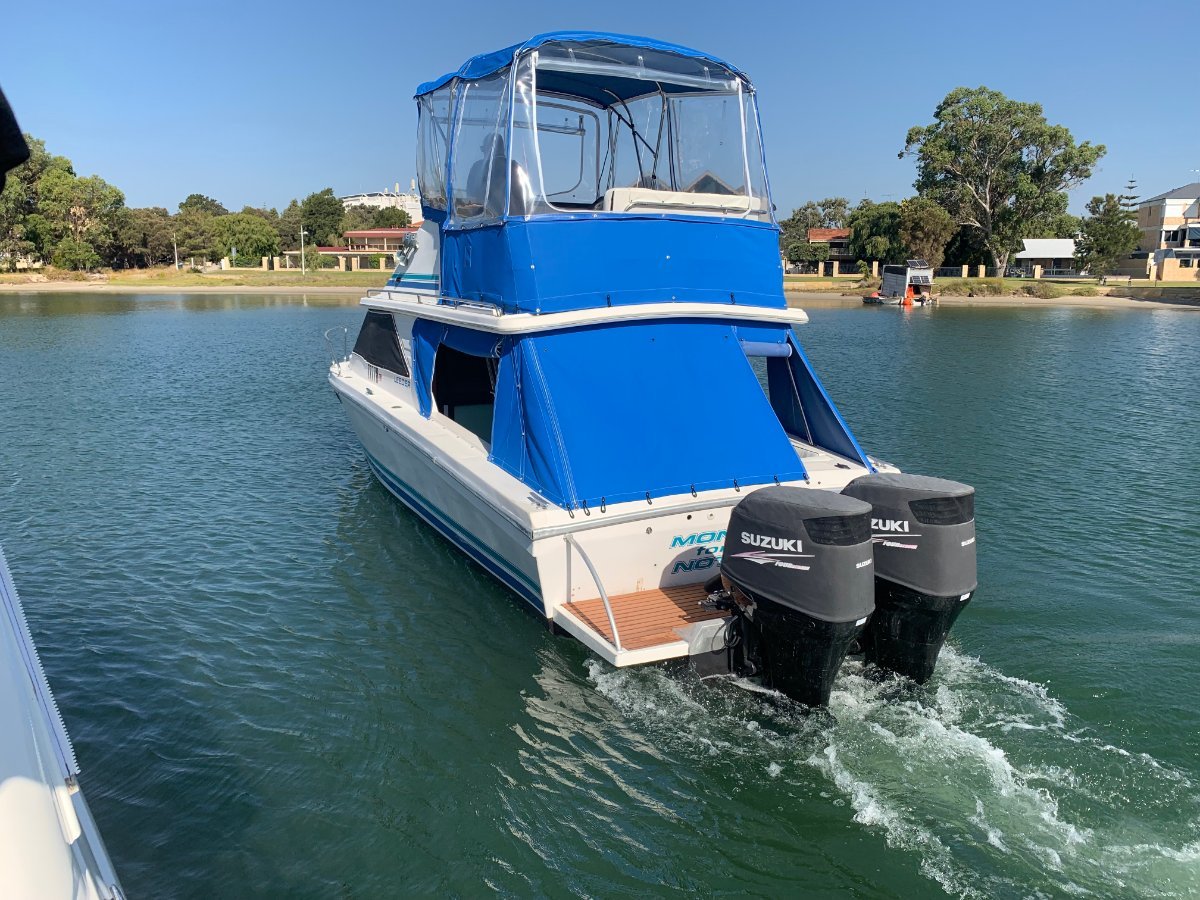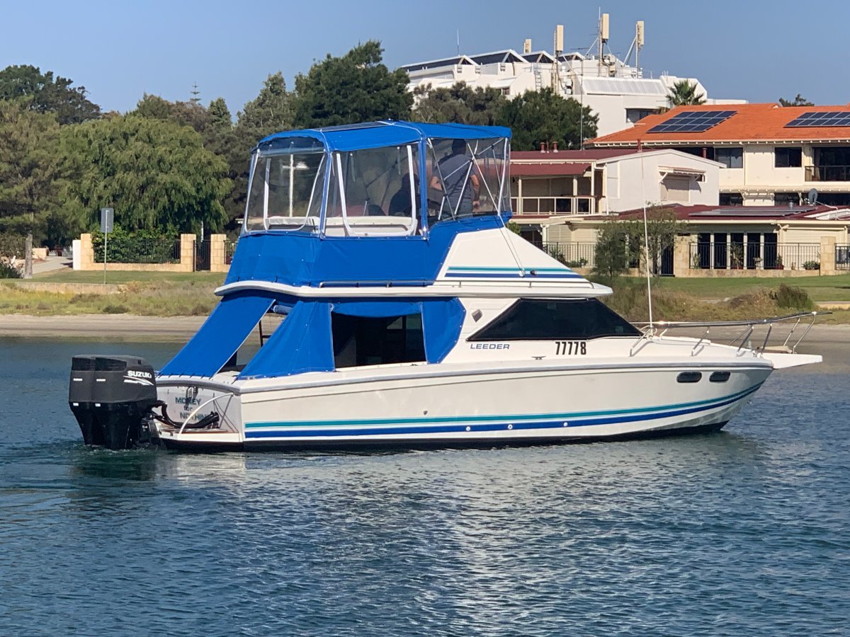 Here's an extremely Unique - 28' Leeder Flybridge Sports Cruiser - Yes, she's powered by twin 175hp V6 Four Stroke Suzuki outboards. When you step aboard this vessel you will instantly feel at home with a warm welcome - simply due to its layout and immaculate condition throughout. The large cockpit area has a lovely full-sized rear sun lounge with huge storage underneath for the required toys, or inflatable dingy & outboard. It also caters to the third bedding area too, particularly with the full Camper Enclosure. The port side dinette table will comfortably seat 4, plus it caters as a second double bed when folded down. The Std side Galley, particularly the preparation benchtop is huge and it's complete with a sink & pressurised water, a twin burner cooktop and oven. The Galleys perimeters are finished with a solid, easy-care - wipe down surface too. Plus, there's a household sized fridge/freezer which runs completely off Solar Power. The forward master cabin acts as either a double bed or two single beds. It's comfortable and fully carpeted throughout from the floor - to walls - to the roof. The Generously sized walk-in Toilet enclosure has a vanity, plus shower and door for Privacy. When you enter the Flybridge which has comfortable seating for 6, you'll only then realise the array of Loaded Extras this vessel has, such as an anchor winch, sounder, radio, stereo, compass, gauges and so much more, plus an Easy to Operate Twin Binnacle Remote for the "Powerful but Economical" Twin 175hp V6 Four Stroke Suzuki Outboards. The entire vessel has just undergone an extensive fit-out and when we say from the Bow to the Stern, that's what we really mean. In fact, the vessel has apparently had about $40,000 recently spent, bringing her into the Ultra-Performing & Semi-Liveable craft it is today. Also, the Saloon, Cockpit & Flybridge floors have specifically been layered with a Teak-a-Like rubber so they're extremely comfortable to walk on, plus easy care. The Flybridge & Camper Covers are near New, she's been freshly slipped & anti-fouled too, so she's "turnkey ready" - to Enjoy her just like the current owners have. The boat is on display at Mandurah Boat Sales Jetty - we'd be happy to take you through it!