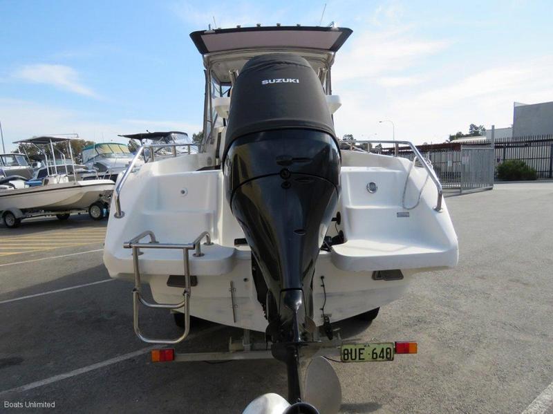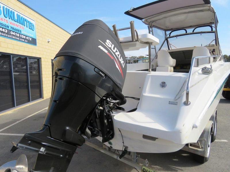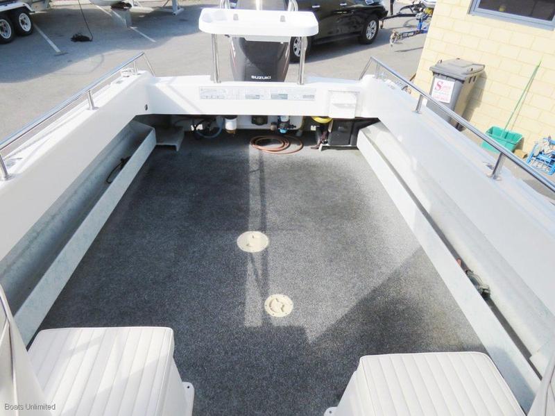 LOOKING FOR A BOAT WITH DECK SPACE, SOFT DRY RIDE, GOOD STABILITY AT REST, WELL COME AND CHECK THIS ONE OUTFASTIDIOUSLY MAINTAINED, REPOWERED WITH A VERY LATE MODEL 200HP SUZUKI 4 STROKE WITH VERY LOW HRSEXTRAS INC 200L UNDERFLOOR FUEL TANKHUGE UNCLUTTERED DECKHYDRAULIC STEERINGDUAL BATTERIESBATTERY ISOLATORMARINE STEREOGARMIN COLOUR GPS-PLOTTER-SOUNDER COMBODECKWASHSEMI HARDTOPWRAP AROUND CLEARSEXTENSION SHADE AWNINGWET DECK SELF DRAIN SCUPPERSSAFETY KIT AND MOREVERY, VERY, TIDY BOATTRADES WELCOME... FINANCE AVAIL T. A. P