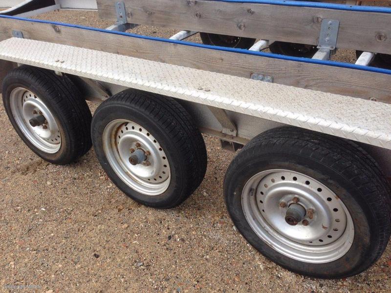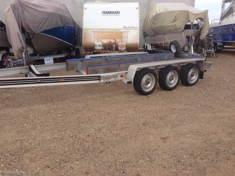 This 2009 tri-axle aluminium trailer is set up to suit boats up to circa 8.5M, the Gross Trailer Mass is rated to 3500Kg, teflon skids for drive on drive off capabilities, electric hydraulic brakes and lights are all in good working condition. Length overall is 8.7M, the trailer is currently licenced until January 2017.Contact Greg on 0409556442 for any further information. On display at Challenge Marine - Perth's Leading Used Boat Destination - 30 Berriman Drive, Wangara 6065Need your boat sold? Call us today to find out how cost effective and hassle free it can be. We are more than happy to provide price appraisals obligation free. At Challenge Marine we get results! We don't just collect listings, We sell Boats! While every effort is made to provide accurate information about our listings we accept no responsibility regarding its accuracy and purchasers should always undertake an independent mechanical / hull inspection by qualified personnel.