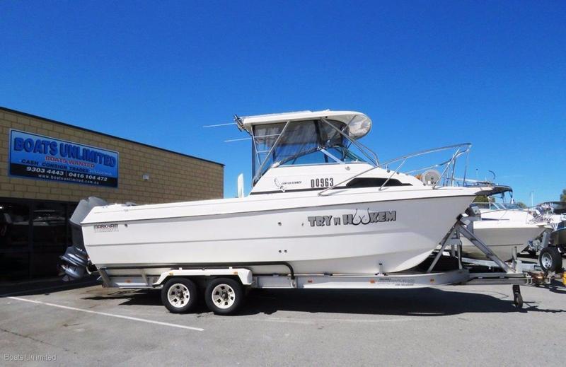THIS ONE OWNER RIG HAS JUST BEEN REPLACED WITH HIS NEWLY PURCHASED 12M CAT SO SHE'S UP FOR GRABSYAMAHA 150HP 4 STROKES ARE AS GOOD AS THEY GET AND DELIVER 42KTS IF YOU SO DESIRE.. VERY NICELY PACKAGES IN ABOVE AVERAGE CONDITION, ITS A CREDIT TO THE OWNERHUGE UNCLUTTERED DECK AREA, FUNCTIONAL SEATING BOTH IN DECK AND COCKPIT AREAFURUNO ELECTRONICS PACKAGE INC 3D NAV NET, RADAR, GPS, AND 1 KW SOUNDERSITS ON LIC TANDEM ALLOY ELEC BRAKED TRAILER WHICH KEEPS THE WEIGHT DOWN TO APPROX 3 TONNE ON THE RDWELL WORTH A LOOK... OVER 150K TO REPLACETRADES CONSIDERED.. FIANCE AVAIL.. T. A. P