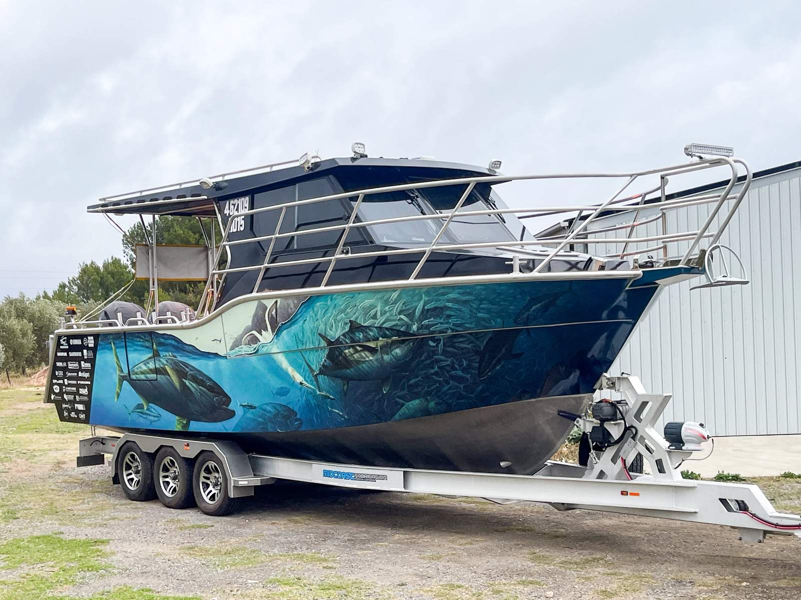 Introducing "Sea Wolf", a 2023 custom-designed and purpose-built vessel crafted locally in Aldinga, South Australia by Mid-Coast Fabrication and Marine. The current owner designed this vessel to be one of the largest trailerable boats under 4.5 tonnes, specifically built for taking on the challenging waters of South Australia. This charter vessel is engineered to meet commercial survey standards (2C/3C AMSA Survey) and is capable of accommodating up to 6 PAX and 2 Crew. Powered by twin 2023 Yamaha 300HP 4-Stroke Outboards, "Sea Wolf" delivers exceptional reliability, speed, and performance for offshore adventures. "Sea Wolf" is well-equipped for offshore fishing featuring a reliable 16" Furuno sounder and TimeZero, 1kw Thru-hull Transducer, 1kw B54 contour mapping transducer, 80L Live bait tank with 1000GPH pump, plenty of rod holders and so much more!KEY FEATURES- Certified to 2C & 3C AMSA Survey requirements- Twin Yamaha 4 stroke 300HP outboards with S/S prop- 800L Fuel capacity- Enclosed cabin with the ability to open up the bulkhead, for better visability during game fishing- 3 Full size berths- Plenty of deck space, seating and storage for equipment when required- Full length hardtop canopy for protection against the elements- Electric anchor winch- 20x Rod holders- 80L Live bait tank with 1000GPH pump- Flush mounted transducers- Cray pot hauler- Full Narva LED light set up for night fishing, 8 flood lights, forward spot light plus interior and deck lighting- 12v Solar panels- Deck wash- 12v 40L Engel fridge/freezer- Floor is fully foam filled (more than 1.5x above survey requirement)- Hand rails all the way around the vessel for added safety- Licensed trailer - Electric 12 Tonne winch (cable and wireless control), boat catch (suspension, hubs and breaks all upgraded from standard)& Plenty more!Don't miss this opportunity to own this incredibly tidy vessel - Get in touch with the team to book an inspection onboard. Luke Morgan: +61 437 937 735Oceaneer Marine Office: (08) 9243 6373Matt Lovelady: +61 499 449 788Tom Lovelady: +61 417 780 566