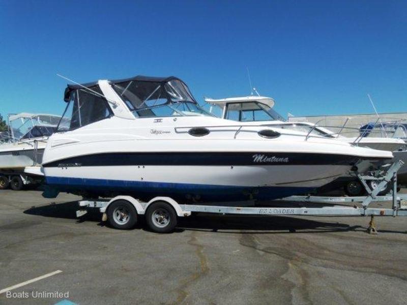 THIS QUALITY BOAT HAS HAD LITTLE USE AND IS READY FOR IT'S NEW HOME. IT HAS QUALITY FEATURES THROUGHOUT. DELUXE PADDED SEATING ON THE DECK. SLEEPS 4 IN THE CABIN.EngineMERCRUISER 5.7L MPIEngineHours238ShowerYESToiletYES IN SEPARATE CUBICLE.CoversFULLY ENCLOSED DECK WITH BIMINI SHADE AND WRAP AROUND CLEARS.AccomodationVEE BERTH AND TRANSOM DOUBLE BEDGalleyYES, WITH SINK, MICROWAVE, CUPBOARDS.RefrigerationYESSafetyGearFIRE EXTINGUISHER.ElectricsELECTRIC ANCHOR WINCH. ELECTRIC TRIM TABS. MARINE RADIO.ElectronicsNAVMAN TRACKER 5500.COMPASS.DeckGearREAR FISHING PLATFORM WITH SS RAILINGS. FOLD AWAY BOARDING LADDER. WALK THROUGH TRANSOM ACCESS DOOR. DECK SINK. DELUXE PADDED CAPTAINS CHAIR. PLENTY OF DECK SEATING.TrailerEZ LOADER TANDEM AXLE