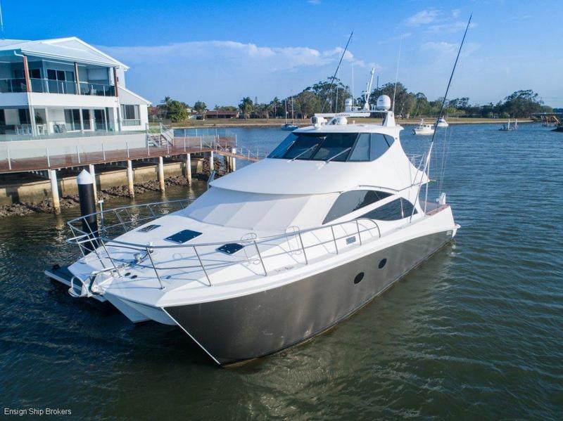 The �Reel Action� is here!!! New to the market and priced to sell. As you walk on board �Reel Action� you can see and feel the quality and high standard. This Australian built powercat has been built to survey standard 2C (10 + 2) and is currently operating under a Certificate of Operation. Every option was ticked when built and it has had many more extras fitted after! This 2013 one owner aluminium powercat is driven by twin Volvo Penta 1050 IPS Drive motors and is designed and built to cruise at 24knots. Using only 184LPH at cruise speed. One of the biggest features on this powercat is the Hydrofoil setup, making the ride and performance that much better. Additional features of note: � 4.5kg washer & Dryer � 110LPH Water maker � aftermarket custom made mattresses � Davit crane for easy access to tender � Satellite TV and Phone � both tables have powerpoints and internet ports underneath to hide all cables to stop kids tripping over � plus loads of storage!!! This Catamaran has been built to go anywhere - holding 4,000L of diesel, 600L of freshwater and full Garmin navigation gear (Radar, Auto pilot, Sonar, GPS, Plotter, VHF). With the technology on this boat, you can click your destination and it will take you there. �Reel Action� has also been fitted with a Night Vision camera as well as a spot light on remote. This vessel is a three bedroom boat but has enough space in the lounge to accommodate up to 10 people!!! This is massive volume boat!!!!!! you have to see it to believe it! Having participated in a number of fishing tournaments on the coast she has come first place in both the Sunshine Coast Tournament and the Hervey Bay Tournament!!!! The owner has just done the yearly service in May plus as well as completing a marine survey of the vessel which is available on buyers request. If you are looking for a fast, reliable, fishing, cruising, family, luxury Powercat then look no further! At a cost of AUD 2.3million to build new, you can save your money and buy this fully set up boat today. Reel Action is available to inspect, first look will buy this absolutely stunning vessel! Contact Ensign Ship Brokers Gold Coast Office today to inspect this boat!