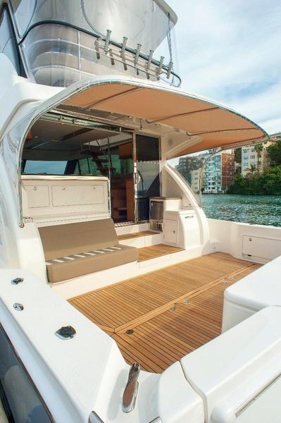 The stunning 50 Enclosed Flybridge has made her world debut at the Sydney Boat Show in August 2013.Riviera's latest model is available for you to buy now!!!!Powered by new generation fuel efficient twin Cummins QSC Zeus 600 pod drives, or alternatively twin Volvo Penta IPS 900s. The 50 Enclosed Flybridge is expected to cruise between 25 and 28 knots and deliver a range of 400 nautical miles. Riviera's design team has retained the unique Riviera look while introducing some exciting new design aspects such as:Double side transom doors, allowing better access from both port and starboard sides Mezzanine seating with integrated tableEnhanced cockpit storage with self-draining moulded lazarette bin integrated to the cockpit floorTender storage on the boarding platformIncreased side deck accessA large aft C-shaped lounge that runs the width of the flybridgeFlexible accommodation planFull head-room in the two aft cabinsAttractive enhancements to the exterior profile lines balancing the flybridge and saloon window and huge hull windows with opening port holes on both sides, providing an abundance of natural light and fresh air to the two aft cabins. Overall living space is increased, with an additional 1.7 metres between the bow and stern available through the use of pod drives as compared to a similar sized shaft-driven boat. The new 50 features three luxuriously appointed staterooms and two bathrooms. Acoustic fabric panelling creates a sense of calm and, combined with varnished cabinetry, gives a feel of contemporary elegance. A washer and dryer are concealed behind varnished cabinetry in the companionway. In a first for Riviera, there is the option to have the master stateroom forward or aft on the port side. The aft port side option offers a scenic outlook from the large hull window with opening porthole as well as being in a quieter and more stable part of the boat being closer to the centre of gravity, while the full-width master stateroom forward boasts windows either side, ample under bed storage, an elegantly crafted cedar-lined wardrobe featuring book-ended panelling, built-in bedside tables and a timber vanity - the owners have the choice. This new vessel is also the perfect size for three couples or a large extended family. At 50 feet, it fits into standard size marina berths without compromising on space and the hallmark qualities of Riviera. "The 50 Flybridge features a huge cockpit with aft barbecue centre or optional bait tank or fish bins. The barbecue is located aft centre in the middle of the transom doors either side, thus giving easy access to the vessel, especially when rafted up with friends or at the marina. Vision from the three-sided enclosed flybridge is second to none. The mezzanine seating has been lowered to allow for a fridge and freezer to be positioned between the galley window and mezzanine seat. There is also a removable table opposite the mezzanine lounge which can be rearranged depending on entertaining requirements. It can be positioned in front of the mezzanine lounge when enjoying a lazy breakfast with the best view in the world or one leg can be lifted and repositioned by turning the table 180 degrees so that a group of people can sit around the table for a social afternoon on board. Two steps up and you enter the saloon through the full-length sliding glass door. To port there is a huge U-shaped modern galley with polished Corian solid surface benchtops, high quality appliances and accoutrements and 'timber' Amtico flooring. Forward of the galley is a U-Shaped dinette to port and plush L-shaped lounge to starboard with several ottomans allowing for extra seating around the dinette or can be pushed up against the settee to create a large chaise. An internal staircase adjacent to the galley leads up to the impressive flybridge which features a helm station forward on the port side with an adjacent L-shaped lounge allowing guests to easily converse with the skipper. A wet bar is located behind the helm chairs and aft in the flybridge is an enormous C-Shaped lounge that runs full beam of the flybridge, making it a great conversation and entertaining space not only when the boat is underway but also at anchor. From a technological point of view, the new 50 Enclosed Flybridge will have the latest in LED lighting and C-Zone digital switching, which allows you to monitor all your entertainment, electronics and lighting with the touch of a button. Every engineering detail in the design and construction of this new model has been considered from the engine room with standing head room and its gleaming white gel coat finish making it spotlessly clean, to the location of the cockpit switch panel at eye-level. Living space is increased, with an additional 1.7 metres between the bow and stern available through the use of pod drives as compared to a similar sized shaft-driven boat. With the latest in LED lighting and C-Zone digital switching, it allows you to monitor all your entertainment, electronics and lighting with the touch of a button. If you are looking to buy a spacious new Riviera, then this is the boat for you. For a full inventory on this vessel contact us at R Marine Mandurah today.FuelCapacity3000ltWaterCapacity750ltWeight23000