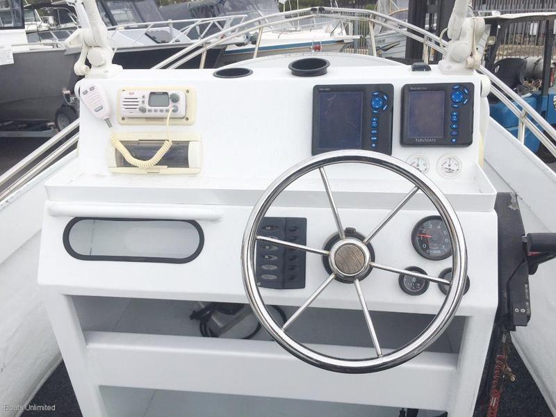 GREAT RIDING HULL OF YESTER YEARTHE PENQUIN HUNTRISS IS KNOWN FOR ITS HAINES HULL DESIGN AND RIDE BUT WITH THE INVERTED FLARED CHINE FOR BETTER SPRAY DELFLECTIONTHIS ONE ORIGINALLY WAS A WORK MODEL USED BY MARINE AND HARBOURS WHICH HAS EXTRA GLASS IN THEIR CONSTRUCTION AND ENCAPSULATED FOAM POCKETS FOR UNSINKABLE CLAIMSIDEALLY SET UP NOW FOR DIVERS OR CRAY POT PULLERS SO ITS JUST IN TIME FOR THE SECOND RUN OF CRAYSITS NOW SPORTING A NEW POT TIPPER AND WINCH.. EXTRAS INC FOAM FLOTATION CHAMBERSUNDERFLOOR FUEL TANK APPROX 180LJOHNSON V6 OIL INJECTED OUTBOARD WITH HYDRAULIC STEERING, DUAL BATTERIES AND BATTERY ISOLATORELECTRONICS INC NAVMAN GPS AND SOUNDER, MARINE RADIO AND SITS ON TANDEM BRAKED TRAILER