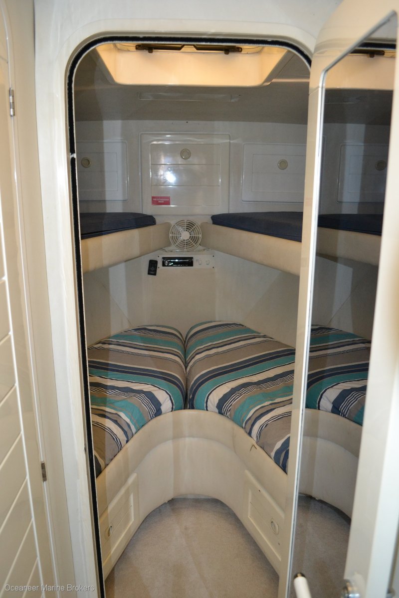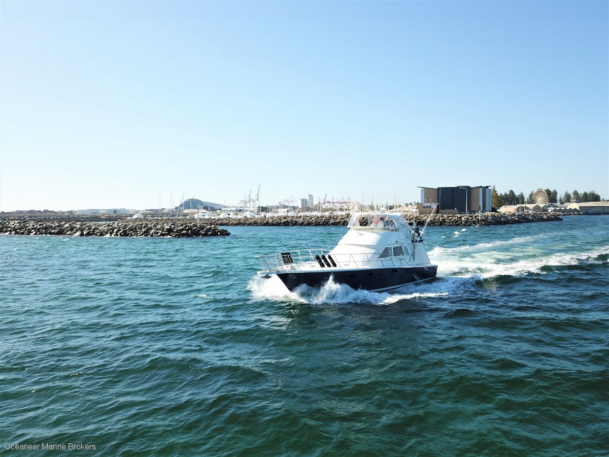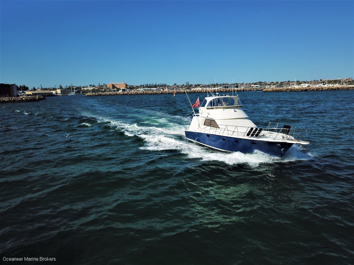 An excellent example of these highly sought after vessels. A true ocean going flybridge cruiser. This vessel presents itself as a great opportunity to launch into the boating scene this summer with an outstanding Western Australian favourite. Powered by twin MWM V12 engines, this Precision cruises along at 21 knots @1700rpm and boasts a sprint speed of 30 knots. The back deck provides a phenomenal amount of space to entertain and the flybridge area is no different. Incredibly functional with large amount of fridge space up and down stairs, exceptional fuel and water capacities, a brand new water maker, fantastic sleeping capacity, two generators, extensive inventory list. Competitively priced with pen available by negotiation. Please contact Oceaneer Marine Brokers for full details or to book in an inspection.