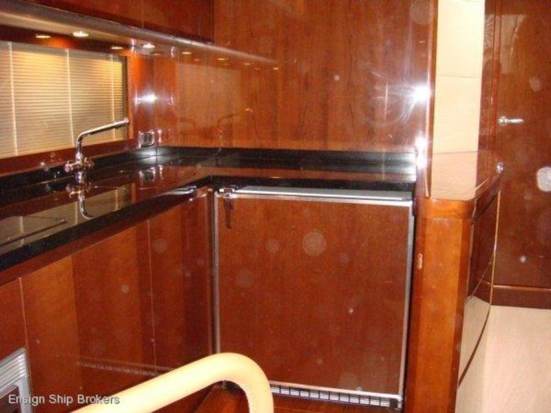 With a deep V hull the Princess V53 combines outstanding performance and seakeeping with elegance and style. Add to this a generous fuel capacity and you have a performance sports yacht with an extended range and fast cruising capability. On deck the large teak-laid cockpit comprises two generous seating areas and a wetbar with electric barbecue and top loading cool box, while the aft deck accommodates a triple sunbed and garage for a tender or wetbike. The control position incorporates twin sports seats, full engine instrumentation and an integrated navigation system with autopilot linked to the GPS/chart plotter, while electronic engine controls, a bow thruster and power-assisted steering make close quarter handling fun and straightforward. With an electrically powered retractable hardtop. With stunning performance and dynamic good looks, the Princess V53 is the ultimate boat for those who wish to experience the thrill of high-speed cruising in comfort and style.Please call or email for full specifications and information.We have many late model Princess' and other brand name yachts in all models & sizes available, so please call and discuss access to these vessels many of which are not listed to the public. LET OUR EXPERIENCED INTERNATIONAL BROKER TEAM AT ENSIGN SELECT GUIDE YOU THROUGH THE PURCHASE OF YOUR NEXT LUXURY VESSEL IN AUSTRALIA, EUROPE or THE REST OF THE WORLD! Hundreds of late model Sunseeker, Princess, Sanlorenzo and all other International brand name Superyachts in all models & sizes available: Please call and discuss access to these vessels, many of which are not publicly listed on websites. � The advantages of purchasing offshore is that you have a larger selection of late model, well cared for vessels across all brands at competitive prices. � Ensign Select Brokers are experts in sourcing, purchasing and importing vessels from anywhere in the world. � Ensign select have experienced people on the ground in most ports through out Europe & the USA. � We recommend that when purchasing your vessel offshore why not take the opportunity to enjoy your new vessel cruising the Mediterranean, Caribbean and USA prior to us shipping her home.. � Ensign Select can also assist you with Chartering as well as Sourcing and Managing Crew, Provisioning, Marina berths, Technical, Mechanical & Maintenance support in most popular ports and cruising destinations. � Have your boating experience of a lifetime with Ensign Select.EngineTwin Volvo D12 800HpFuelCapacity2,210LWaterCapacity436LAccomodationCABINS: Below, design intelligence and ingenuity provide spacious and comfortable accommodation with a three-cabin layout, a fully equipped galley and a stylish saloon featuring a large L-shaped sofa and dining area with an extending table and an LCD TV/DVD inset to the bar.<br>