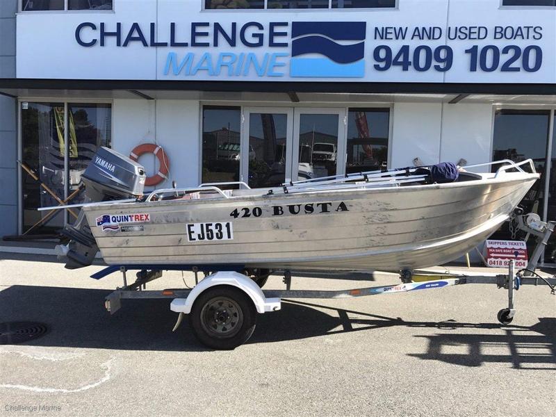 Under offer - What a great sought after size and combination. 2011 Quintrex 420 Busta with a 40 hp 2stroke Yamaha with power trim and tilt! on a great telwater trailer. Features lowrance sounder, side pockets, anchor well, rails and more. Great Bimini and the motor is showing just 44 hrs use!. On display at Challenge Marine - Perth's Leading Used Boat Destination - 30 Berriman Drive, Wangara 6065Need your boat sold? Call us today to find out how hassle free it can be. We are more than happy to provide price appraisals obligation free. At Challenge Marine we get results! We don't just collect listings, We sell Boats! While every effort is made to provide accurate information about our listings we accept no responsibility regarding its accuracy and purchasers should always undertake an independent mechanical / hull inspection by qualified personnel.