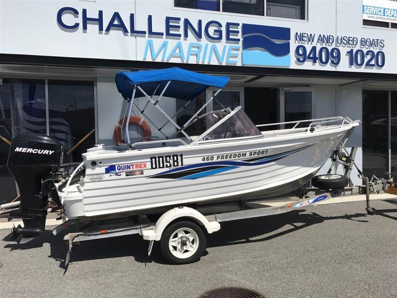 *************SOLD**********Australia&# 039;s favourite bow rider has arrived for sale the Quintrex 460 Freedom sport powered by a Mercury 60 HP 4 stroke showing 221 hours on the gauge, bimini, Hydraulic steering, rear removable seat, Lowrance sounder, VHF radio, spare tyre. Easy finance is available to approved applicants***MOTOR COMES WITH 4 YEARS WARRANTY THROUGH NATIONAL WARRANTY GROUP***Call Daniel for further details 0423 525 606We have great rates for interstate transport call for a quote. On display at Challenge Marine - Perth's Leading Used Boat Destination - 30 Berriman Drive, Wangara 6065 Need your boat sold? Call us today to find out how cost effective and hassle free it can be. We are more than happy to provide price appraisals obligation free. At Challenge Marine we get results! We don't just collect listings, we sell Boats! While every effort is made to provide accurate information about our listings we accept no responsibility regarding its accuracy and purchasers should always undertake an independent mechanical / hull inspection by qualified personnel. Boats always wanted to meet demand.
