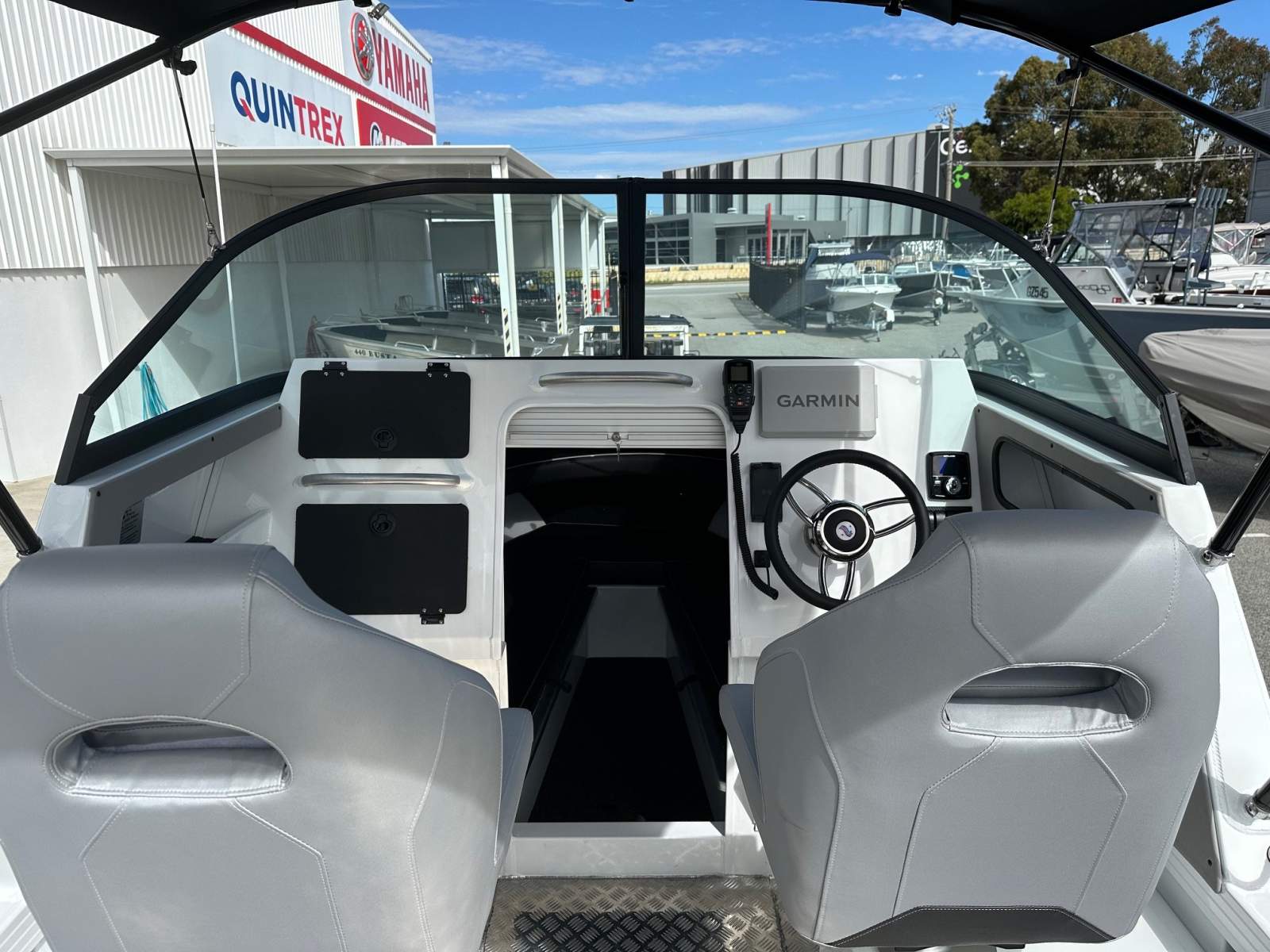 IN STOCK NOW!Built to rule the Ocean, Quintrex's innovative Plate Boat range comes standard with the industry-leading Millennium Blade Hull, constructed from tough 5mm plate bottom sheets. Created using stretch forming technology, the concave flare of the side sheets and bottom sheets delivers a sharper entry point, increased deadrise and a narrower shoulder, allowing the Trident to cut through rough water like a knife. With unparalleled offshore performance, the Trident is the ultimate big-game fishing boat. Packaged With - Mercury 200hp 4 Stroke Electric Start with Power Trim and Tilt EFI (Other Mercury and Yamaha Options Available)Factory Options Included- Front and Side Clears- Cabin Upholstery (Backrest, Cushions and Infill Set)- Deck Wash System- Transom Cutting Board - Black- USB Port (1) and Wireless Phone Charger- Fusion Stereo System- Garmin EchoMap 95sv Combo- Roller Door-Rocket Launcher Bimini Extension- SS 1000 Drum WinchStandard Packages include:Carpeted Cabin LiningU-Dek Kit12v OutletAnchorwellBlack Burley BucketBowrollerCabin FootrestLive Bait Tank Alloy & Glass Back DeckOutrigger Mounting PlatesRear Dive LadderRod Holders (6)ScuppersStainless Steel Cup Holders X 6Trim Tabs (Zipwake)Twin Battery Box & SwitchSelf Drain Floor TreadplateAluminium Side PocketsBlade HullCabin StorageFlared BowFully Weld Gunnels & Side DecksRocket Launcher w Reel Easy Rod HoldersTransducer Brackets x 2Painted HullRails: BowrailsRails: Cabin GrabrailRails: TransomCabin HatchWindscreenSeats: Apex SportSeats: Storage BoxesGT54UHD - Transom Mount TransducerHydraulic SteeringTransom Door12 Months boat and trailer registration, all Stamp duties paid. 5 x Standard Life JacketsAnchor Kit - 50 MetersOffshore Flare KitDigital EPIRBWe are Perth's Quintrex 'Dealer of the Year' for 6 years running! We simply won't be beaten on price or servicing!Need Finance? Call us on 9250 3339 to find out more about our low finance option, including no deposit finance!NB - Photos for Illustration purposes only, may include options not included in price. Specifications:Hull Length - 6.55mBeam - 2.48Max. HP - 200hpNumber of People - 7Fuel Tank - Under Floor 240LBoat Weight - 1006kgMotor Weight - 255kgTransom Shaft Length - XLSTop Sides - 3mmBottom Sides - 5mmTransom Material - 5.00mmTAGS:Barcrusher, Genesis, Chivers, Revival, Razerline, Shark, Quintrex, Stacer, Savage, Coraline, Fishhunter, Extreme