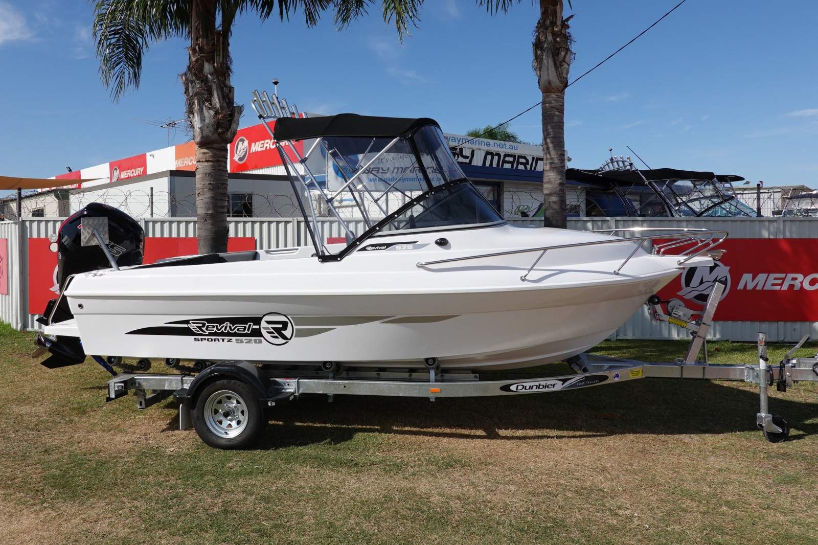 Fresh into stock, the ever popular 520 Runabout by Revival BoatsNow available at Midway Marine. This 17ft Runabout punches above the rest in its class with its nice high free board, deck space and walk thru screen/bowWe have powered this one with a Mercury 115hp 4st Pro XS, CT (command thrust gear box)The propeller on Command Thrust models has 20% more surface area than the standard propellers. Once you're on the plane, the Command Thrust models can also keep you on the plane at lower speeds. Being on the plane means more of the boat is out of the water and the boat has less drag, which means better fuel economy and cost savings for you. . Boat comes withRear platforms and s/s fold down ladderBiminiTarga barFront and side clearsVHF radioDLX switch panelBattery and iso switchSmart craft gaugingSimrad GO7 with trans and map (can upgrade if needed)Dunbier Rollamatic series single axle trailer Also comes with jackets, offshore flares, epirb and anchor kit to suit12months license into your name on boat and trailer . STANDARD FEATURESBilge Pump 1500 gphBollard Split - Stainless SteelBow Roller - Stainless SteelCarpeted Floor & Sides - GluedCoaming LightsCockpit Side Pockets Fibreglass Gelcoated WhiteFOAM FILLEDHull and Deck - All White with Stripes and GraphicsLarge Life Jacket Storage Compartment below Deck above Floor with Hinge LidsLockable Glove BoxMechanical Steering - Non Feed BackNavigation LightsPadded Back Rest - Rear of Cockpit with Removable Fold Down Rear Lounge. With upholstered Rear Side Coaming Panels. Panic Rail for Passenger - Stainless SteelPort Side Coaming Storage CompartmentRear Boarding Platform - Port / Stb Sides with Hand Rail and Fold Away LadderRear Cleats - Stainless SteelRear Tow Eye - Stainless SteelRod Holders S/SSeat Box F/Glass with Tackle Box ( Flip up Seat)Split Bowrail - Stainless SteelSwivel Bucket Seats on Pedestal with Slides Flip UpUnder Floor Fuel Tank 100LUnder Floor Kill Tank / Storage LockerWalk Through Windscreen to Anchor HatchWater Resistant Switch PanelWindscreen Rail. WE CAN ARRANGE EASY AND NO HASSLE FINANCE AND INSURANCE TO APPROVED CLIENTSMIDWAY MARINE43 HURRELL WAYROCKINGHAM WA9527 6963www. Midwaymarine. Net. Au. CALL SAM OR JAMIE ON 9527 6963OR COME INTO OUR YARD AND LOOK AT ALL OF OUR STOCK ON HANDWE ARE AGENTS FOR FISH HUNTER BOATS AND REVIVAL BOATSWE SELL NEW AND USED BOATS, NEW MERCURY OUTBOARDS, DUNBIER AND MACKAY TRAILERS AND ALL THE PARTS YOU NEED FOR YOUR BOAT/MOTOR/TRAILERTRADE INS ARE WELCOME!WE SERVICE AND REPAIR ALL BRANDS OF MOTORSGEAR YOUR BOAT UP WITH RAYMARINE, FUSION, GME OR LOWRANCE ELECTRONICSBIA MEMBERS AND BIA APPROVED REPAIRERINSURE YOUR BOAT WITH NAUTILUS MARINE INSURANCE OR CLUB MARINE INSURANCE, AGENTS FOR BOTHLIKE US ON FACEBOOK AND FOLLOW US ON INSTAGRAMPLEASE NOTE - offers via email prior to physically viewing the boat or discussing the boat with us in person may not be replied to or considered. Please call to discuss genuine offers.
