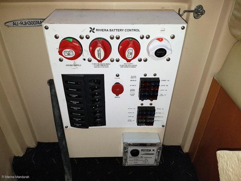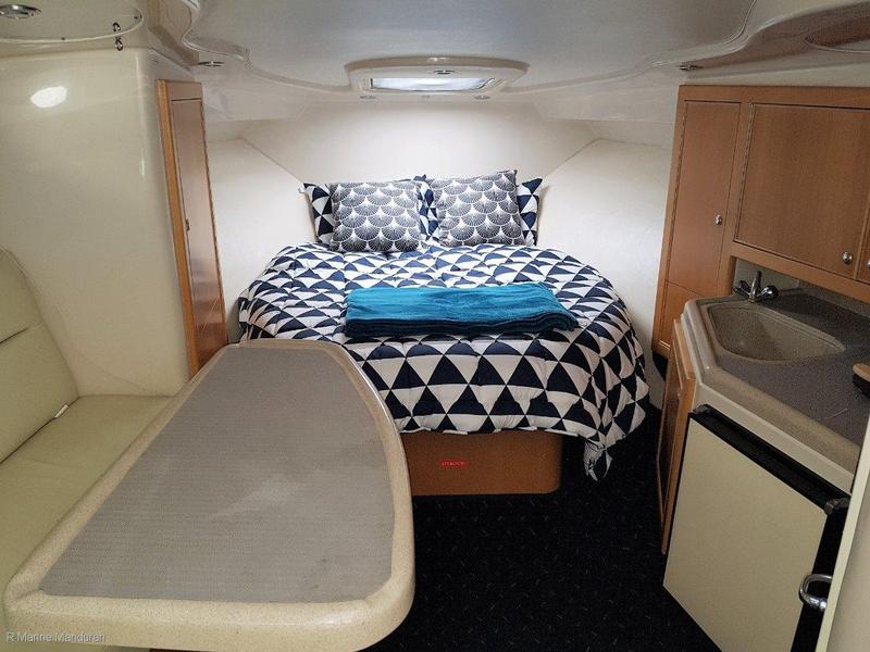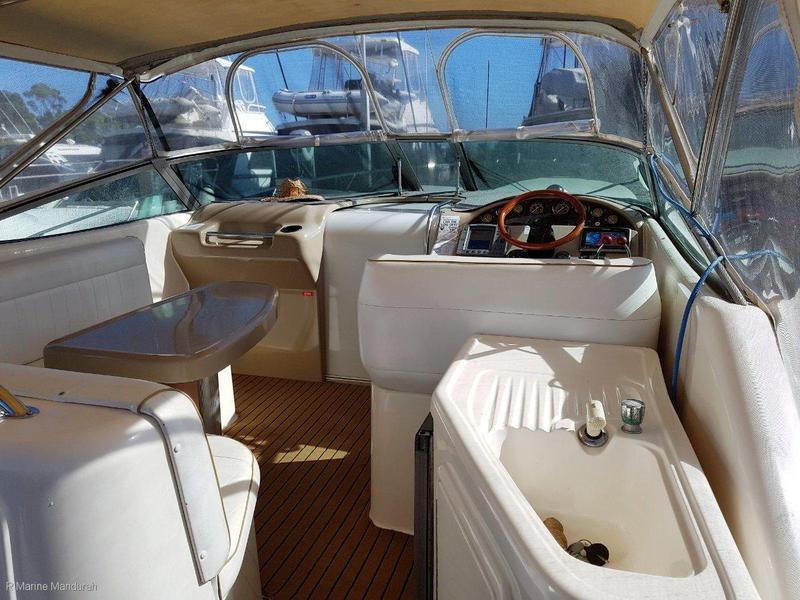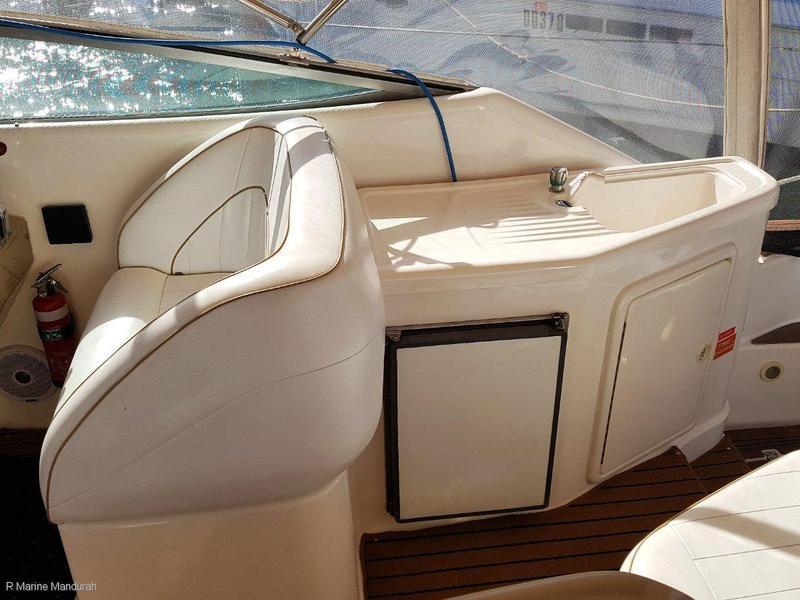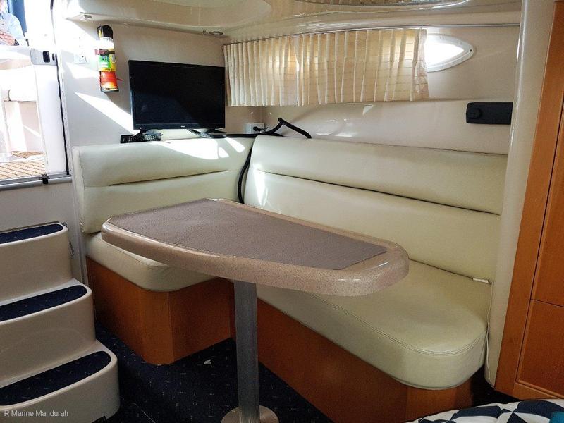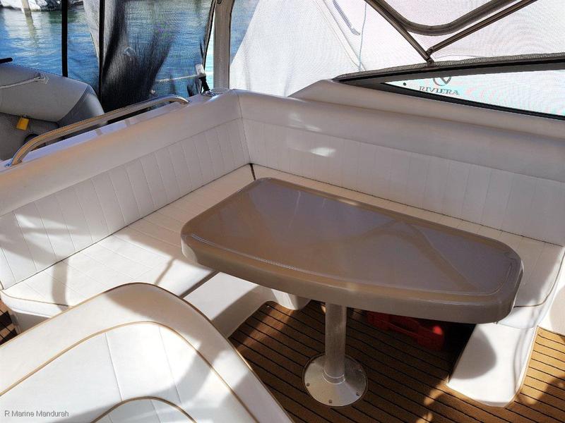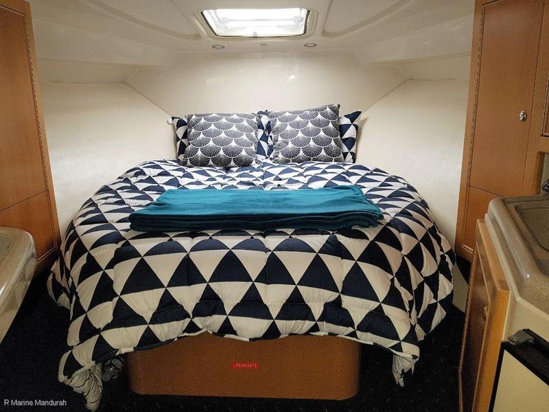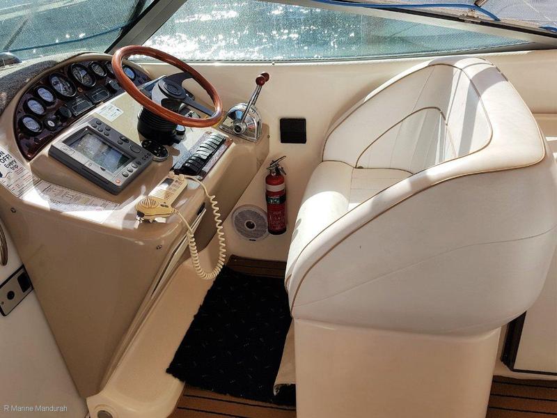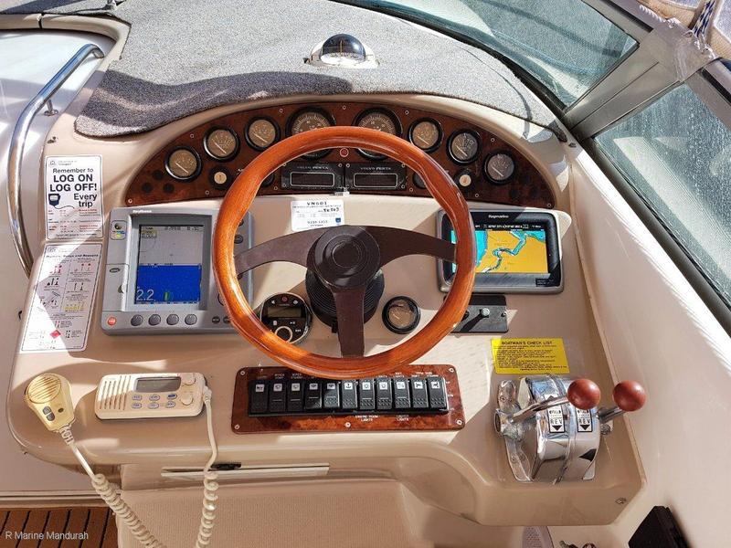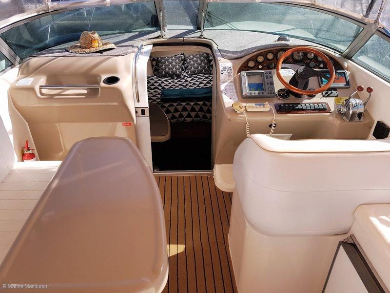 R Marine Mandurah is again pleased to bring a quality Riviera to the market. Always difficult to come by in the WA Market the Riviera 3000 offshore ticks all the boxes on the wish list in this class of boat. Located in the clean green waters of the lower Swan this Riviera 3000 is looking for its next family to enjoy time at Rotto or cruising the coast. Offering a combination of accommodation and entertaining the Riviera 3000 Offshore manages to cover all the bases with a well proportioned package giving great thought to all the needs of a family boat in the 30 foot range. Stepping aboard via the swim platform and entering the boat through the centrally located transom door the boat opens up to a large clutter free cockpit, storage throughout complete with two large bulkhead mounted lockers ideal for the fisherman, the entertainer or the family cruiser. Think lures and tackle, drink holders and tableware, snorkelling gear and beach towels. Lets not forget the wet bar with second fridge !Moving through the cockpit take a step up to the raised helm and seating area a featured carried through the offshore series of Riviera boats, relax in the port side L shaped lounge built to the quality expected from a Riviera. Spread out a few afternoon platters on the table while the skipper navigates the pristine WA waterways in a deep comfortable wrap around helm seat. Vision is fantastic from the helm complete with a colour sounder and touch screen GPS. As the day winds down the forward cabin comes into its own. Mum and dad have a great sized forward island berth with the cabin dinette converting to a pair of bunks for the kids. The 30 foot class is not renowned for quality space in the cabin, at over 6 foot tall I find the cabin more than suitable with room to relax at the dinette, room to move in the starboard side galley and the bonus of a full sized bathroom. Recently replaced nautical themed carpets have this area looking neat and tidy. The major tick on the wish list for a 30 foot boat comes from the power base of the Riviera 3000 Offshore, powered by a pair of Volvo TAMD 41P shaft driven diesel engines pushing out 200hp per side will have you cruising along at a comfortable 20 knots. Showing under 600 hours at the time of listing you have economy and longevity on your side. Currently in the hands of the third owner this 3000 Offshore is well presented with a host of work carried out in recent times. Service Jan 2018Anti-foul with prop speed being done April 2018Aft bilge pump replaced late 2017New carpets to the cabin 2016Cabin TV, 12v with DVD 2016Opening Stainless Steel bow rail - easy jetty access 2016If this could be the boat for you... Please give the office a call on 9583 5355 or Cruze on 0456 949 293 or Paul on 0427 949 293 to arrange a suitable time to look over her. Experience the R Marine Mandurah difference for yourself and see why all the great boats are being sold through R Marine Mandurah. See why our clients are talking so highly of the R Marine Mandurah team....... We are always looking for great boats to sell so if you have a similar boat please give Paul a call to arrange a suitable time for us to meet and list your boat with our NO SALE, NO FEE and FREE ADVERTISING policy..