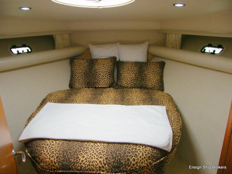 This vessel is in exceptional condition and is equipped with dual helm stations, full high gloss joinery which presents beautifully. � Cummins 370hp diesels with low original hours (470 / 485) � Just been detailed, cut and polished. � New clears - strataglass. � Carpets look new with protective covers. � Extended rear awning with full covers, shade screens on windows. � Teac cockpit. � Underwater lights. � LED lighting throughout. � Plenty of fridge/freezer storage � In galley, flybridge fridge + icemaker, cockpit eutectic fridge. � Onan Gen set with (697hrs) � Air conditioned throughout. Maintained by a vary fastidious owner, ready for immediate inspection and she will not disappoint! this vessel will sell fast, Vendor motivated, and you could be cruising the east coast, enjoying champagne and prawns on the rear deck�living the dream! Call now for your private inspection!EngineTwin Cummins 6-cylinderEngineHours470 / 485GensetOnan, 6.5 KvaFuelCapacity1,225LWaterCapacity450LWeight10,900kgShowerSeparateToiletVacuflush plus Holding TankCoversFlybridge and windscreenAccomodationCABINS: Two cabins - Riviera bedding, satin teak furniture<br>TOTAL BERTHS: 4<br>SALOON: Carpet and carpet covers<br>HEADROOM: 6'+<br>SHOWER: SeparateGalleyLAYOUT: L-shaped<br>STORAGE: Yes - Incl. under floor<br>STOVE TYPE: 240v ceramic top 2-burner<br>MICROWAVE: Micro/convectionRefrigerationFRIDGE: Yes<br>FREEZER: YesGroundTackleANCHOR WINCH: Yes<br>REMOTE: 3 x stations<br>ANCHOR: SS 40lbs<br>CHAIN: 70m SSSafetyGearBILGE PUMPS: Yes<br>EPIRB: 406Mhz<br>LIFEJACKETS: Yes<br>DANBOUY: Lifebuoy<br>FIRE PROTECTION: 3 x extinguisher<br>FLARES / VSHEET: Yes<br>SPOTLIGHT: YesElectricsLIGHTING: 12v/240v LED<br>SHORE POWER: Yes with charger<br>INVERTER: 300w<br>BATTERIES: 2 x start, 2 x house, 1 x gen<br>ElectronicsGPS: 2 x Raytheon L760<br>SOUNDER: 2 x Raytheon L760<br>AUTO PILOT: ST7000+<br>RADIOS: Icom IC145 and HF