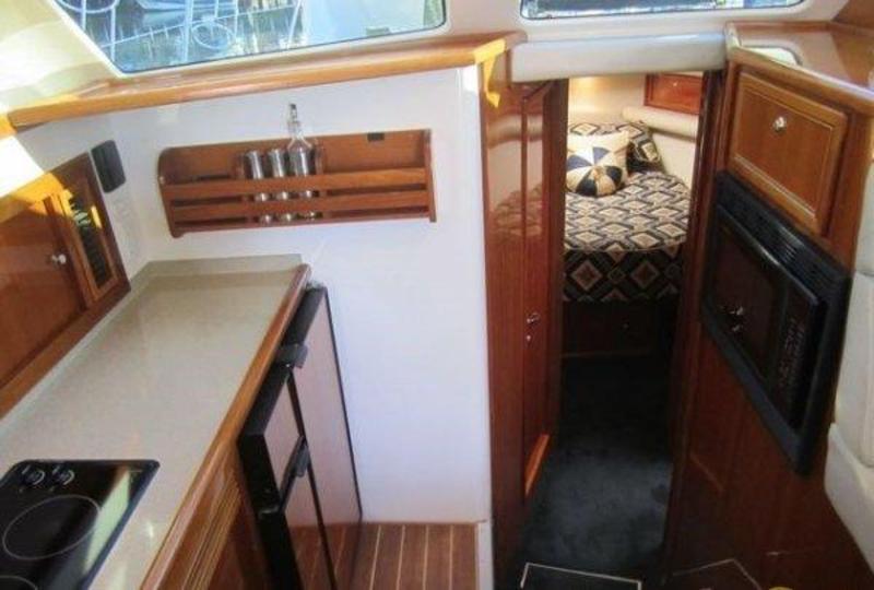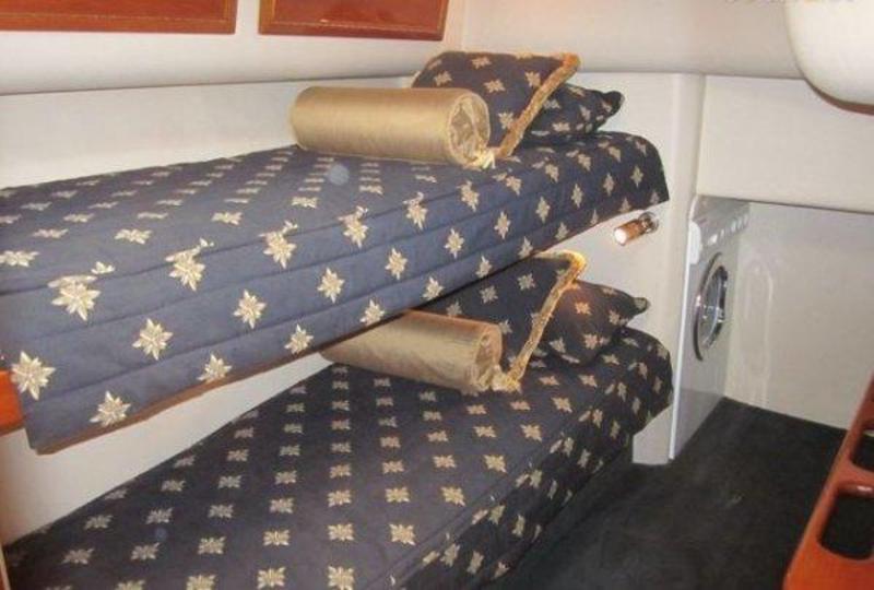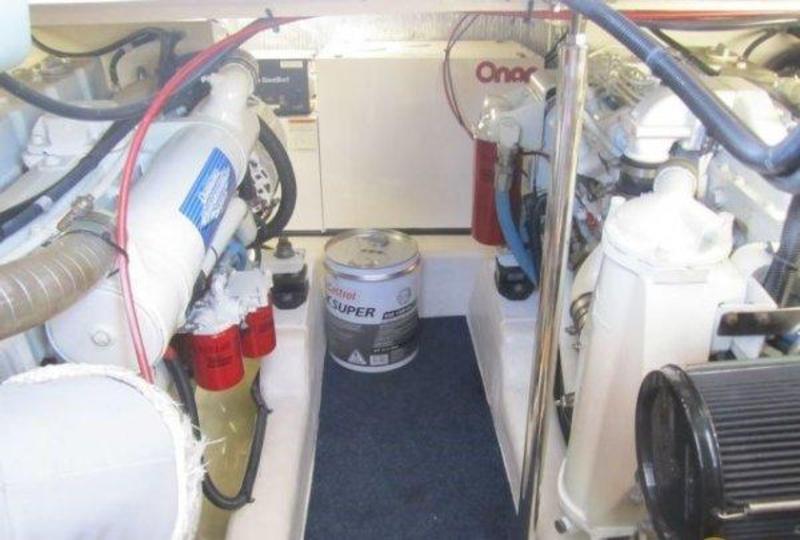 Beautifully maintained 2002 Riviera 40FT Flybridge Cruiser fitted with twin 450hp Cummins engines. Options include: - A/C to saloon and cabins - Dishwasher - Washing machine/dryer - Convection microwave oven - Icemaker - Riviera bedding package - Teak cockpit - Stainless steel BBQ - Teak look carpet to Flybridge - Live bait tank - Relax game poles - 11.5 KVA Genset - Inverter - 350kg tri-fold davit - Raymarine 140 widescreen with 1000 watt transducer - Long range forward fuel tank - Rear cockpit clears - New clears to flybridge. Sleeps 7 comfortably, with 2 in front master, 3 in second cabin and 2 in lounge which folds out to a sofa bed in saloon. Uetectic fridge in cockpit, bar fridge in flybridge and fridge/freezer in galley provides plenty of options for cold food storage on long trips away. Also included is a 2.8m Quicksiver hard bottom inflatable with an 8hp motor.
