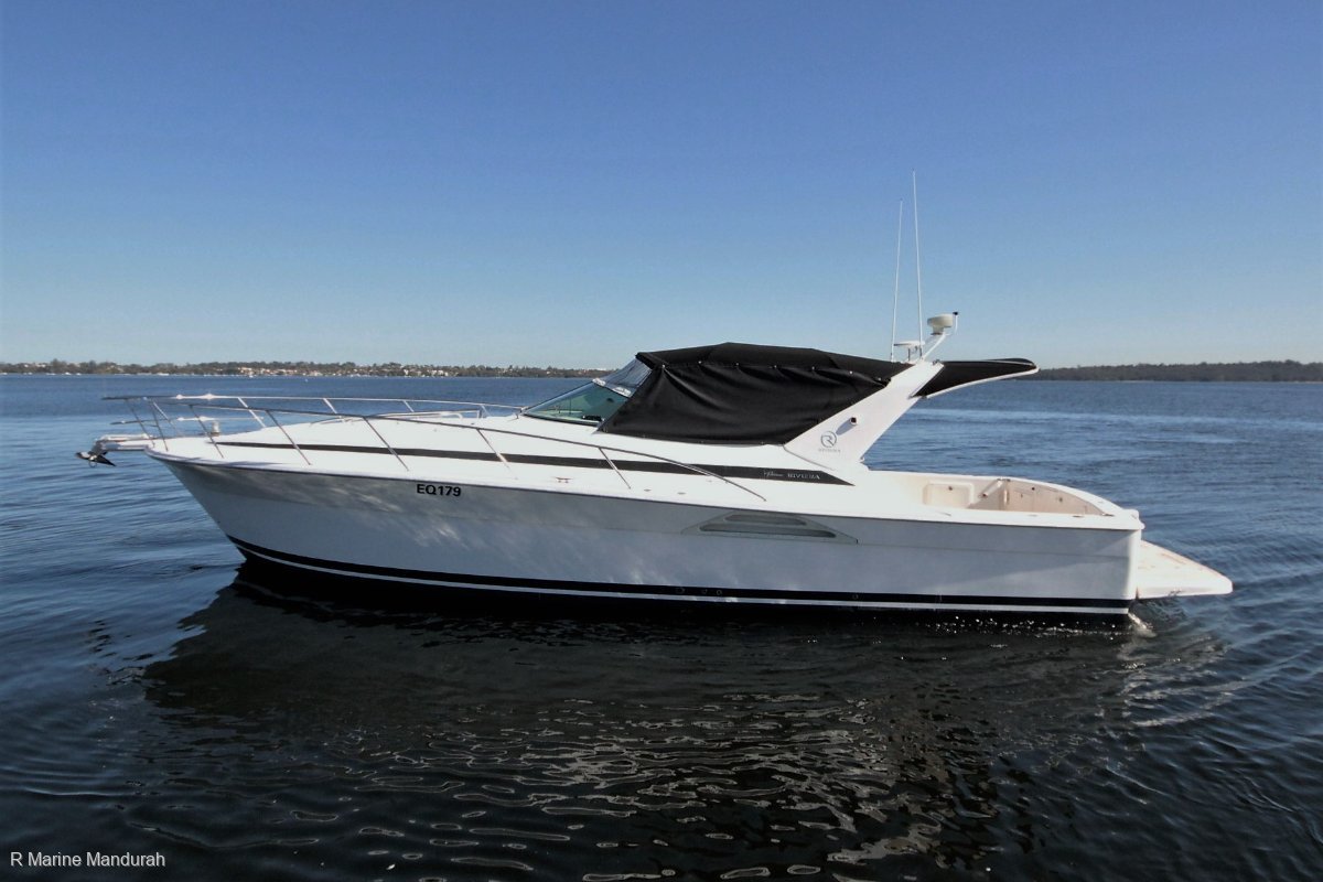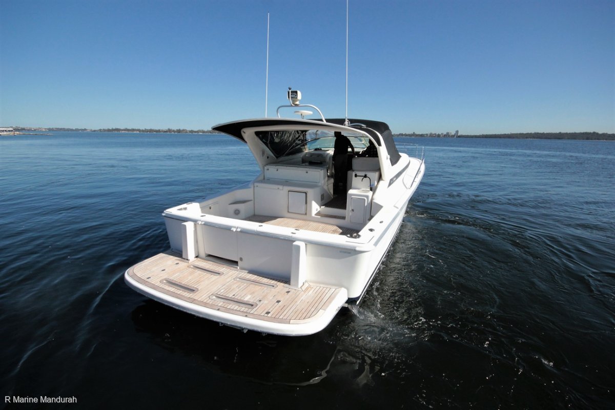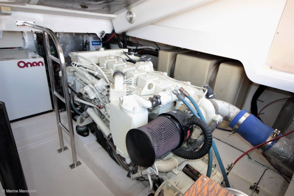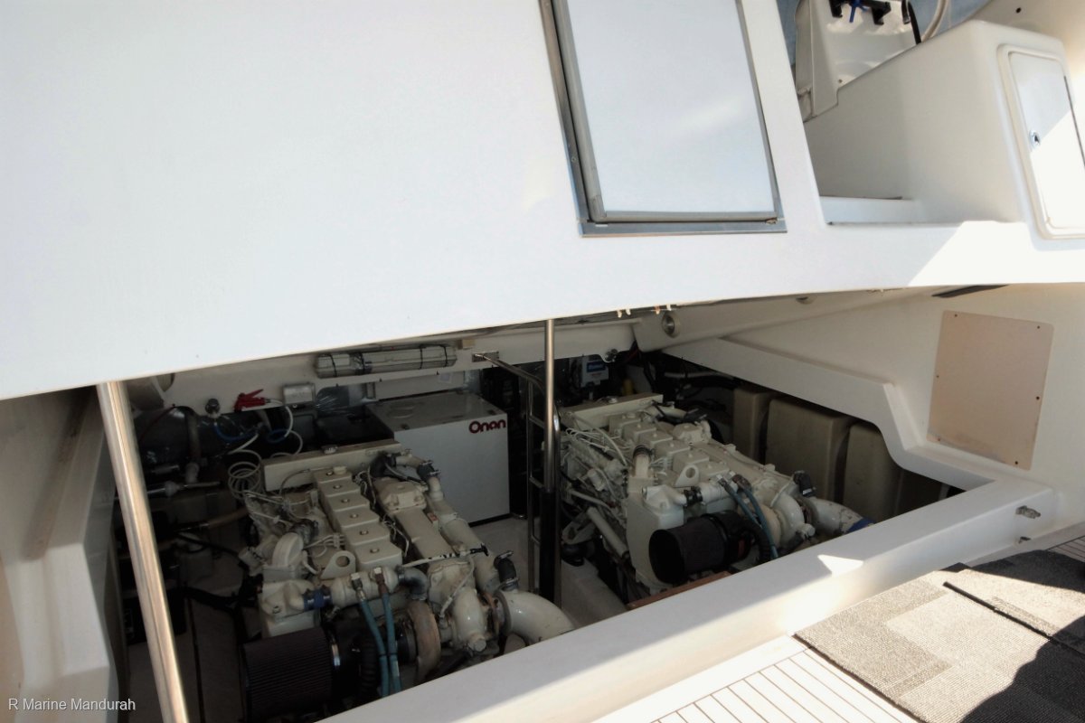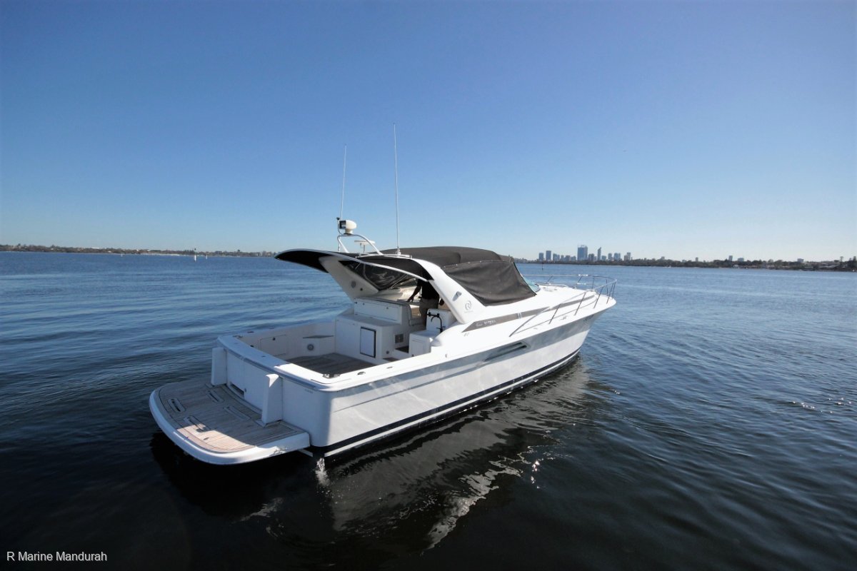 R Marine Mandurah is again pleased to bring another well sort after Riviera to the WA market. The ever popular Riviera 4000 Offshore, a family favourite and a much sort after boat with nearly 250 coming through the factory in QLD. The Riviera 4000 Offshore was one of the most popular boats Riviera has built. Feature packed for the family including a hydraulic swim platform with a 400 kg rating. Once aboard you are met with the normal expansive teak cockpit, Riv tech cool box and fridge. Plenty of room for the fisherman and entertainer alike. A small step up adjacent to the aft sink leads you into the raised helm mezzanine and lounge area. Room for the whole family to spread out in comfort and a well laid out helm with comfortable seating for those longer trips with Raymarine Sounder, GPS and Auto pilot. Great vision and plenty of protection over head. A pleasure to drive. Centrally located the opaque cabin door allows filtered light through into the cabin and easy access through to the main cabin. Finished in a light beech timber finish and neutral leather upholstery she looks light and airy with a feeling of space around you. A master cabin forward with a solid cabin door for privacy, a large L shaped leather lounge to Starboard converting to a double and bunk single above, a very functional Galley to port and a generous head with separate shower to Port with the door facing the Starboard side, the preferred style. Neat and tidy with Cruiseair AC unit she has been well kept. Access to the Cummins 6BTA-5.9,370 Hp Diesel engines is via a mezzanine hatch or by lifting the mezzanine area on electric rams. Sensational access for your tech for servicing and maintenance. Showing just 900 hours at the time of listing this engine bay shows signs of excellent maintenance, not a thing out of place. Ships power offered through the Onan 6.5Kva genset with under 1000 hours of use. Recent works :Serviced July 2019Genset serviced July 2019Anti-fouled July 2019Prop - Speed July 2019Acid bathed coolers 2019Call the office on 08 9583 5355, Paul on 0427949293 or Trevor on 0456 949 293 We are here to help and will be happy to arrange a suitable time to look over the Riviera 4000 OffshoreIf you considering selling a similar boat we cater to owners from Busselton to Mindarie and everywhere in between. List your boat with R Marine Mandurah and maximise your boats exposure. With a lifetime invested in the WA Marine Industry at all levels and thousands of boats sold Paul Denboer, Trevor Parkins and the team at R Marine Mandurah WILL sell your boat and are proud to offer a NO SALE NO FEE structure to all our valued clients. Why entrust your precious boat to just anyone !R Marine Mandurah, Experience the difference for yourself, see why our clients are speaking so highly of the R Marine Mandurah Team.