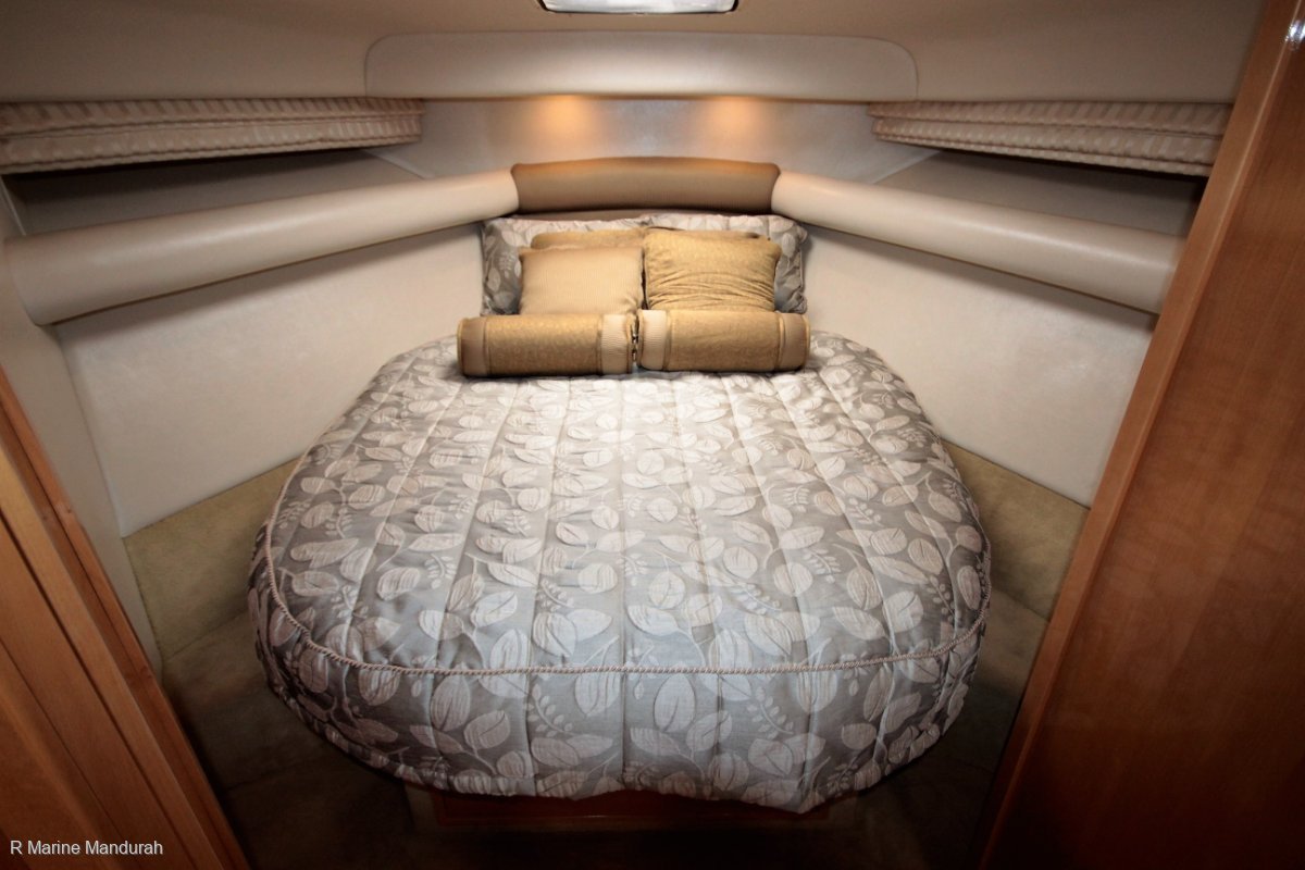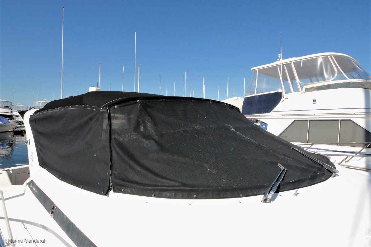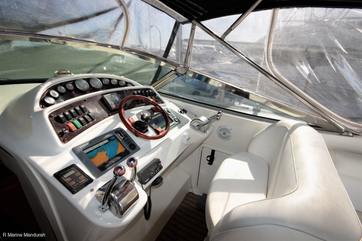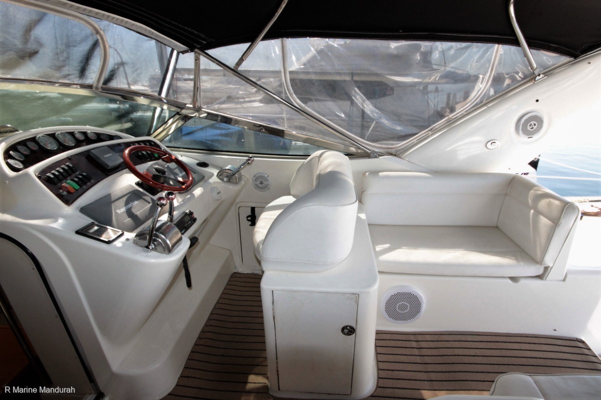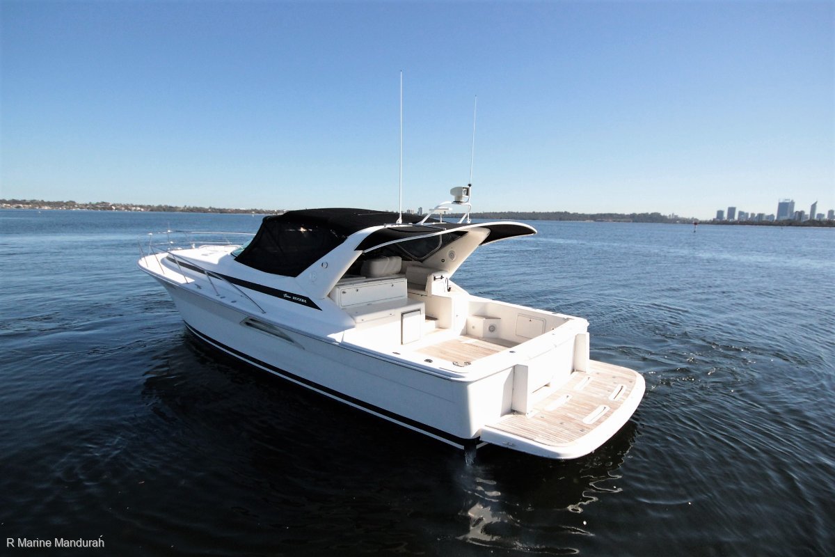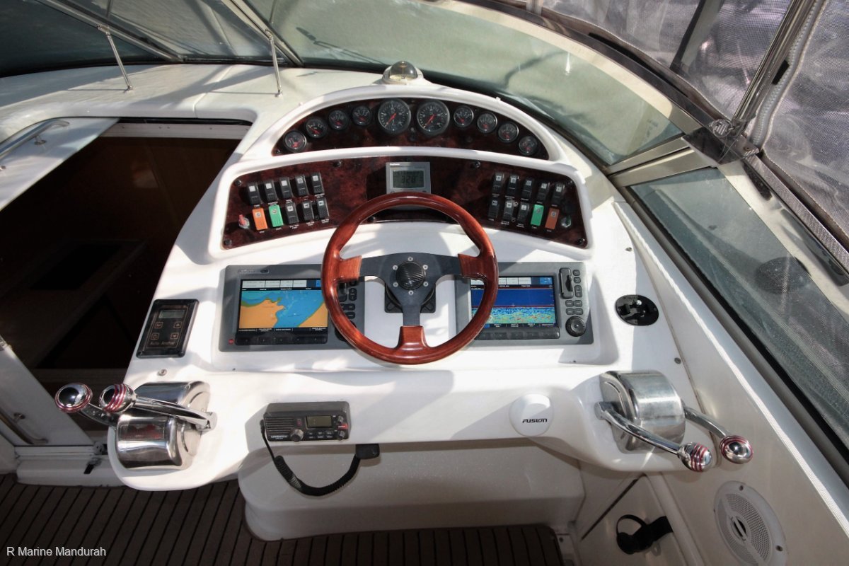 R Marine Mandurah is again pleased to bring another well sort after Riviera to the WA market. The ever popular Riviera 4000 Offshore, a family favourite and a much sort after boat with nearly 250 coming through the factory in QLD. The Riviera 4000 Offshore was one of the most popular boats Riviera has built. Feature packed for the family including a hydraulic swim platform with a 400 kg rating. Once aboard you are met with the normal expansive teak cockpit, Riv tech cool box and fridge. Plenty of room for the fisherman and entertainer alike. A small step up adjacent to the aft sink leads you into the raised helm mezzanine and lounge area. Room for the whole family to spread out in comfort and a well laid out helm with comfortable seating for those longer trips with Raymarine Sounder, GPS and Auto pilot. Great vision and plenty of protection over head. A pleasure to drive. Centrally located the opaque cabin door allows filtered light through into the cabin and easy access through to the main cabin. Finished in a light beech timber finish and neutral leather upholstery she looks light and airy with a feeling of space around you. A master cabin forward with a solid cabin door for privacy, a large L shaped leather lounge to Starboard converting to a double and bunk single above, a very functional Galley to port and a generous head with separate shower to Port with the door facing the Starboard side, the preferred style. Neat and tidy with Cruiseair AC unit she has been well kept. Access to the Cummins 6BTA-5.9,370 Hp Diesel engines is via a mezzanine hatch or by lifting the mezzanine area on electric rams. Sensational access for your tech for servicing and maintenance. Showing just 900 hours at the time of listing this engine bay shows signs of excellent maintenance, not a thing out of place. Ships power offered through the Onan 6.5Kva genset with under 1000 hours of use. Recent works :Serviced July 2019Genset serviced July 2019Anti-fouled July 2019Prop - Speed July 2019Acid bathed coolers 2019Call the office on 08 9583 5355, Paul on 0427949293 or Trevor on 0456 949 293 We are here to help and will be happy to arrange a suitable time to look over the Riviera 4000 OffshoreIf you considering selling a similar boat we cater to owners from Busselton to Mindarie and everywhere in between. List your boat with R Marine Mandurah and maximise your boats exposure. With a lifetime invested in the WA Marine Industry at all levels and thousands of boats sold Paul Denboer, Trevor Parkins and the team at R Marine Mandurah WILL sell your boat and are proud to offer a NO SALE NO FEE structure to all our valued clients. Why entrust your precious boat to just anyone !R Marine Mandurah, Experience the difference for yourself, see why our clients are speaking so highly of the R Marine Mandurah Team.