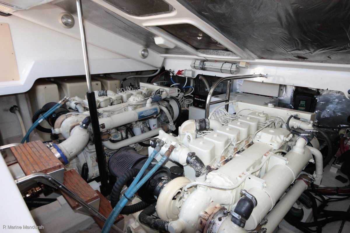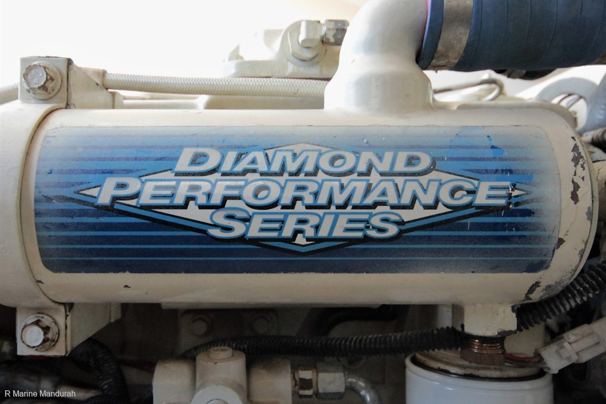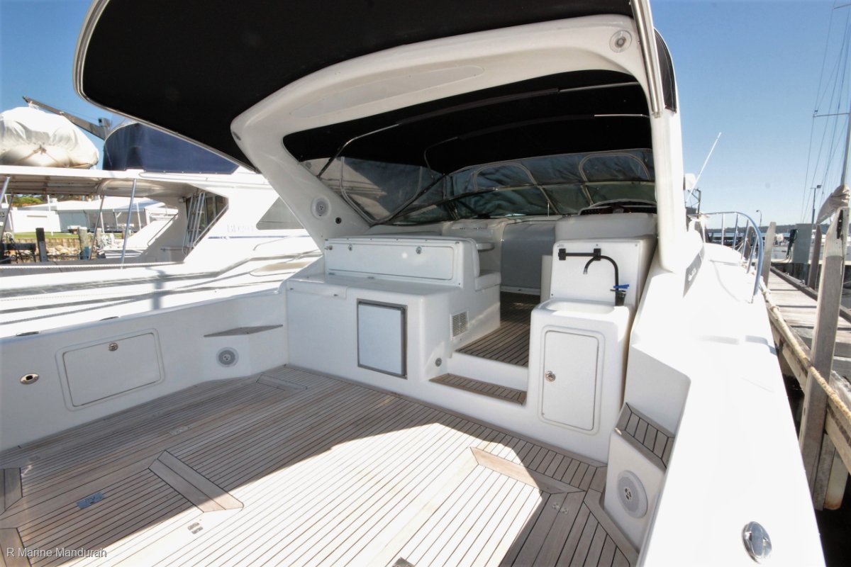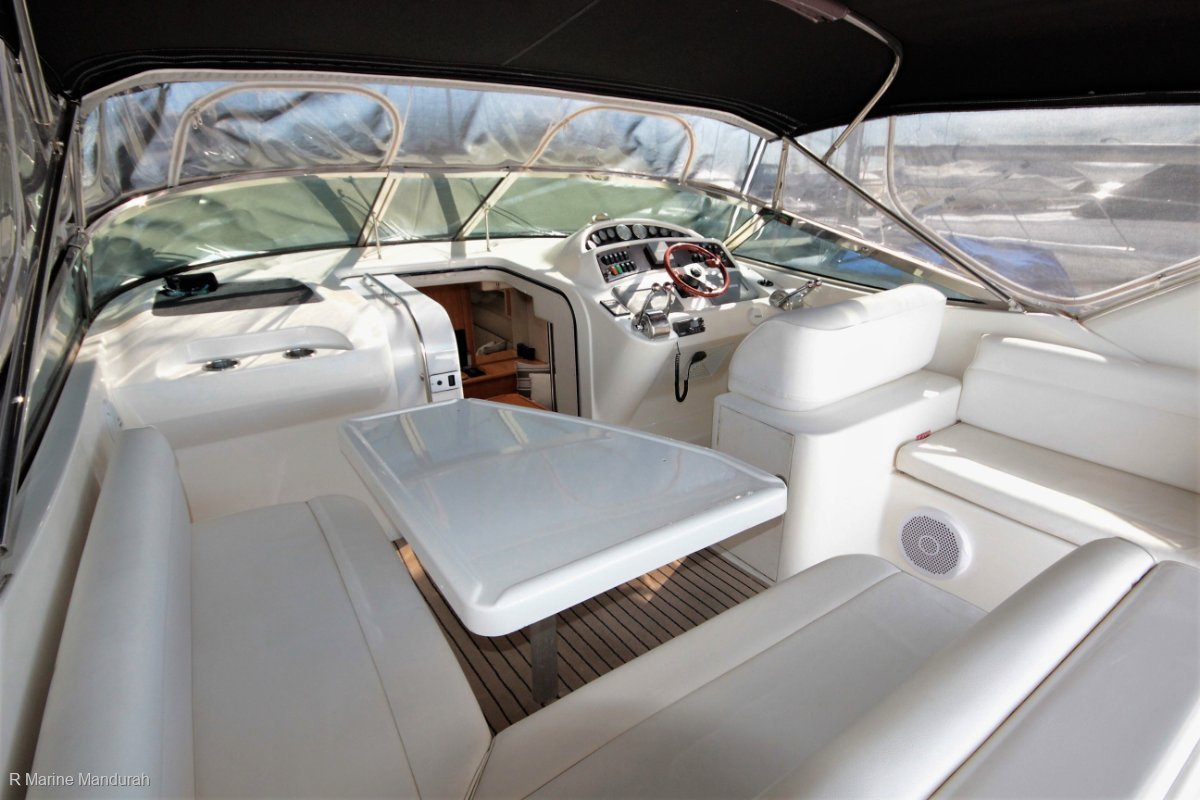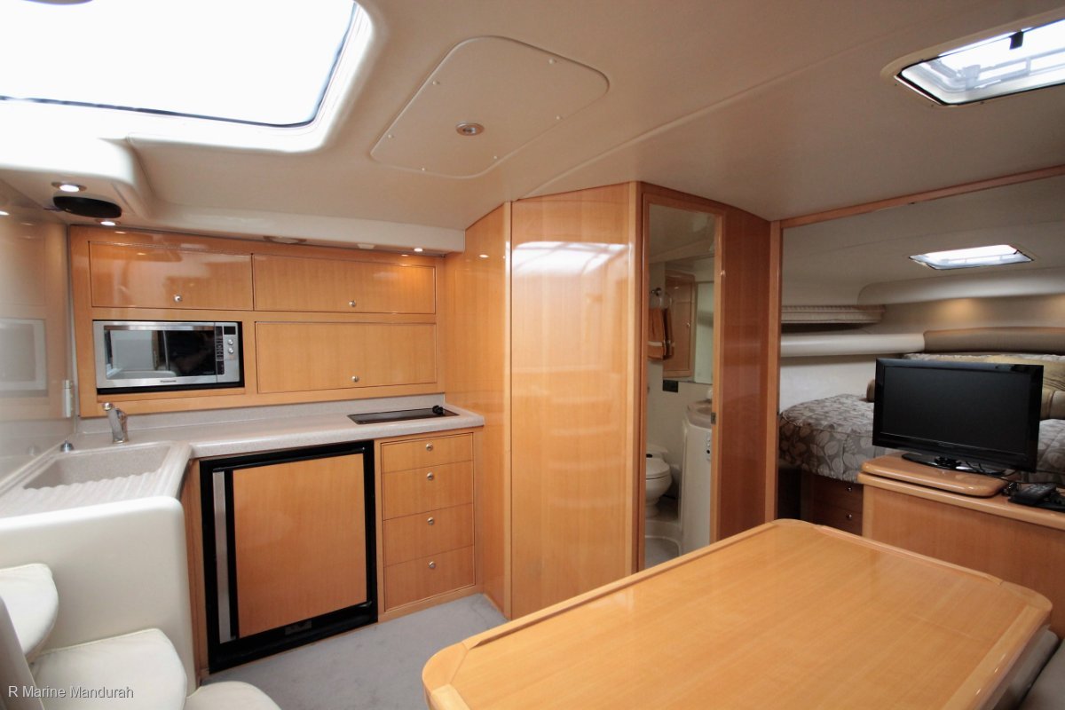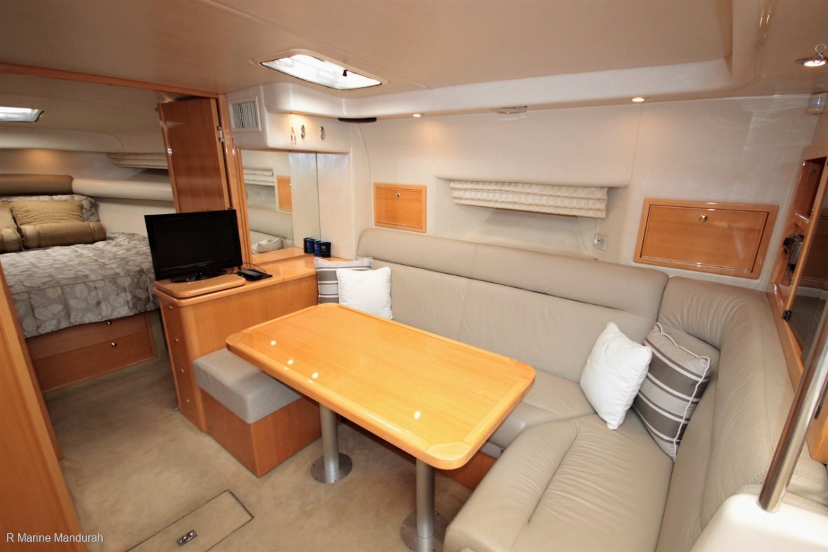 R Marine Mandurah is again pleased to bring another well sort after Riviera to the WA market. The ever popular Riviera 4000 Offshore, a family favourite and a much sort after boat with nearly 250 coming through the factory in QLD. The Riviera 4000 Offshore was one of the most popular boats Riviera has built. Feature packed for the family including a hydraulic swim platform with a 400 kg rating. Once aboard you are met with the normal expansive teak cockpit, Riv tech cool box and fridge. Plenty of room for the fisherman and entertainer alike. A small step up adjacent to the aft sink leads you into the raised helm mezzanine and lounge area. Room for the whole family to spread out in comfort and a well laid out helm with comfortable seating for those longer trips with Raymarine Sounder, GPS and Auto pilot. Great vision and plenty of protection over head. A pleasure to drive. Centrally located the opaque cabin door allows filtered light through into the cabin and easy access through to the main cabin. Finished in a light beech timber finish and neutral leather upholstery she looks light and airy with a feeling of space around you. A master cabin forward with a solid cabin door for privacy, a large L shaped leather lounge to Starboard converting to a double and bunk single above, a very functional Galley to port and a generous head with separate shower to Port with the door facing the Starboard side, the preferred style. Neat and tidy with Cruiseair AC unit she has been well kept. Access to the Cummins 6BTA-5.9,370 Hp Diesel engines is via a mezzanine hatch or by lifting the mezzanine area on electric rams. Sensational access for your tech for servicing and maintenance. Showing just 900 hours at the time of listing this engine bay shows signs of excellent maintenance, not a thing out of place. Ships power offered through the Onan 6.5Kva genset with under 1000 hours of use. Recent works :Serviced July 2019Genset serviced July 2019Anti-fouled July 2019Prop - Speed July 2019Acid bathed coolers 2019Call the office on 08 9583 5355, Paul on 0427949293 or Trevor on 0456 949 293 We are here to help and will be happy to arrange a suitable time to look over the Riviera 4000 OffshoreIf you considering selling a similar boat we cater to owners from Busselton to Mindarie and everywhere in between. List your boat with R Marine Mandurah and maximise your boats exposure. With a lifetime invested in the WA Marine Industry at all levels and thousands of boats sold Paul Denboer, Trevor Parkins and the team at R Marine Mandurah WILL sell your boat and are proud to offer a NO SALE NO FEE structure to all our valued clients. Why entrust your precious boat to just anyone !R Marine Mandurah, Experience the difference for yourself, see why our clients are speaking so highly of the R Marine Mandurah Team.