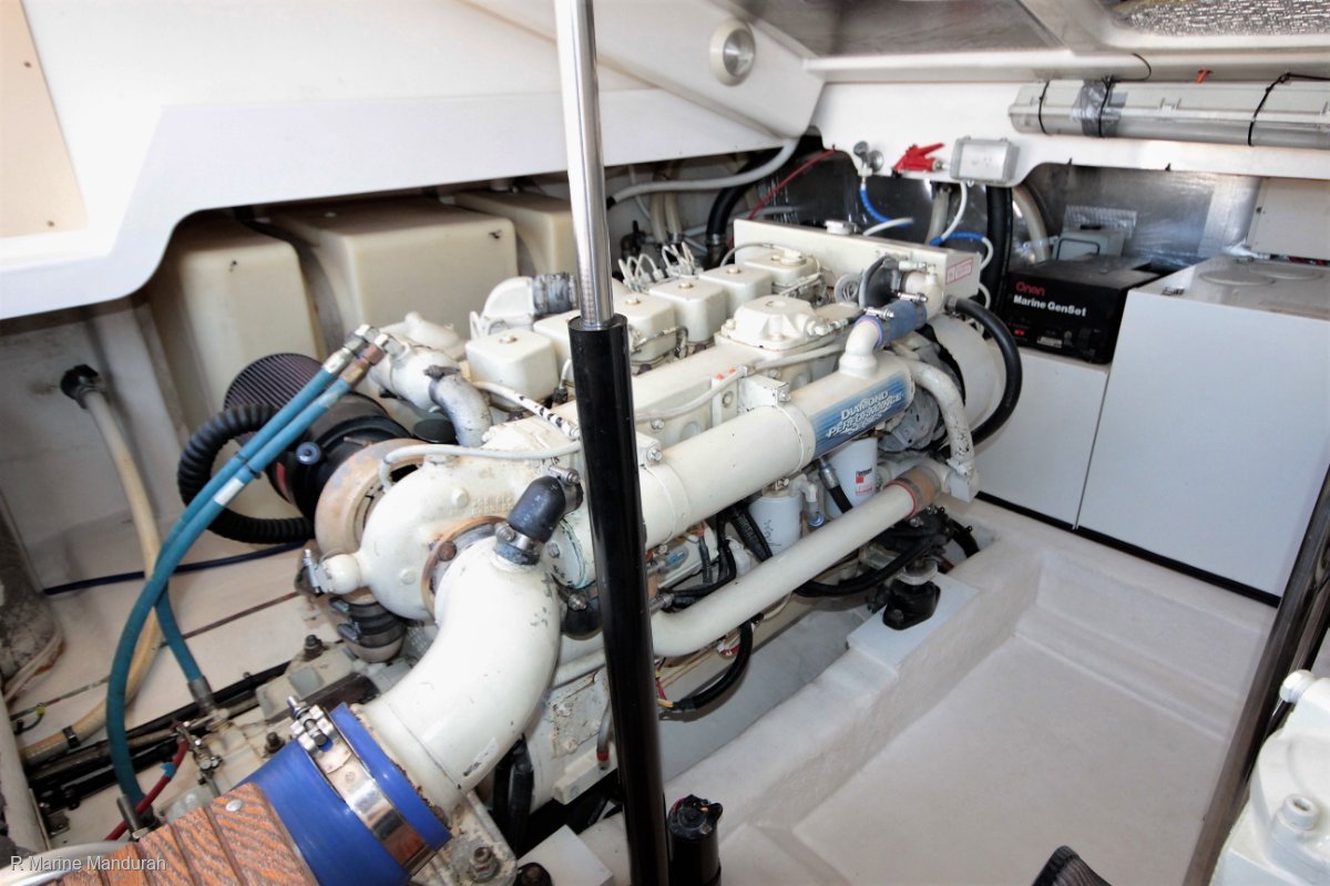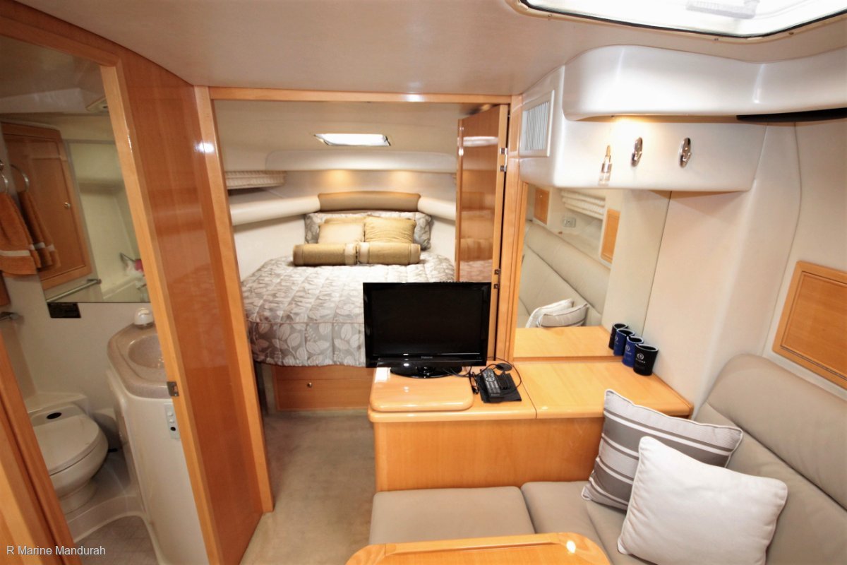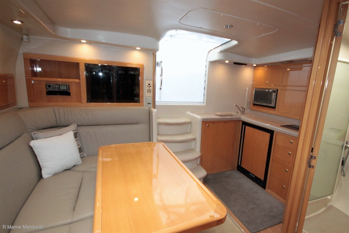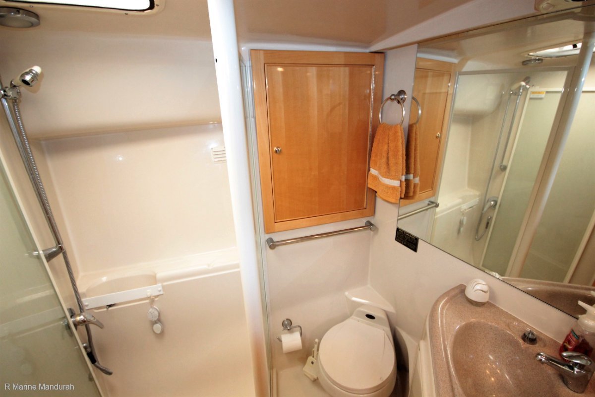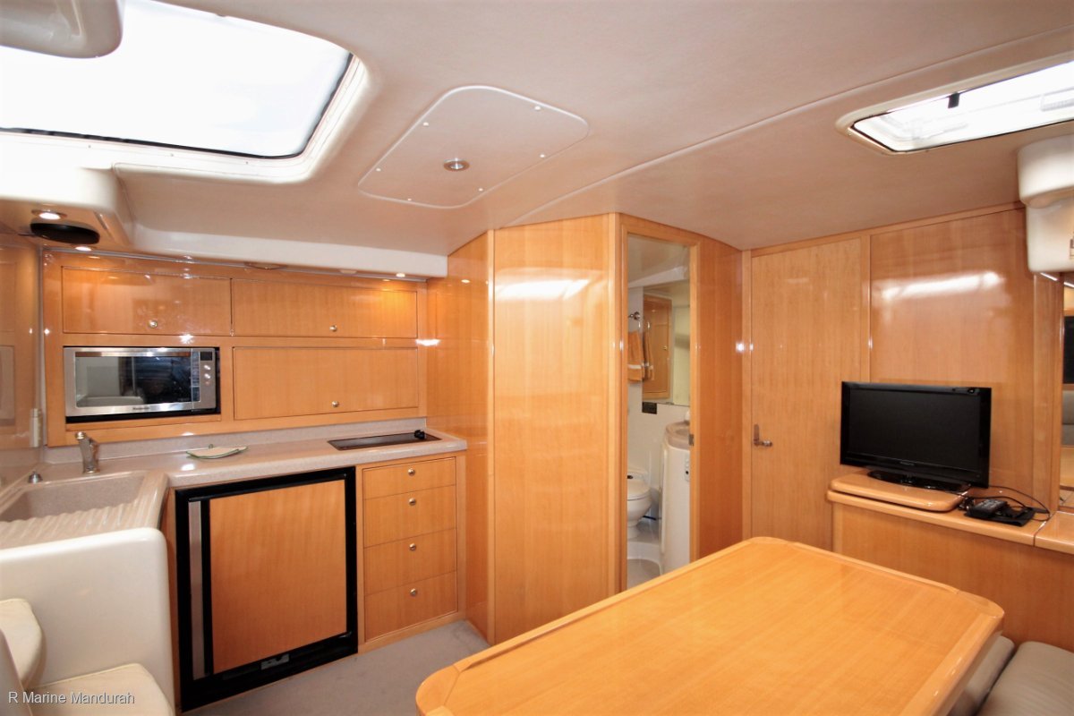 R Marine Mandurah is again pleased to bring another well sort after Riviera to the WA market. The ever popular Riviera 4000 Offshore, a family favourite and a much sort after boat with nearly 250 coming through the factory in QLD. The Riviera 4000 Offshore was one of the most popular boats Riviera has built. Feature packed for the family including a hydraulic swim platform with a 400 kg rating. Once aboard you are met with the normal expansive teak cockpit, Riv tech cool box and fridge. Plenty of room for the fisherman and entertainer alike. A small step up adjacent to the aft sink leads you into the raised helm mezzanine and lounge area. Room for the whole family to spread out in comfort and a well laid out helm with comfortable seating for those longer trips with Raymarine Sounder, GPS and Auto pilot. Great vision and plenty of protection over head. A pleasure to drive. Centrally located the opaque cabin door allows filtered light through into the cabin and easy access through to the main cabin. Finished in a light beech timber finish and neutral leather upholstery she looks light and airy with a feeling of space around you. A master cabin forward with a solid cabin door for privacy, a large L shaped leather lounge to Starboard converting to a double and bunk single above, a very functional Galley to port and a generous head with separate shower to Port with the door facing the Starboard side, the preferred style. Neat and tidy with Cruiseair AC unit she has been well kept. Access to the Cummins 6BTA-5.9,370 Hp Diesel engines is via a mezzanine hatch or by lifting the mezzanine area on electric rams. Sensational access for your tech for servicing and maintenance. Showing just 900 hours at the time of listing this engine bay shows signs of excellent maintenance, not a thing out of place. Ships power offered through the Onan 6.5Kva genset with under 1000 hours of use. Recent works :Serviced July 2019Genset serviced July 2019Anti-fouled July 2019Prop - Speed July 2019Acid bathed coolers 2019Call the office on 08 9583 5355, Paul on 0427949293 or Trevor on 0456 949 293 We are here to help and will be happy to arrange a suitable time to look over the Riviera 4000 OffshoreIf you considering selling a similar boat we cater to owners from Busselton to Mindarie and everywhere in between. List your boat with R Marine Mandurah and maximise your boats exposure. With a lifetime invested in the WA Marine Industry at all levels and thousands of boats sold Paul Denboer, Trevor Parkins and the team at R Marine Mandurah WILL sell your boat and are proud to offer a NO SALE NO FEE structure to all our valued clients. Why entrust your precious boat to just anyone !R Marine Mandurah, Experience the difference for yourself, see why our clients are speaking so highly of the R Marine Mandurah Team.