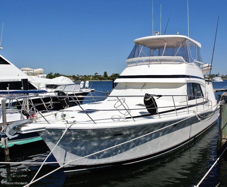 A rare boat in the WA market with its three cabin design and a huge open plan saloon this is the entertainer you have been waiting for. It is one of those boats that will leave you standing on the dock wishing you had bought here if you do not act immediately. Recently renovated internally with fresh upholstery to the lounges and armchairs with fresh carpets throughout the hard work has been done and she looks a treat. A full walk around forward berth with cabins port and starboard sporting adult sized berths giving you room for 6 pax for overnight trips. Featuring a huge bathroom my 180 cm plus body had No worries here. LARGE port side galley featuring a stand up fridge freezer, solid bench tops and ample storage and usable bench space completes the appeal of this boat internally. Room to move on the fly bridge with a double helm chairs, large table and plenty of seating ensures the captain will not be left alone to skipper the boat to and from your destinations, there is room for everyone. Twin 3126,420 Hp Cats power the boat and show low hours for its age. The thorough ships log ensures every move has been recorded. Kohler genset, cruiseair airconditioning, vacuflush toilet and a Citor water maker add depth to the inclusions. The boat has everything you will need for extended trips to sea. The owner is considering his next boat and would like to see this Riviera sold, if you are interested in a well maintained triple cabin layout we are interested in discussing an offer with you. WE WORK THIS BOAT SO REST ASSURED IT IS QUALITY!The owner is as fastidious as US and spares no expense on her upkeep!!Do not hesitate to contact the R Marine Mandurah team to arrange a viewing of the boat - Riviera, its our business. We live breath and own RIVIERA. Contact the office on 08 9583 5355 or Paul on 0427 949 293 or Carl on 0407 949 293Experience the R Marine Mandurah difference yourself. We are always looking for quality boats to bring to the WA market if you are considering selling your boat please call the R Marine Mandurah team today and arrange a time to meet and list your boat.
