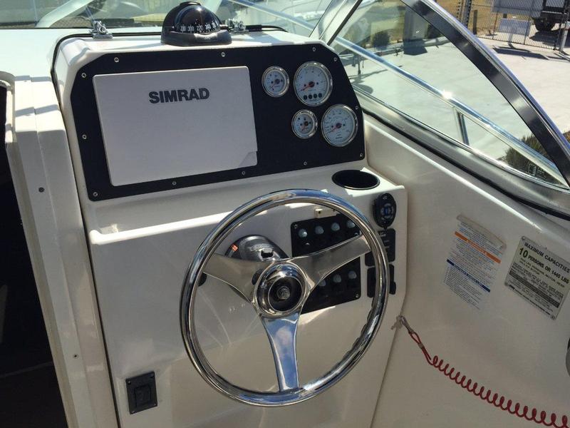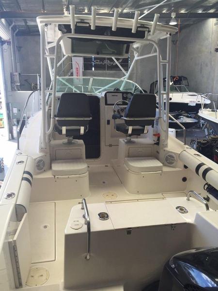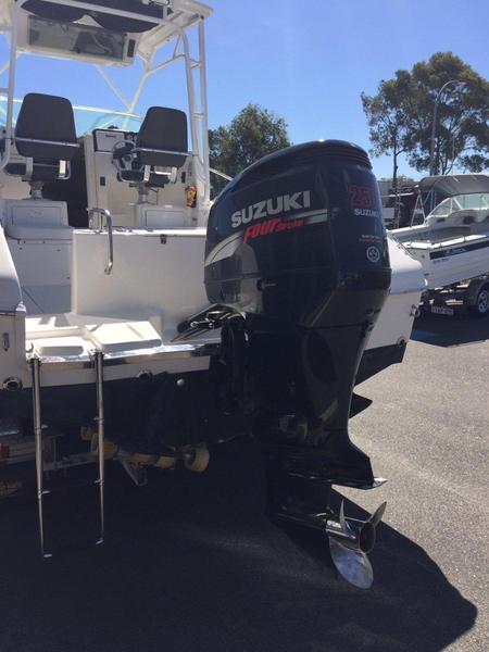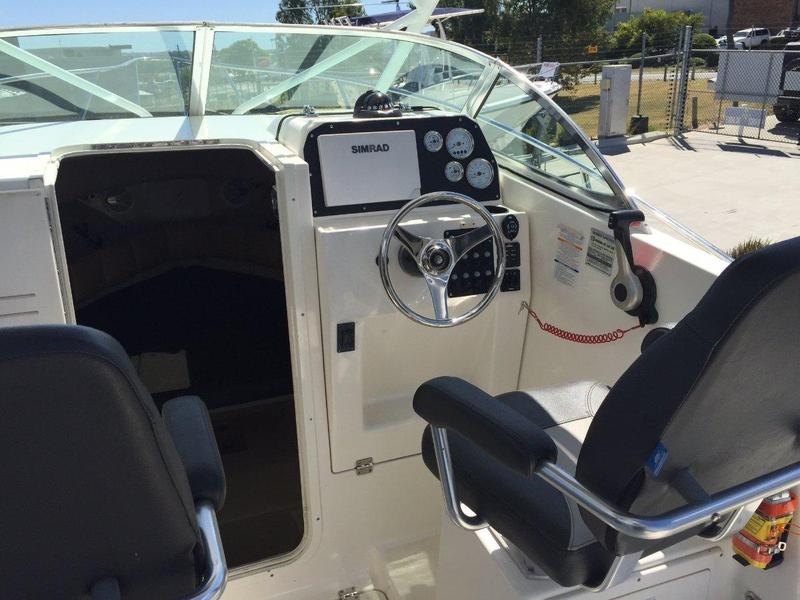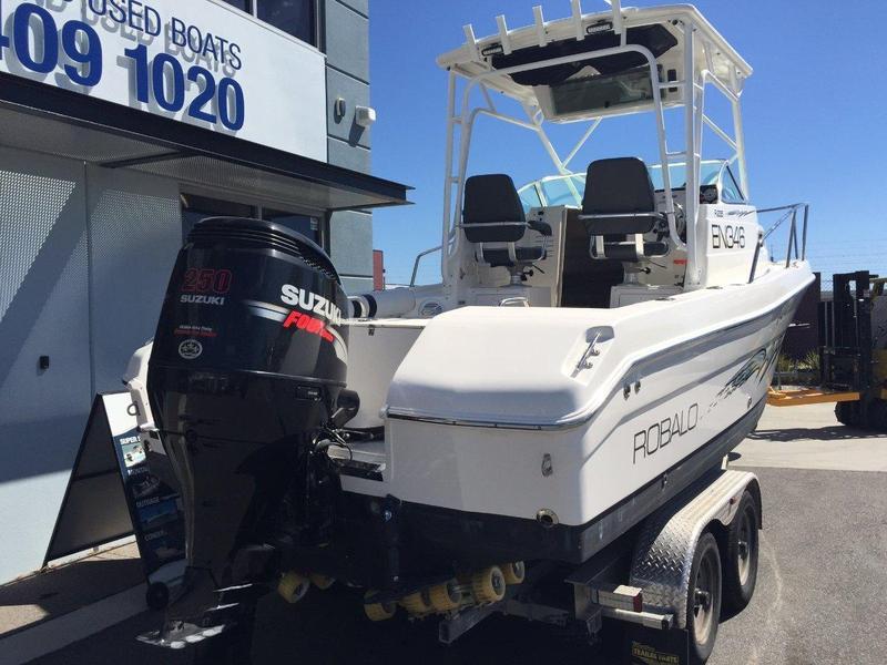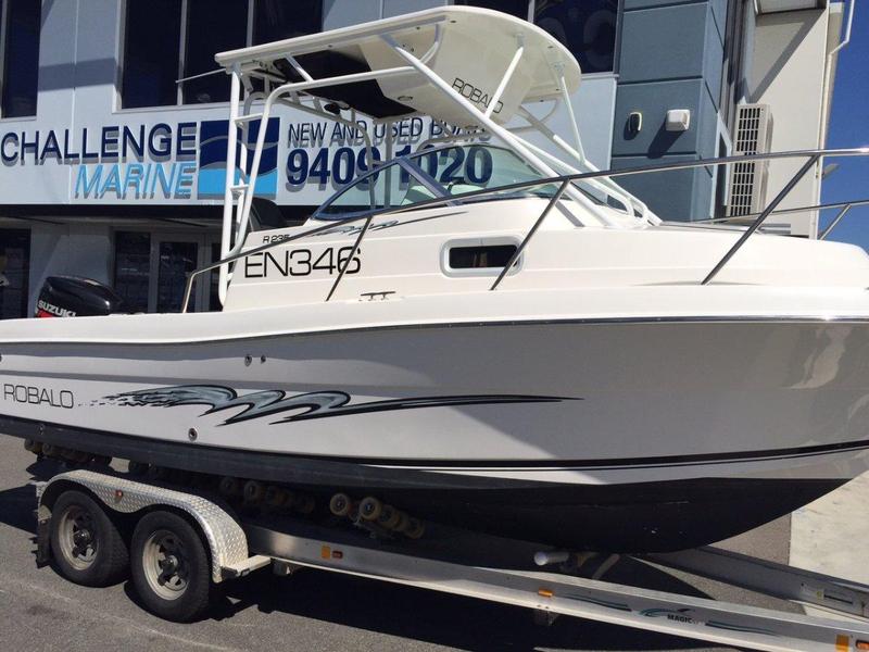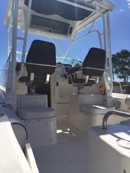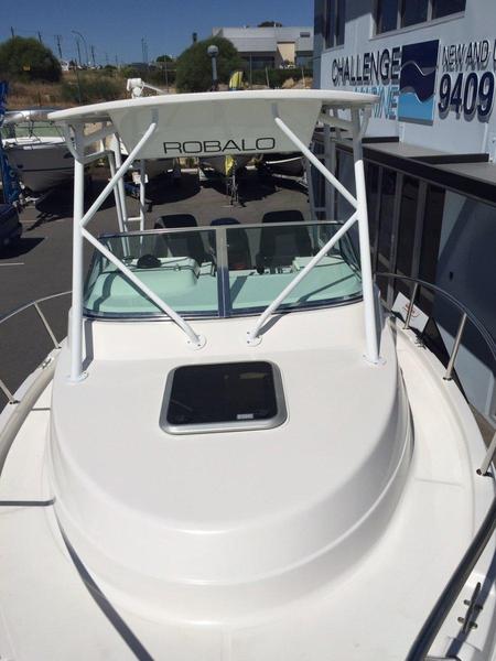 Stunning 23' Walkaround from the quality Robalo Stable. Well known for their finish and punching above their weight in features/layout and finish. Great sized cabin that will easily sleep two. This boat has been lovingly refurbished including all new electrics and wiring, anchor winch serviced and converted to 8mm chain to suit our Australian link. Powered by a 2008 Suzuki 250hp 4 stroke, Just had full annual service and computer printout available - 168 Hours at time of publishing. Late model aluminium Trailer included with electric brakes. New Simrad GPS / Sounder combo, New deck wash, 2 x kill tank pumps (new), New fresh water tank and shower, New toilet Macerator, new waeco 12v Fridge, new live bait tank pump, New spreader lights/rod holders and more. You will be hard pressed to find such a well finished pre owned boat of this class. On display at Challenge Marine in Wangara - 30 Berriman Drive. Call Adam on 0421540771 for further information.