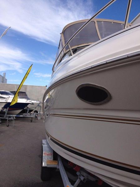Price Adjusted! SeaRay 245 Weekender. Very low hours for it's age (310) and presents well. Powered by a 5ltr EFI Mercruiser and Bravo 2 Leg. Major service including manifolds, Risers and elbows completed in May 2013 - Engine service completed again in May 2014. Stunning Stress Free electric Winch fitted recently at great expense. Package sits on a Tandem axle Trailit Trailer with electric brakes serviced 12 months ago and Stainless Steel Calipers fitted!. This boat combines Cruising and overnight stays with a deck space still suitable for fishing. For this reason it has a large Northstar GPS/Sounder combo installed. Great buying for this high end cruiser. On display at our new showroom - 30 Berriman Drive, Wangara. Finance available to approved applicants and we are happy to consider a trade on any of our boats. We advise calling ahead if you can to arrange an inspection so call Adam on 0421 540771 to arrange.EngineHours310