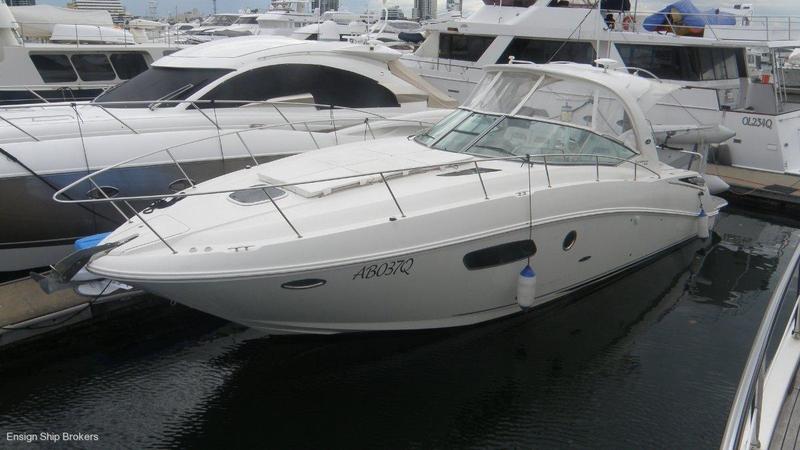Sea Ray 370 Sundancer with very low hours. The Sea Ray 370 Sundancer is certainly the leader in its class this premium one owner, US built vessel comes with warranty until September 2016 plus a full service history. Complete with excellent entertainment package, premium leather interior, spacious saloon and cock pit along with a huge teak swim platform. With ample accomodation for 5 adults comprising of a forward Queen and aft cabin that converts to a queen bed. This is the perfect boat for a couple or family. If you have been searching you will know that a vessel of this age and low hours are few and far between. Call our Gold Coast office today to arrange an inspection. - Twin 375HP MPI Mercruiser Engines (210 hrs- Full service records) - Axius 360 ( Joy Stick controls propulsion system) Makes manoevering a breeze! - Smart Craft Diagnostic intraments. - Smart Craft Digital throttle & shift controls (DTS) - Ray Marine Electronics - Hard Top - Huge Extended Teak Swim platform - Kholer 5KVA Genset - 2 x TV's & Sony stereo system. - Built in Electric BBQ,Fridge and Sink in cock pit - Extra large windows in main saloon for extra light - Inspection is a must.