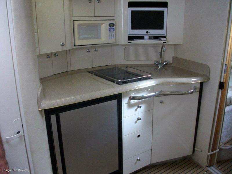 �BEST IVE SEEN� Sea Ray EC 330 Sports Cruiser / Fishing Cruiser / Family Cruiser. Launched in 1997, this Sea Ray Express Cruiser has been kept in excellent condition and is ready for a buyer wanting a well looked after Sports / fishing Cruiser with all the trimmings. This Vessel is a MUST SEE, NOTHING TO SPEND. She is re-powered with (brand new) twin 7.4L Mercruiser V8 Petrol Shaft drive engines that have only 60hrs each on the clock. The photos speak for this vessel, neat, tidy and immaculate, ready for inspection today. � Large back cockpit area for fishing or just entertaining, with foldaway aft seating and aft sun shade � Live bait tanks � Full storm covers � The spacious cabin includes a convertible Lounge for a double bed, flat screen TV and is fitted with marine carpet. The galley features a two burner cook top, microwave, hot and cold water and plenty of cabinet and storage space. � The forward berth has its own privacy door, and drop down table to make a comfortable double bed for overnight stays on-board. Sleeps four comfortably. � A separate enclosed head has hot and cold water at the basin and the shower, with lots of head room, also has a Vacu-flush toilet. The holding tank has deck pump-out and level indicators. � Good walk around decks make access to the sundeck, fender racks and deck-mounted forward anchor. � CD Player in main cabin, with great sound quality � VHF Radio, all safety gear � Power adjustable double Helm Seat � Hydraulic Steering � Westbrake Generator � Fully Air Conditioned cabin � Full shore power options � Comfortable ride in rough seas � Ideal for the family overnight stay, cruising the harbour, and getting out quickly to that ideal fishing spot.EngineTwin Mercruiser 360HP EnginesEngineHours60 Hours (NEW Engines)GensetWesterbeke, 5 KvaFuelCapacityTwin 300 Litre TanksWaterCapacity265 LitresWeight8,074 KgShower1ToiletElectric plus Holding TankCoversYesAccomodationCABINS: Single cabin style - Very neat and tidy. V-Berth with privacy door.<br>TOTAL BERTHS: 4-5<br>SALOON: Convertible dinette with storage<br>HEADROOM: Good<br>SHOWER: 1GalleyLAYOUT: Granite coloured counter-tops<br>STORAGE: Galley storage and drawers<br>STOVE TYPE: 2-Burner Electric Stove<br>MICROWAVE: YesRefrigeration240v / 12v FridgeGroundTackleANCHOR WINCH: Yes<br>REMOTE: Yes<br>ANCHOR: Yes<br>CHAIN: 50mSafetyGearBILGE PUMPS: 2<br>EPIRB: NEW<br>LIFEJACKETS: 8<br>FIRE PROTECTION: 2x Fire Extinguishers<br>FLARES / VSHEET: Yes<br>ElectricsLIGHTING: 12v<br>SHORE POWER: Yes<br>INVERTER: Yes (NEW)<br>BATTERIES: 12v (4)<br>ElectronicsGPS: Raymarine<br>SOUNDER: Yes<br>RADIOS: VHFSurveySurvey report done 10/08/2013.