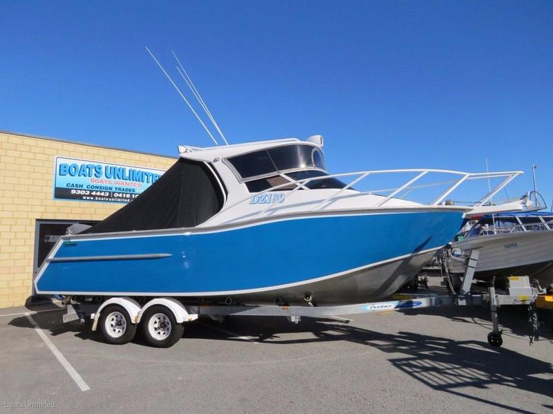 BEST, MOST FUNCTIONAL DECK LAYOUT I HAVE SEEN IN ONE OF THESE. GREAT DECK SPACE, FULL STORM COVERS. ALWAYS STORED INSIDE! VERY LOW HOURS. THIS BOAT WAS CUSTOM BUILT FOR THE OWNERS OF ACCESS BOATING AND LEISURE, WHO AT THE TIME WERE THE DISTRIBUTORS OF THE RAZERLINE FRANCHISE... IT WAS TAILOR MADE BY THE OWNER WITH SOME SUBTLE CHANGES INC TRANSOM GRAFTED REAR LOUNGE, CUSTOM CURVED SCREEN AND SEMI HARDTOP... A FRIEND OF MINE BOUGHT THIS OFF HIM SOME 4YRS AGO AND WITH WORK COMMITMENTS TAKING HIM OFFSHORE ALL TO OFTEN, SHES UP FOR GRABSI'VE FISHED THIS BOAT MANY A TIME AND CAN SAY FOR A PLATE ALLOY, SHES A VERY NICE RIDING HULL WITH GREAT STABILITY AND PLENTY OF UP N GO TO TAKE 4-5 FISHOS OUT WIDE.. THIS WAS A BOAT SHOW BUILT BOAT.. IS FULLY LOADED WITH EXTRAS... REPLACEMENT AT OVER 140KTRADE INS CONSIDERED FINANCE AVAIL T. A. PCALL FOR DETAILS OR MORE SPECS