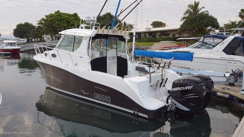If you are looking for a genuine seagoing sportfish you can�t beat the comfort, toughness and safe ride offered by the Seaswirl Striper 2901 Walkaround. Dad gets his dreamboat and fishes on Saturday. The family can join him cruising on Sunday when the fish aren�t biting. Everyone�s happy! The Seaswirl Striper is designed and built to weather the rough seas off the USA�s Pacific Northwest. The sharp-entry deep-V, sheltered helm, exceptionally thick layer of gelcoat, one-piece foam-filled fiberglass stringer grid, overlapped glass at the keel/chines/strakes and composite transom also make tough Australian conditions no worries mate! Below decks you'll find a full 6 1/2 feet of headroom, a well appointed galley portside, comfortable V-berth hiding copious storage, overhead hatch and opening portholes for ventilation. As an added bonus this boat also looks super sweet on the water and will be the envy of angling friends and neighbours alike. The whole family will definitely enjoy days out on this fishing and cruising utility, come aboard for a look, you will be impressed. Call the Mooloolaba Office now to inspect on 07 5444 3055. Search Youtube for "Seaswirl 2901 WA EPM 170" for video.