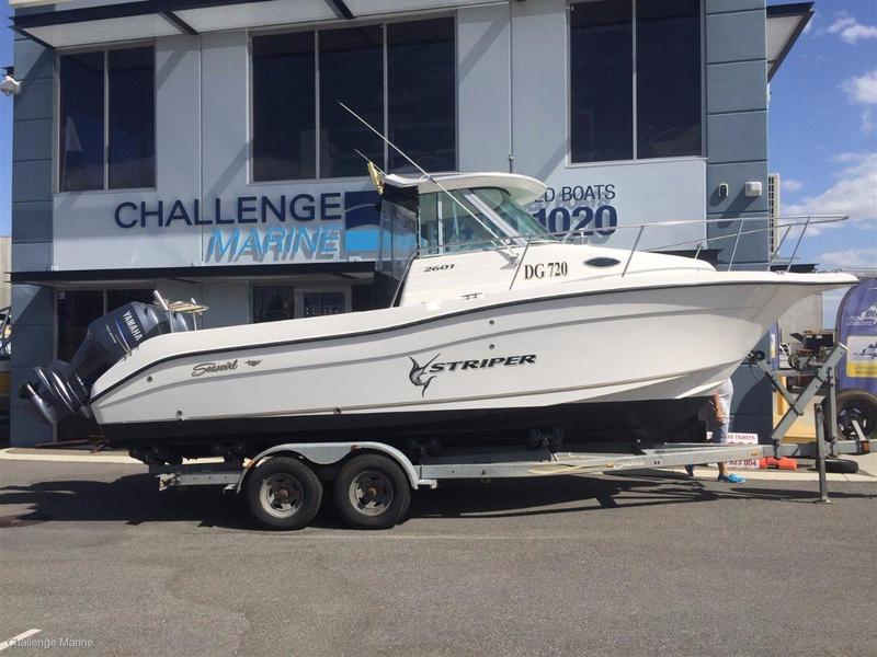 Offshore performance with the walk around convenience. This is a blue water fishing boat that could please all. Fully enclosed Hard top to protect from elements, New interior fitted recently, Twin Yamaha 150hp 4 Strokes showing 250hrs use and diagnostics recently completed, large deck area with twin catch tanks, deck wash and massive live bait / esky. Sitting on a very will maintained trailer with electric brakes, new wiring and new bearings fitted. On display at Challenge Marine - Perth's Leading Used Boat Destination - 30 Berriman Drive, Wangara 6065Need your boat sold? Call us today to find out how cost effective and hassle free it can be. We are more than happy to provide price appraisals obligation free. At Challenge Marine we get results! We don't just collect listings, We sell Boats! While every effort is made to provide accurate information about our listings we accept no responsibility regarding its accuracy and purchasers should always undertake an independent mechanical / hull inspection by qualified personnel.