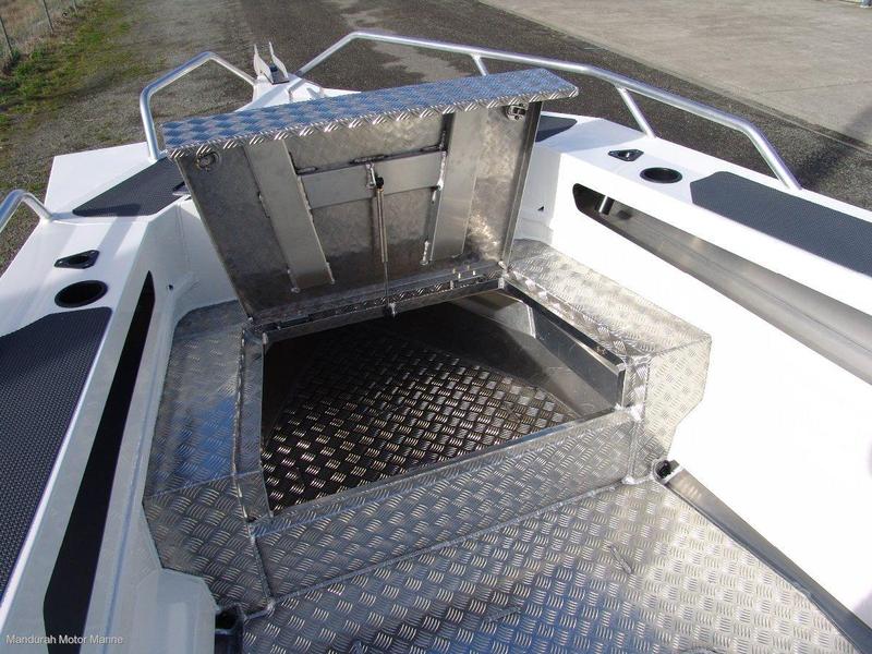 If your addiction is blue water fishing look no further than the 1850 Frontier. Based off the highly capable 1850 Supercab and featuring many of the same innovations that have redefined small boat performance, the 1850 Frontier is the perfect companion for offshore fishing. With a 120L under floor fuel tank, unrivalled stability and the safety of our life ring, Positive Buoyancy� design, you can rest assured your 1850 is virtually unsinkable and will remain level and predictable if swamped. Serious fisherman will appreciate the centrally mounted and raised 66L live bait tank under the well laid out bait station as well as the large dash ready for the latest electronics around. Rod and gaff storage is taken care of by long, deep and tall gunnel pockets. More can be found under the optional raised casting platform and inside the sealed centre console. Featuring our Game Chaser Transom providing more stern lift and easier turning while backing down and our new Arrow Pontoons that soften the ride; the 1850 will inspire and reward the adventurous.