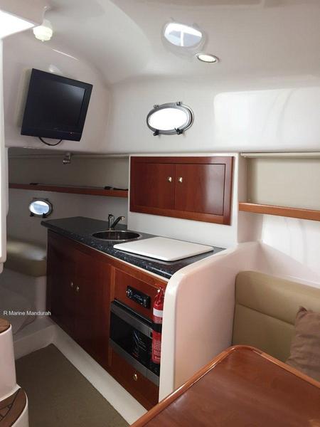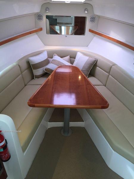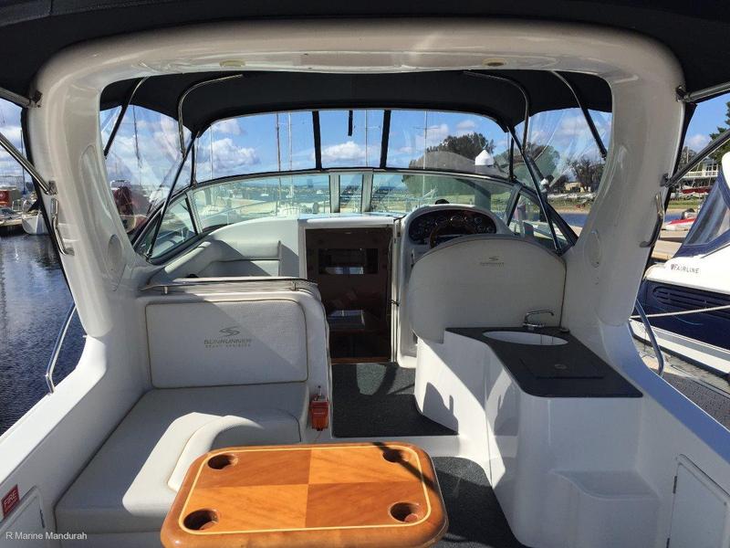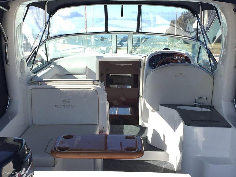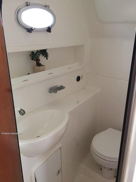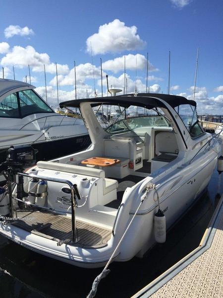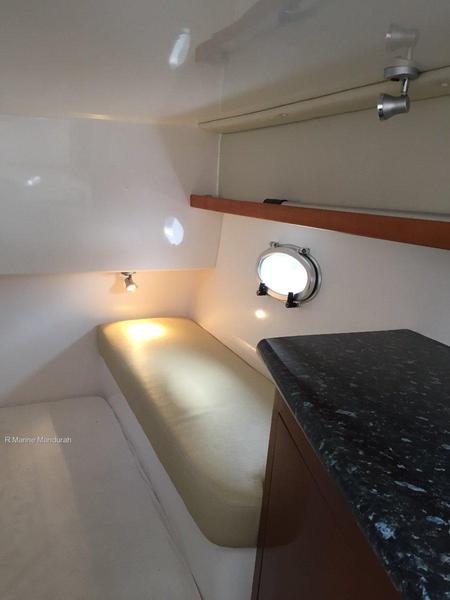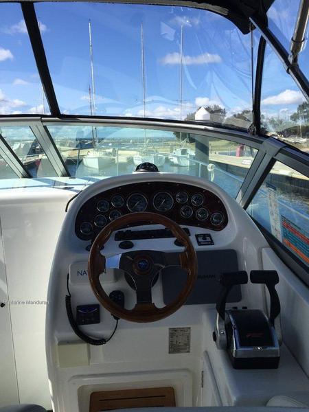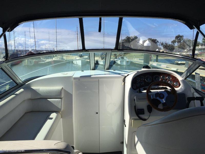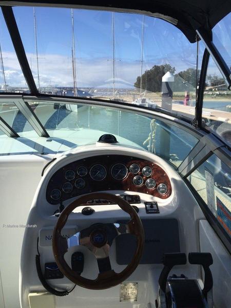 WOW!!!!What is going on here?! Just when you think you've seen it all.. BAAAAM!! a beauty like this hits you right between the eyes!!Love at first sight what more can you say.. Seriously you might as well just call this boat 'Brand New' pay the bill and be done with it.. An absolute bargain to say the least!This boat has the LOT!Bow Thruster Brand new clears and coversStainless Steal Stern RailsPlastimo tender with 5hp outboardQL auto trim tab systemHydraulic engine hatchExtremely low hours.. The list goes on:EngineTwin mercruiser 4.3 mpiEngineHoursLowEngineRoomExtremely clean and tidyFuelCapacity400lWaterCapacity200lShowerYesToiletElectric with holding tankDinghyPlastimo 5hpOutboardParsunCoversBrand New!AccomodationV birth convertible. Midship double birth.GalleyMicrowaveCooktopStainless sinkspacious bench top and storageRefrigerationDometic fridge freezerGroundTackleLewmar pro series stainless windlass winch and stainless anchorSafetyGearCurrent epirb and flares and life jacketsElectricsXantrex battery chargerClarion sound systemNec lcd tvQL electric water heaterElectronicsNavman vhfCombination Navman, Gps, Sonar, Radar, Video, System