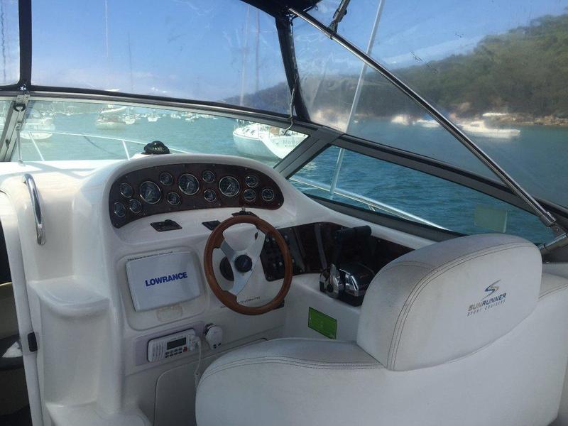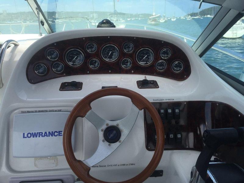 Powered by Twin Mercruiser 4.3 MPI�s Engines, Fresh Water Cooled. Large volume vessel with plenty of seating in the cockpit and in the saloon. Accommodation for 4 with forward double and aft double. Galley is equipped with a fridge and 2 burner stove. A versatile boat with large open cockpit. Swim platform with stainless steel stern rail. � Low Hours � Twin Mercruiser 4.3 MPI�s � Large Volume � Lowrance HDS7 GPS/Sounder � Stainless Steel Stern Rail, SS BBQ � Muir Electric Windlass � Bow Pulpit with Platform � Dinghy and outboard included Easily viewed by contacting Ensign Sydney.