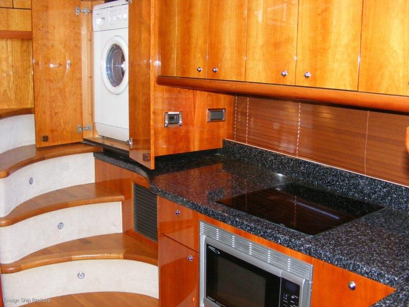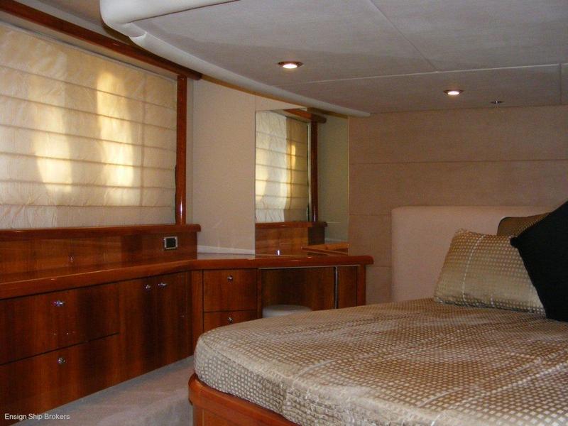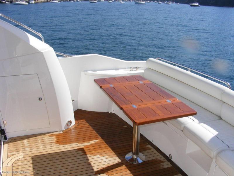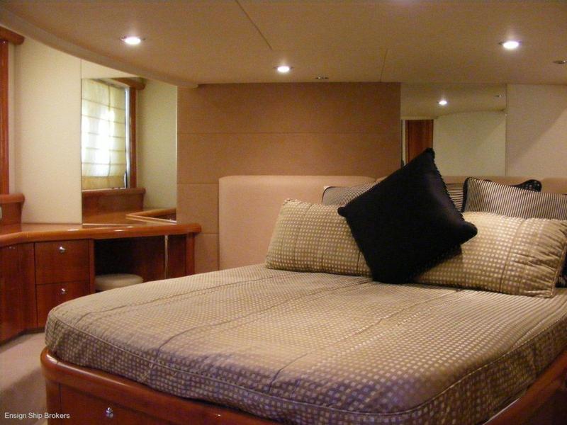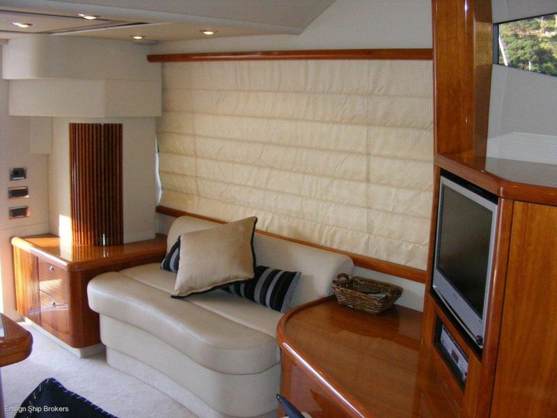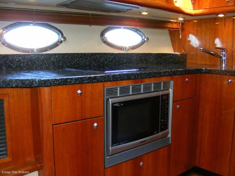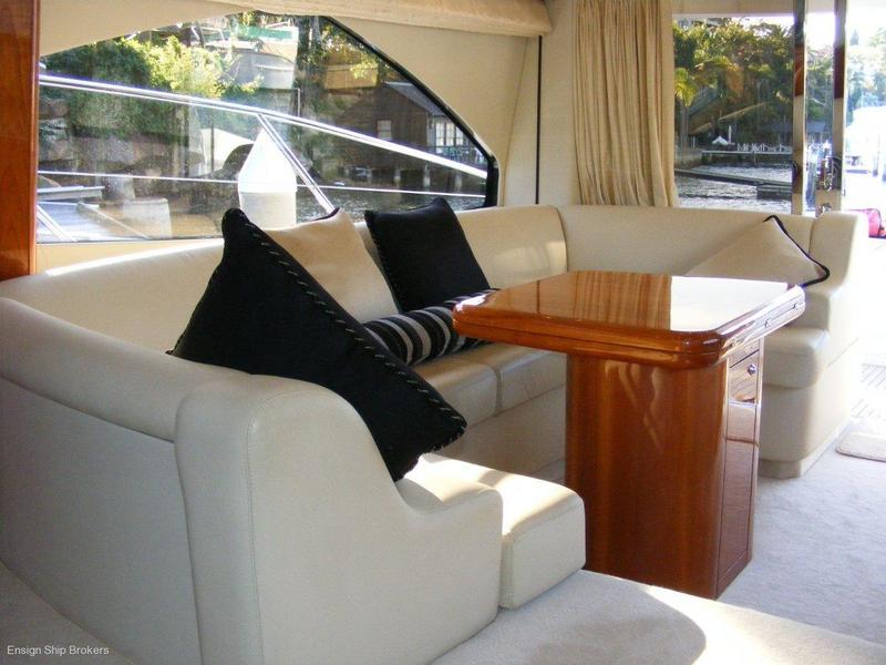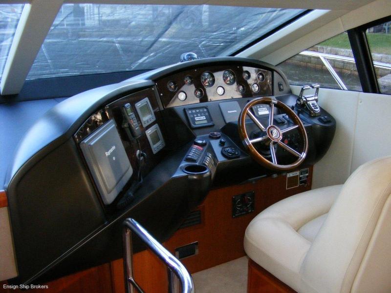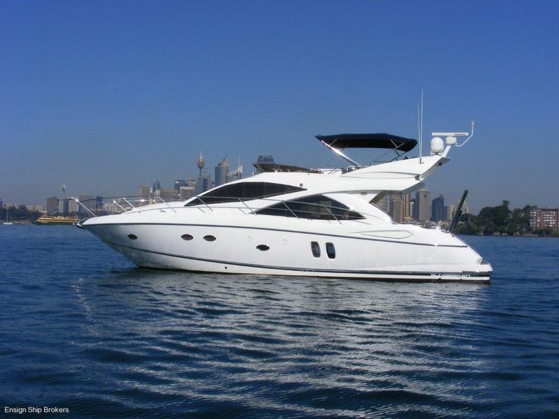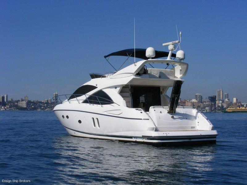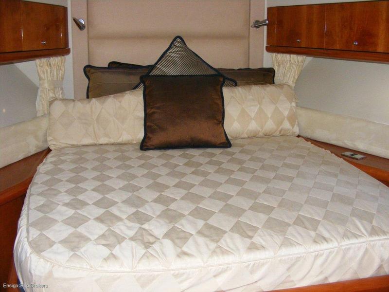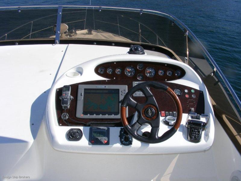AUSTRALIAN DELIVERED, LYING IN SYDNEY. - Twin Caterpillar engines - Bow and Stern thrusters - Full Raymarine navigation system on each helm - 3 cabin layout - Large capacity open Flybridge - Beautiful owners cabin with en-suite - Great entertainment package This late model, well maintained Manhattan 50 is ready for the holidays. Her current owners have been very diligent in her upkeep and that will be a huge plus point for a buyer. The dual thrusters and industry favoured Caterpillar engines are reliable and easy to berth. Internally, the spacious saloon has panoramic views and flows nicely out to the back deck. Steps to the Flybridge and wide walk-around decks allow easy access throughout. The all weather convenience of dual helm stations, A/C throughout the boat and large entertaining areas both in and outside, the Manhattan 50 is a vessel that will entertain friends and family in all conditions. Call Ensign Sydney for further details and to book an inspection.EngineTwin Caterpillar C12 715HP Diesel enginesEngineHoursPort: 501 hours / Starboard: 503 hoursGensetOnan E-QD with sound shield , 11 KvaFuelCapacity2,160 LitresWaterCapacity500 LitresWeight23,000 KgShowerTwoToiletTwo - Vacuflush plus Holding TankCoversFlybridge bimini, Individual covers for Flybridge seating / helmstandAccomodationCABINS: Three cabin layout - Full beam owner's stateroom with island queen sized bed. - Double hanging locker with full length wardrove - Vanity station to starboard with excellent storage and seat - Sharp LCD TV - Sony DVD Player - Ducted A/C - Private ensuite - Two opening and four large fixed portholes Forward - VIP stateroom with island double bed - Hanging locker - Sharp LCD TV - Ducted A/C - Ensuite access to spacious shared head Midships - Pullman berth twin cabin - Hanging locker with cupboards and drawers - Sharp LCD TV Single crew berth accessed from aft deck.<br>TOTAL BERTHS: 6<br>SALOON: The expansive split-level saloon offers superb views out through its huge aft windows. To starboard there is a large C-shaped sofa around a fold-out table, with a smaller settee to port.<br>SHOWER: TwoGalleyLAYOUT: Large galley to port with great layout and modern appliances<br>STORAGE: Excellent, cupboards above and below the counter<br>STOVE TYPE: Plastimo 3-Hob ceramic<br>MICROWAVE: Panasonic 1,000wRefrigerationLarge, built-in fridge with panelled front GroundTackleANCHOR WINCH: Yes<br>REMOTE: Yes + counter on each helm<br>ANCHOR: Yes<br>CHAIN: Yes SafetyGearBILGE PUMPS: Yes<br>LIFEJACKETS: Yes<br>ElectricsLIGHTING: 12v / 240v<br>SHORE POWER: Yes<br>ElectronicsGPS: Raymarine E120 - Colour screen<br>PLOTTER: Raymarine<br>SOUNDER: Raymarine ST60<br>RADAR: Raymarine <br>AUTO PILOT: Raymarine ST6001 Smart Pilot<br>RADIOS: VHF