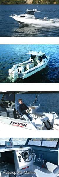 Surtees, buy the original ultimate offshore fishing/diving rigs. New 2015 models now in stock - 495 Workmate- 575 Workmate - 575 Centre Console- 610 Workmate- 610 Gamefisher Hardtop- 650 Workmate- 650 Centre Console- 650 Gamefisher Hardtop- 700 Workmate- 700 Gamefisher Hardtop- 700 Sportfisher Hardtop- 750 Gamefisher Hardtop enclosed- 750 Sportfisher HardtopAnd new 8.2 Surtees Gamefisher available to order!Surtees, solid, strong, safe and all standard with water ballasted floodable hull for superior stability. 6 year hull warranty, soft deep V hull and spray deflecting chines which help lift the boats out of the water for a smoother more comfortable ride in choppy seas. Own the original, the best, the multi award winning, Surtees. Surtees, voted 2011 and 2012 Imported Trailerable Boat of the Year by BIAWA - 2 years runningEngineYour choice of Mercury Horse PowerOutboardYes